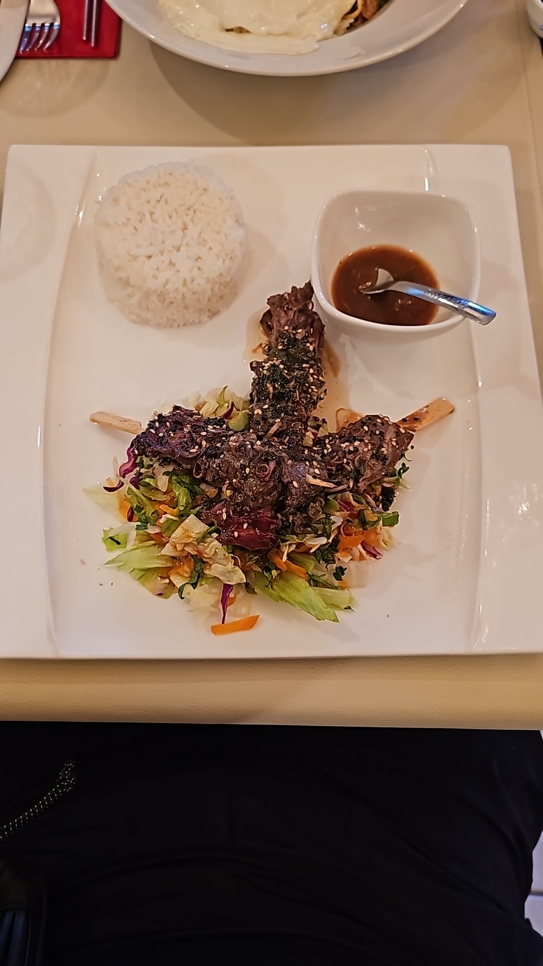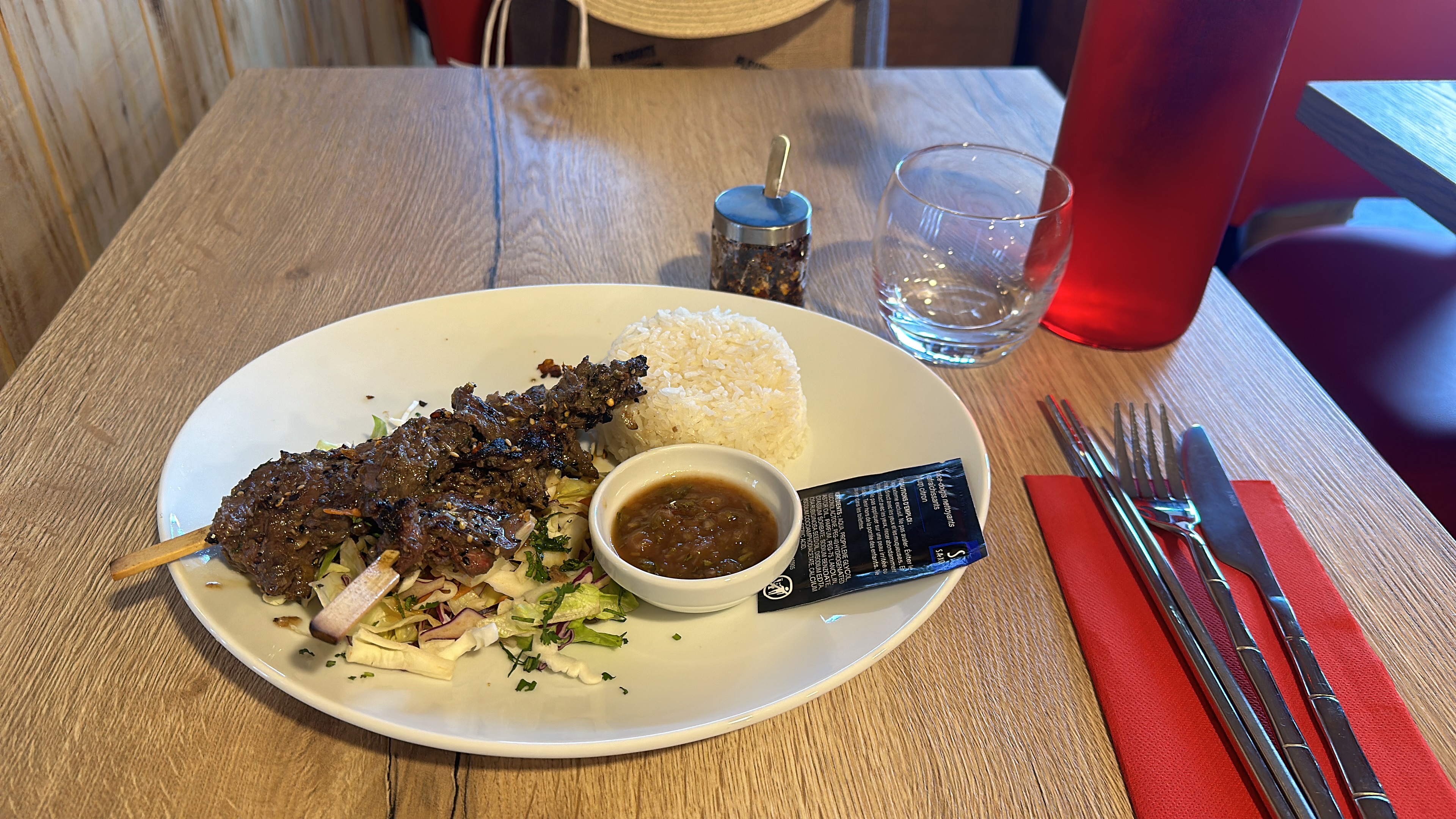 Nous avons passé un excellent moment, la brochette de bœuf excellente, parfaitement relevée Les nems au porc sont délicieux Le personnel est super sympa, vous pouvez y aller les yeux fermés