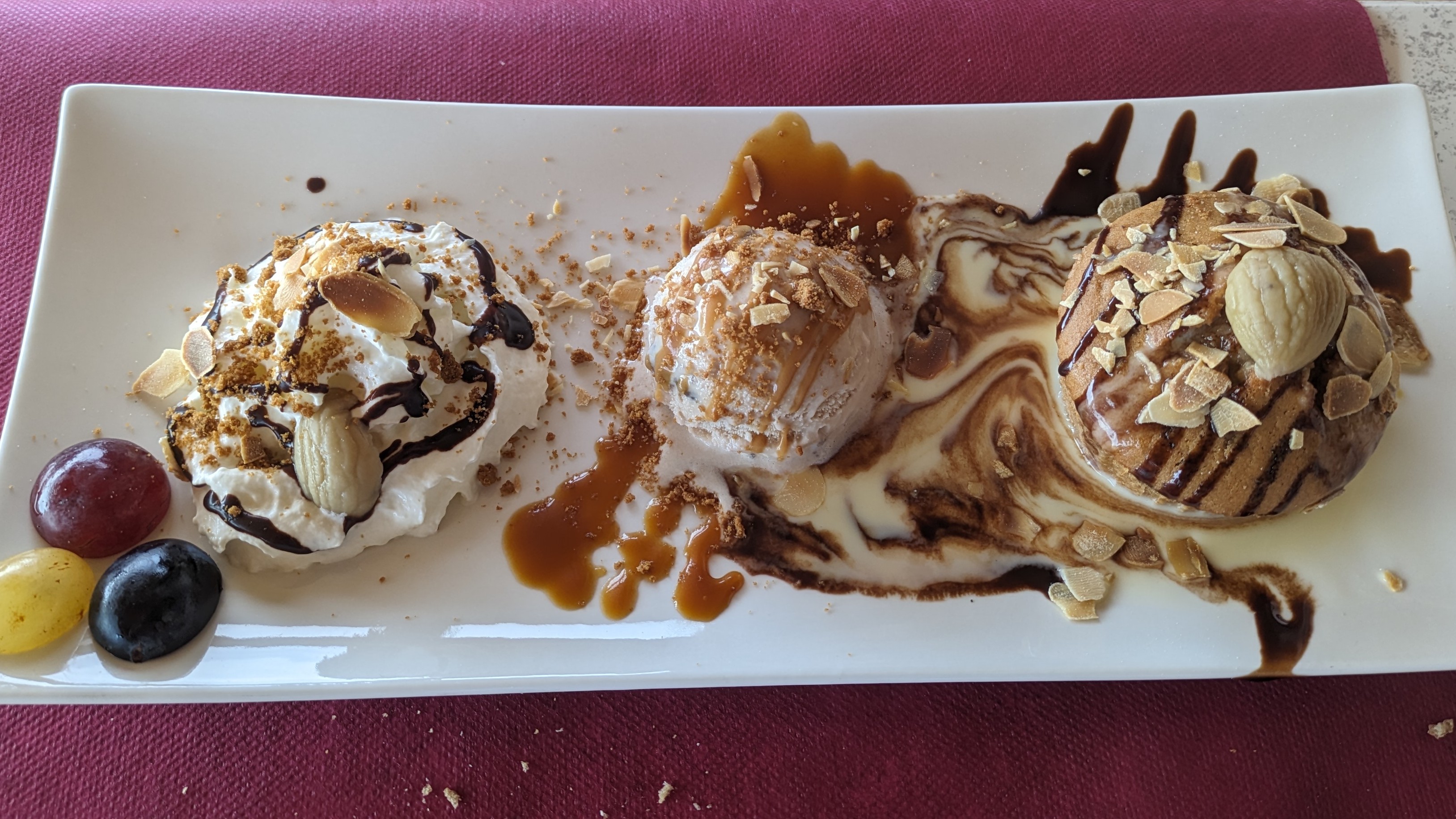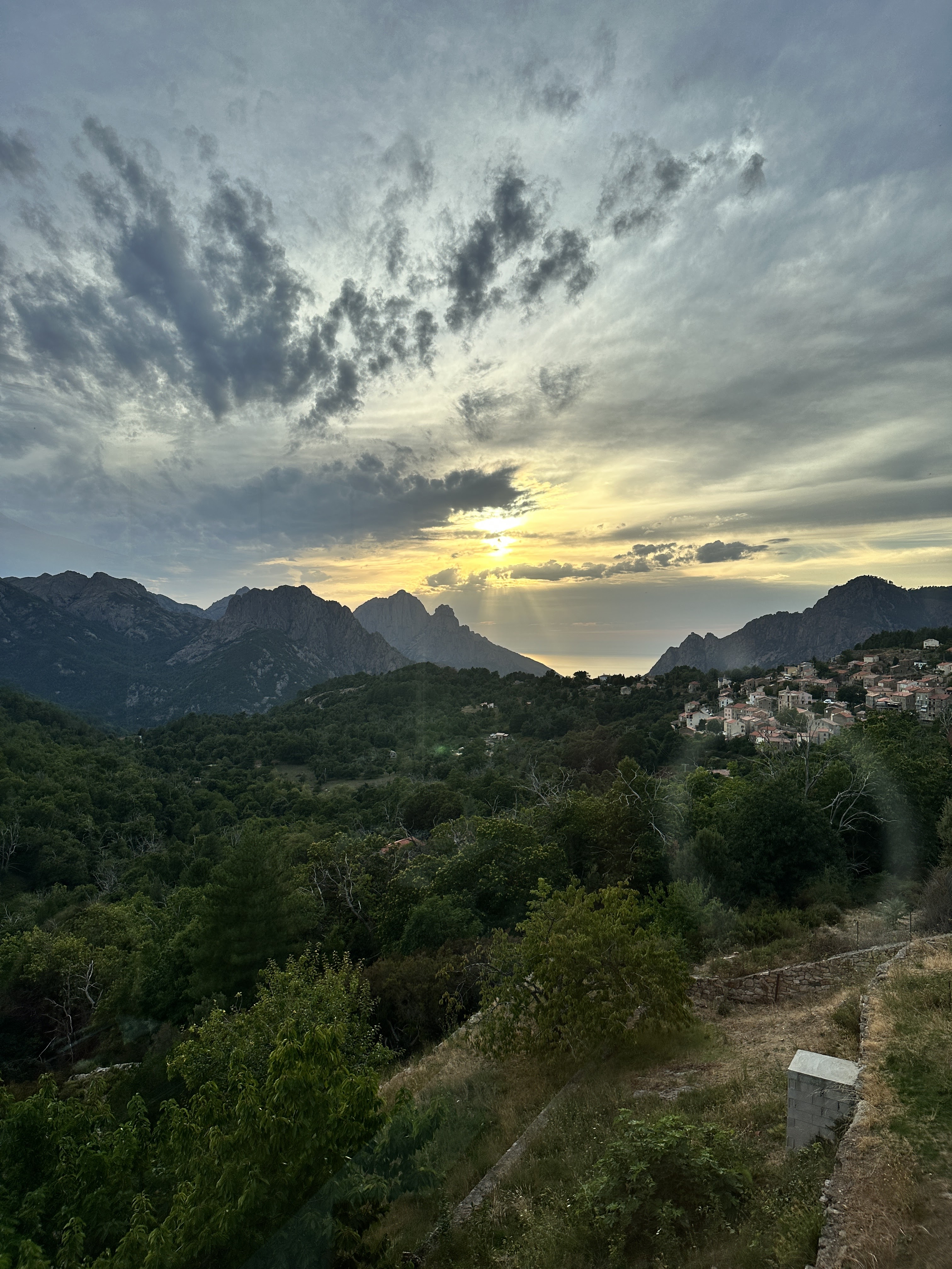 Dîner avec coucher de soleil à couper le souffle à Evisa. J'ai eu une salade de chèvre chaud sur croûtons et une tarte tatin, toutes deux excellentes, je reviendrai certainement