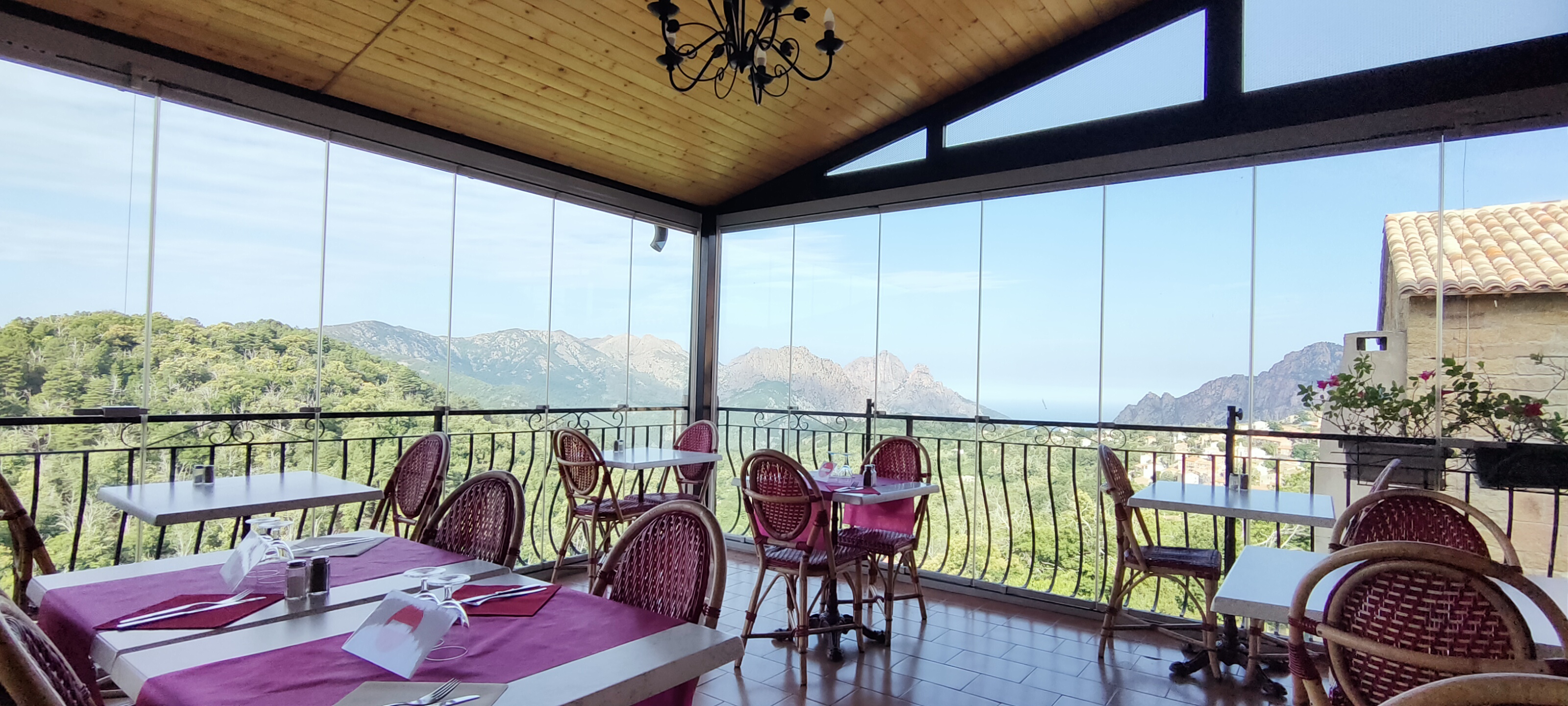 Ambiance familiale et cuisine traditionnelle corse de qualité. Superbe terrasse avec vue panoramique sur le golfe de Porto!