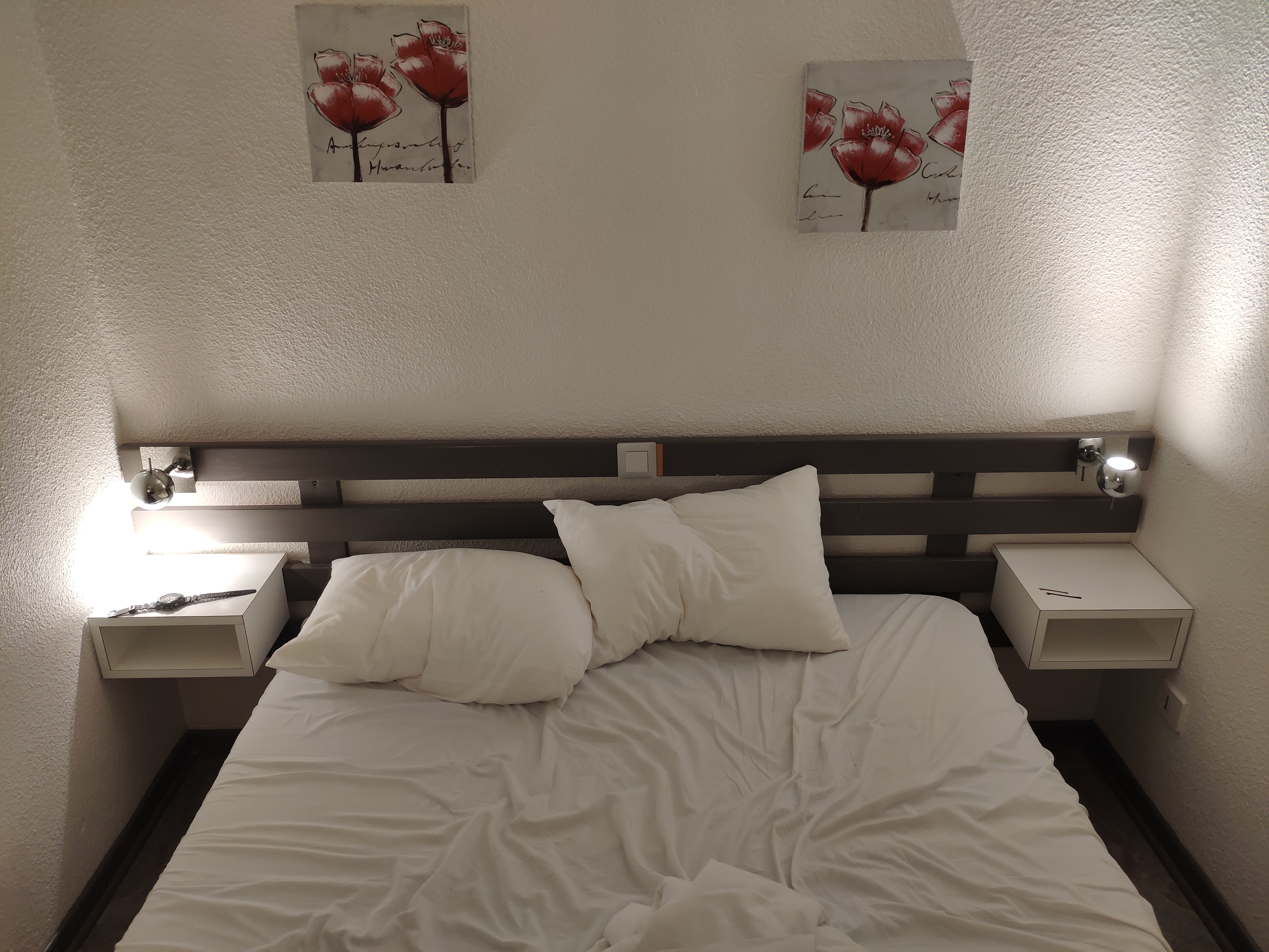 Literie de mauvaise qualité, double porte qui ne ferme pas, pas de prises électriques dans la salle de bain, la douche dans année 70 et pour finir les murs tellement fin que l on entend le voisin se doucher