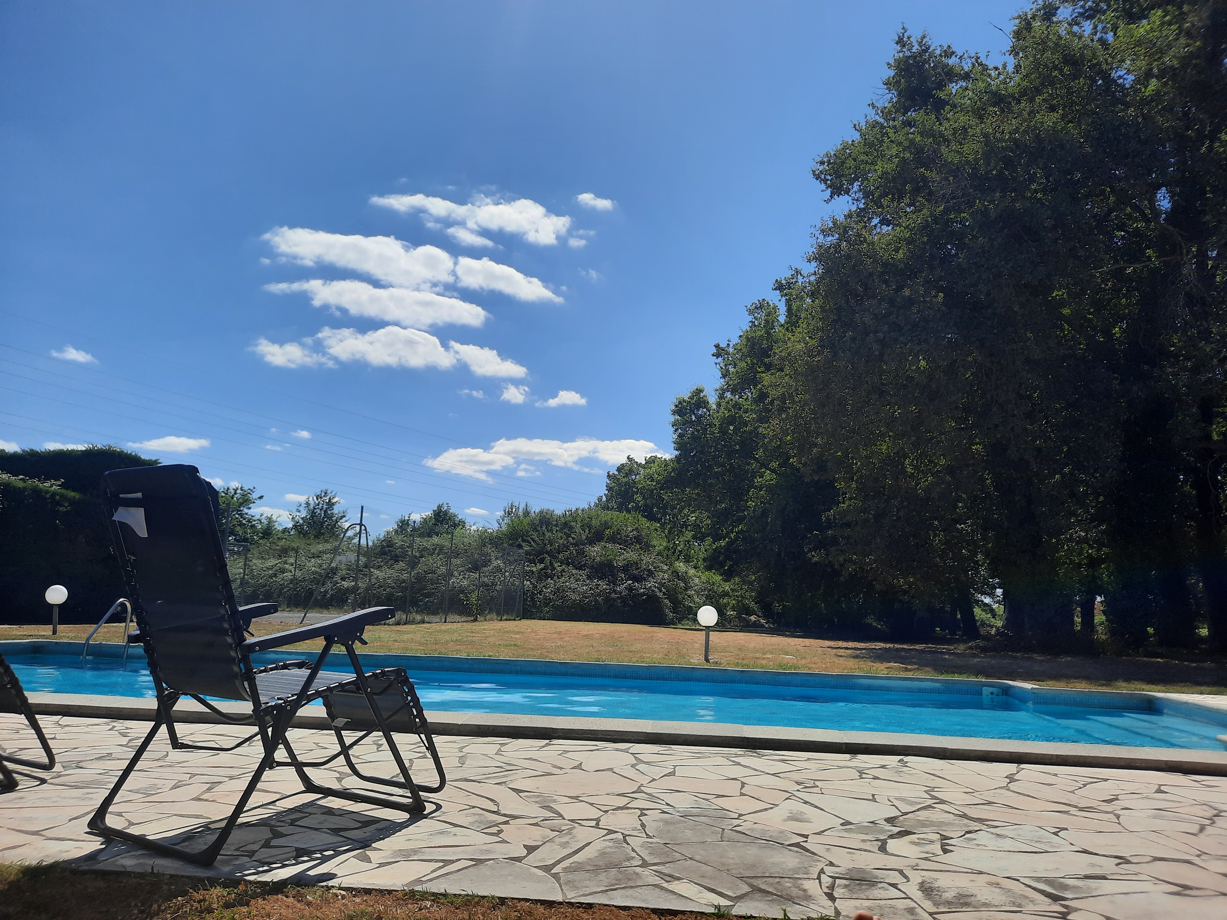 Petit déjeuner particulièrement copieux. Chouette piscine, quand il fait beau.