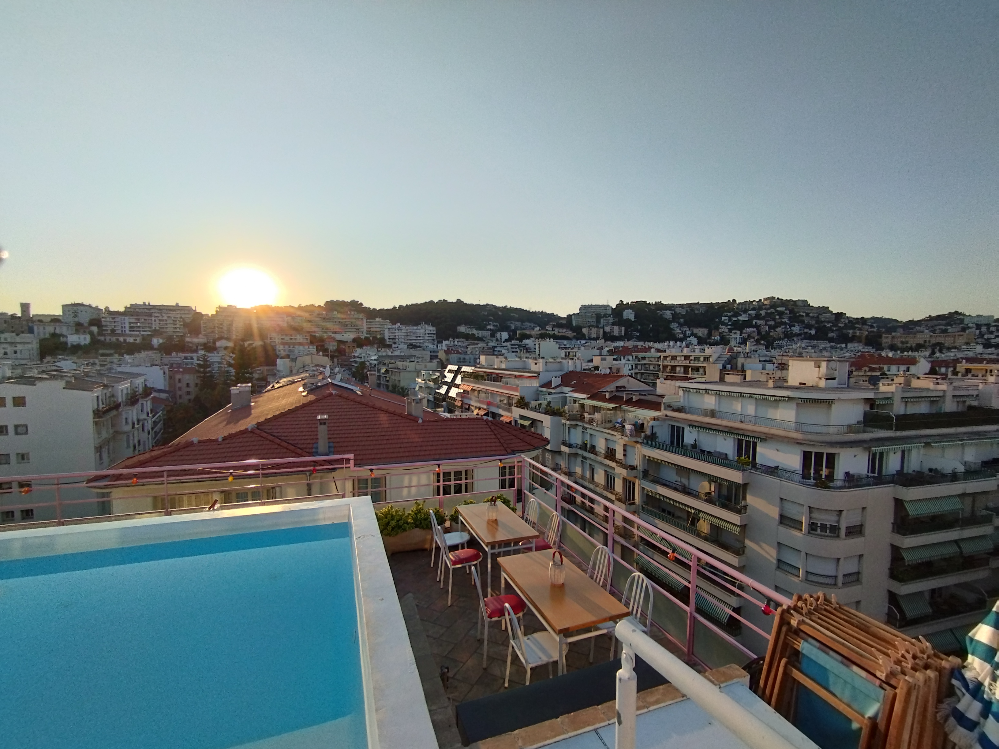 Hôtel très sympa. Chambre spacieuse, très calme, avec terrasse et vue sur la ville de Nice (grande chambre). Le toit avec piscine est agréable. L’accueil est charmant, bon service. La plage est très sympa également. Nous reviendrons certainement.