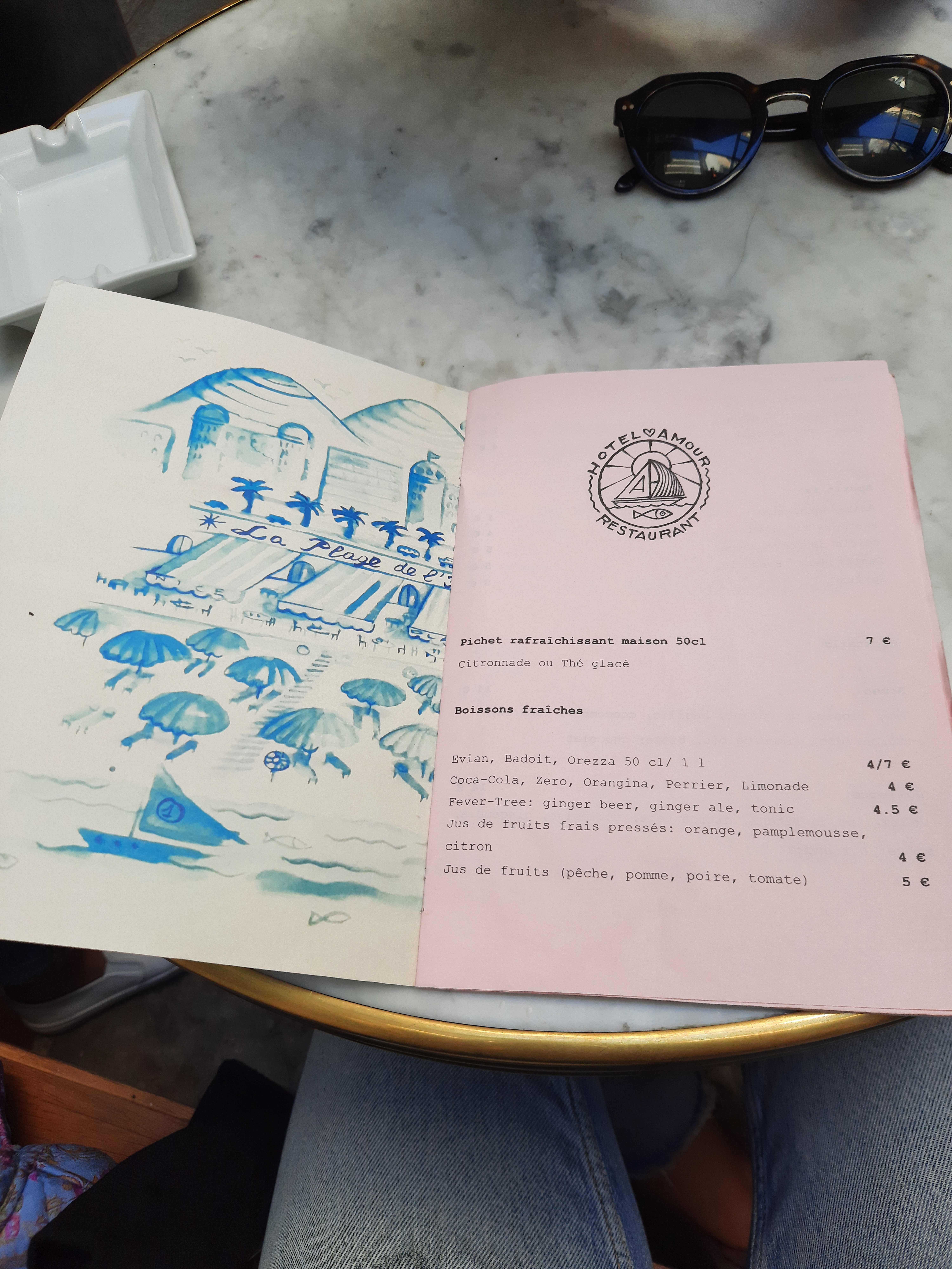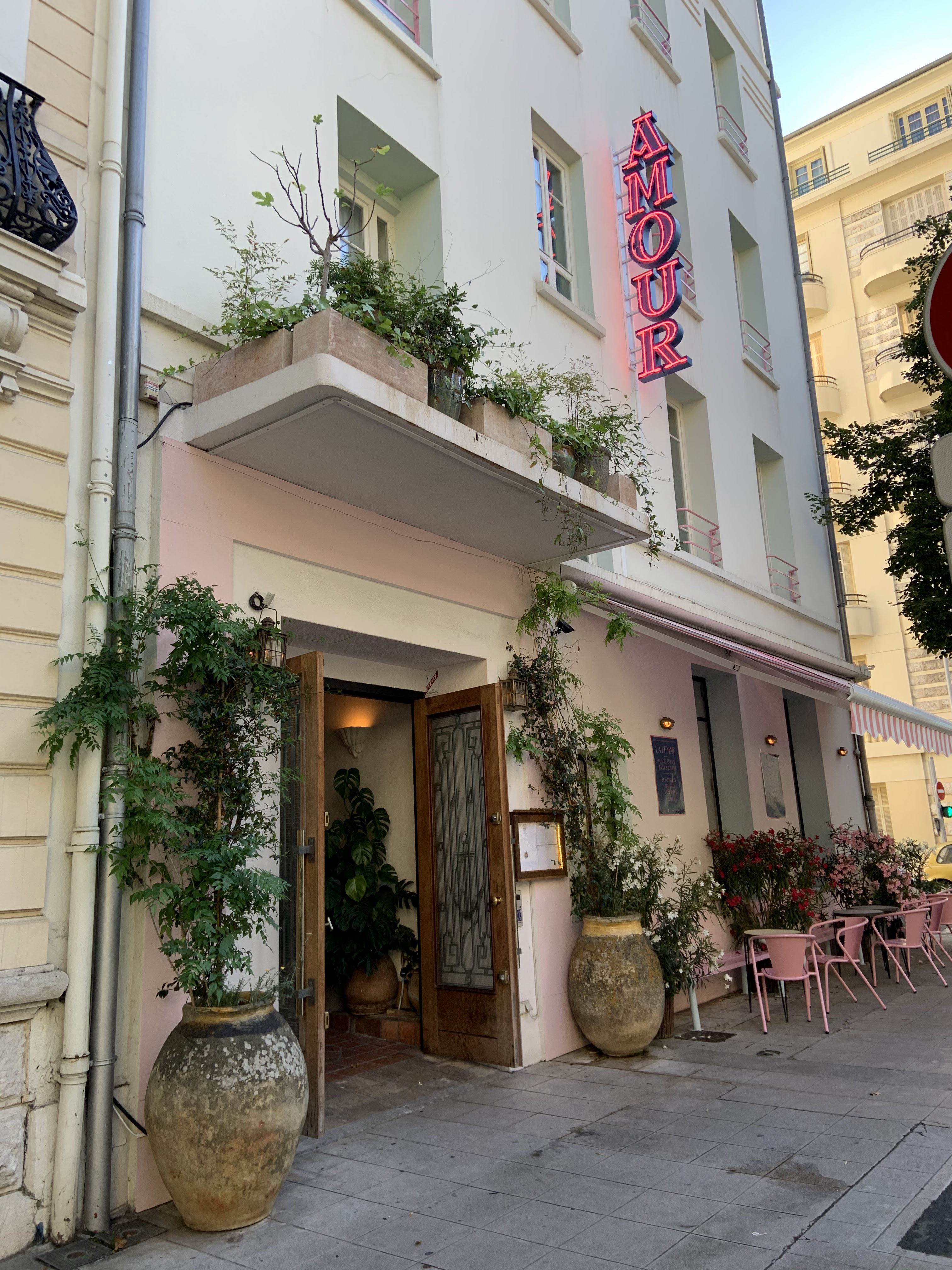 Bonjour à tous Je suis voisin de l’Hotel restaurant Amour, rue des Fleurs, j’ai testé à plusieurs reprises la plage Amour, que je recommande vivement, pour leur professionnalisme et la qualité du service. En revanche, le restaurant, est une belle découverte, j’ai testé la formule du midi à 17€, franchement, c’est du bonheur, une petite entrée salade de fromage blanc à l’huile d’olive, pain fait maison, agneau au four avec pommes sautées, et enfin un dessert Panacota et café, le café et délicieux servi avec un confit d’orange. L’endroit ressemble à une belle brasserie parisienne avec un personnel souriant et professionnel ! Bravo et bonne continuation ! Djamel