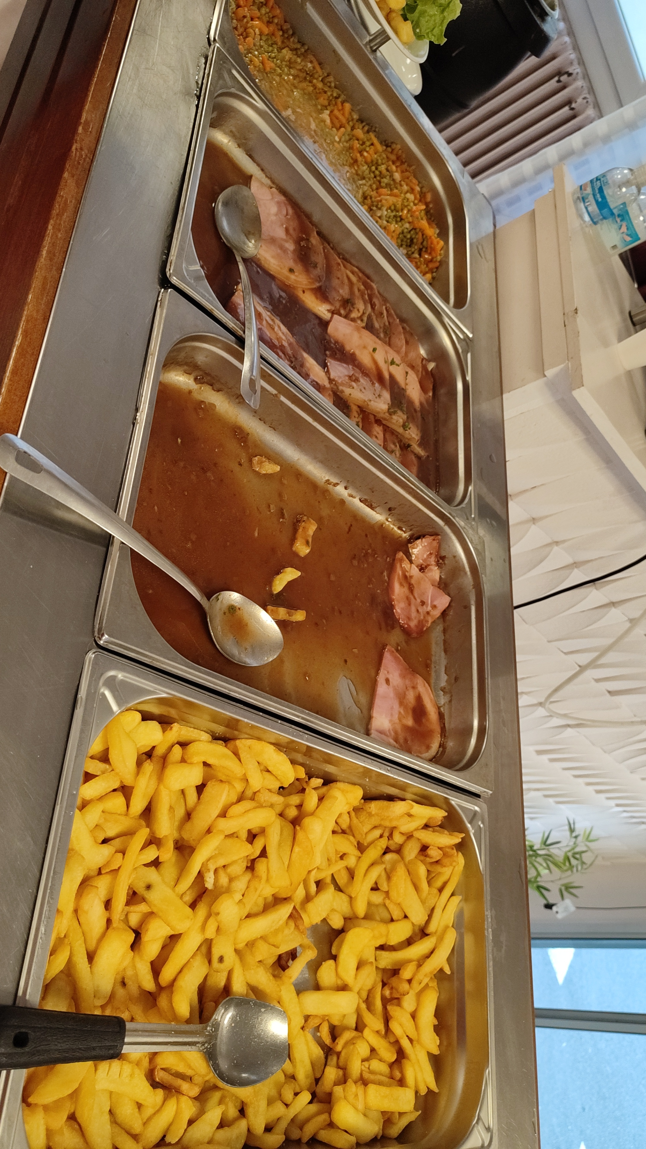 Nous avons dîné ici. Buffet avec une variété d'options et une carafe de rouge incluse. C'était un bon rapport qualité-prix et il y avait quelque chose pour tous les membres de la famille.