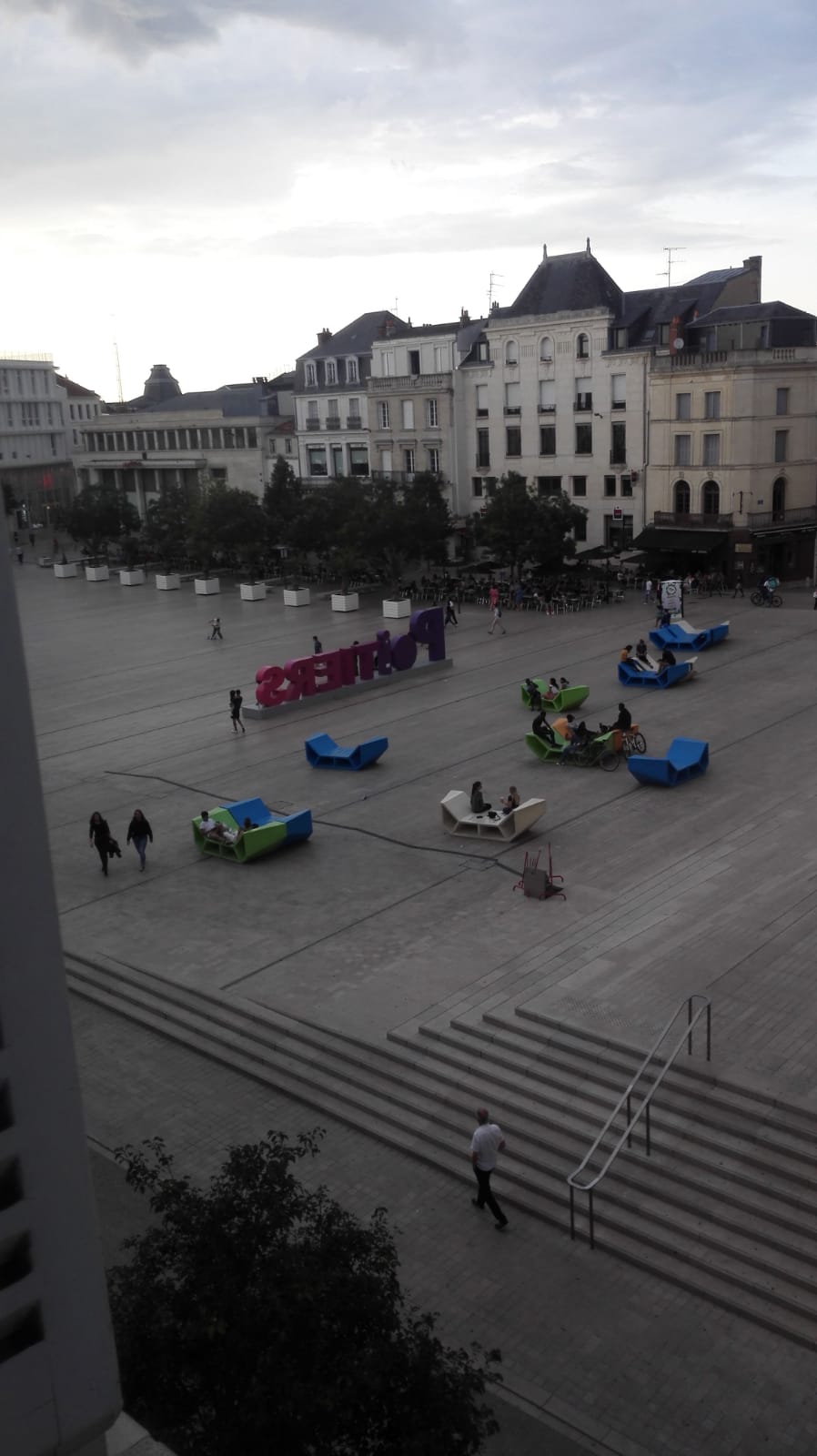 Le temps d'un week-end à Poitiers. Petit hôtel très bien placé sur la place de l'hôtel de ville. Le monsieur de l'accueil est très aimable, juste ce qu'il faut ! La chambre est spacieuse mais pas pratique au niveau rangements et la déco murale aurait besoin d'un rafraîchissement.