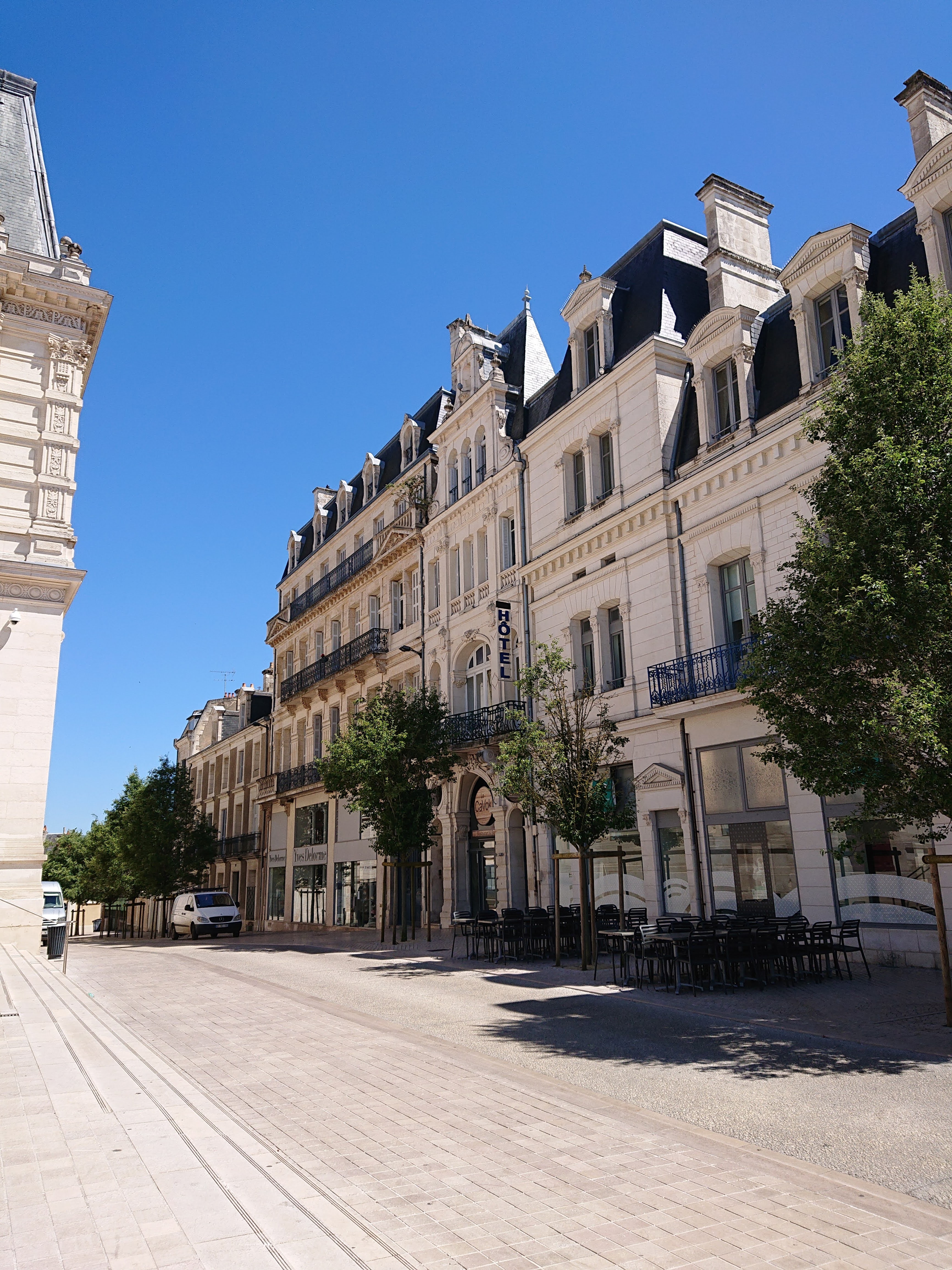 Alors autant évacuer le côté le plus négatif tout de suite, j’ai tellement mal dormi que je le suis réveillé en retard et que je suis parti comme un voleur sans même prendre mon petit déjeuner que j’avais payé. L’hôtel est magnifiquement placé, en plein cœur de Poitiers et permet de faire un vrai camp de base de visites. Mais le côté hôtel pour VRP des années 60 (oui du siècle dernier) avec la déco assortie qui n’a pas bougé, la non aération après des jours de canicule alors qu’une simple fenêtre ouverte le jour de mon arrivée aurait près qu’officie de climatisation…. Bref. Une nuit pour visiter et pas plus tant que les aménagements de base n’auront pas été fait