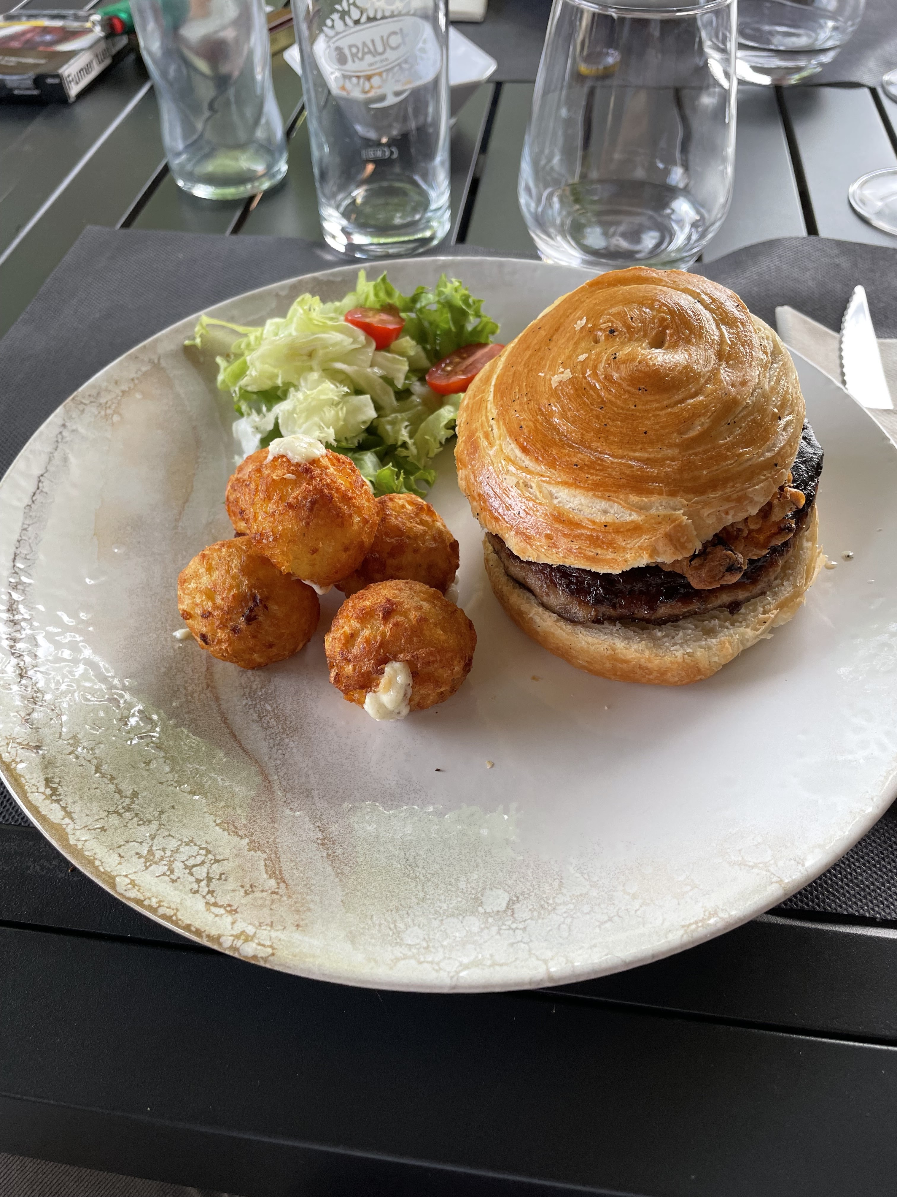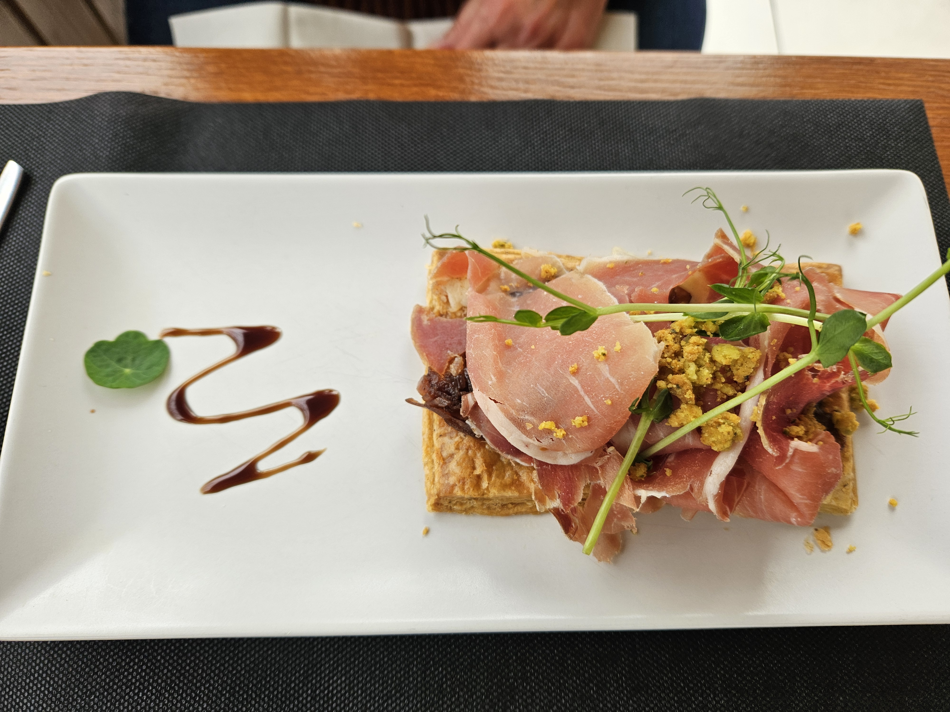 Très bien situé pour se garer avec des motos. Repas du samedi soir servi dehors sur la terrasse couverte. Le service top. La pauvre serveuse a dû faire la distance d’un marathon avec les aller et retour entre la cuisine et les tables. Mais toujours avec le sourire. Les plats sont succulents. Bref à refaire si on repasse dans le coin.