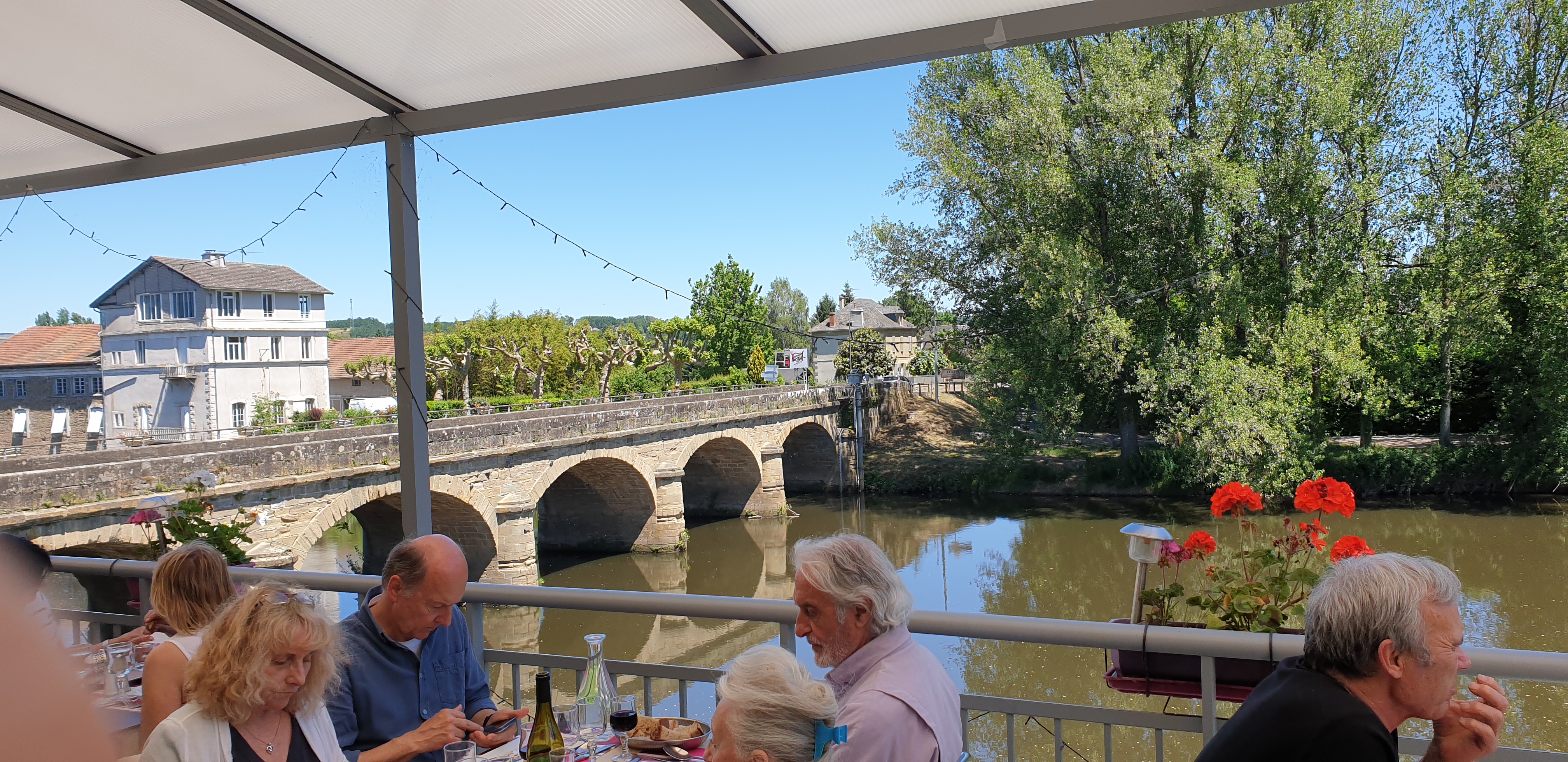 Une très bonne adresse, menu du jour à 13€ pour potage/entrée/plat/fromage/dessert. La terrasse est très sympa, avec une belle vue sur le pont et sur la rivière.