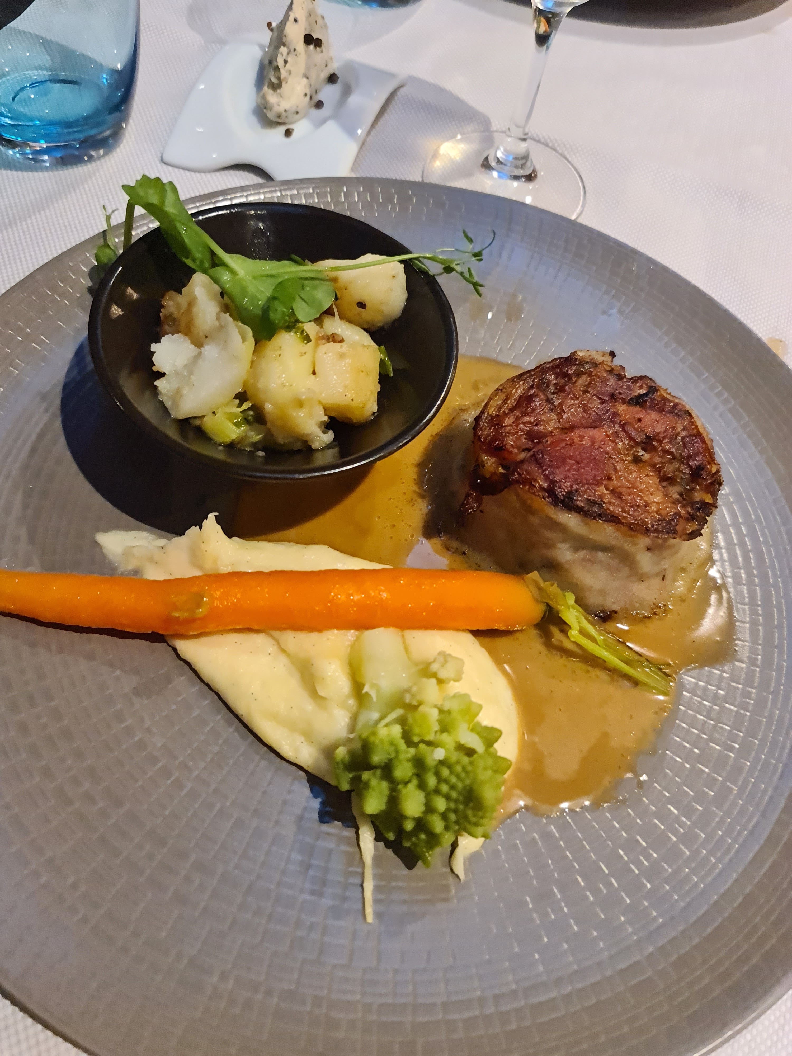 Repas fantastique pour notre dernière nuit dans la région (choix à la carte et bon rapport qualité-prix à 29 €). Personnel sympathique et nourriture intéressante. Le faux filet et le jarret de jambon en filo étaient tout simplement délicieux. Hautement recommandé.