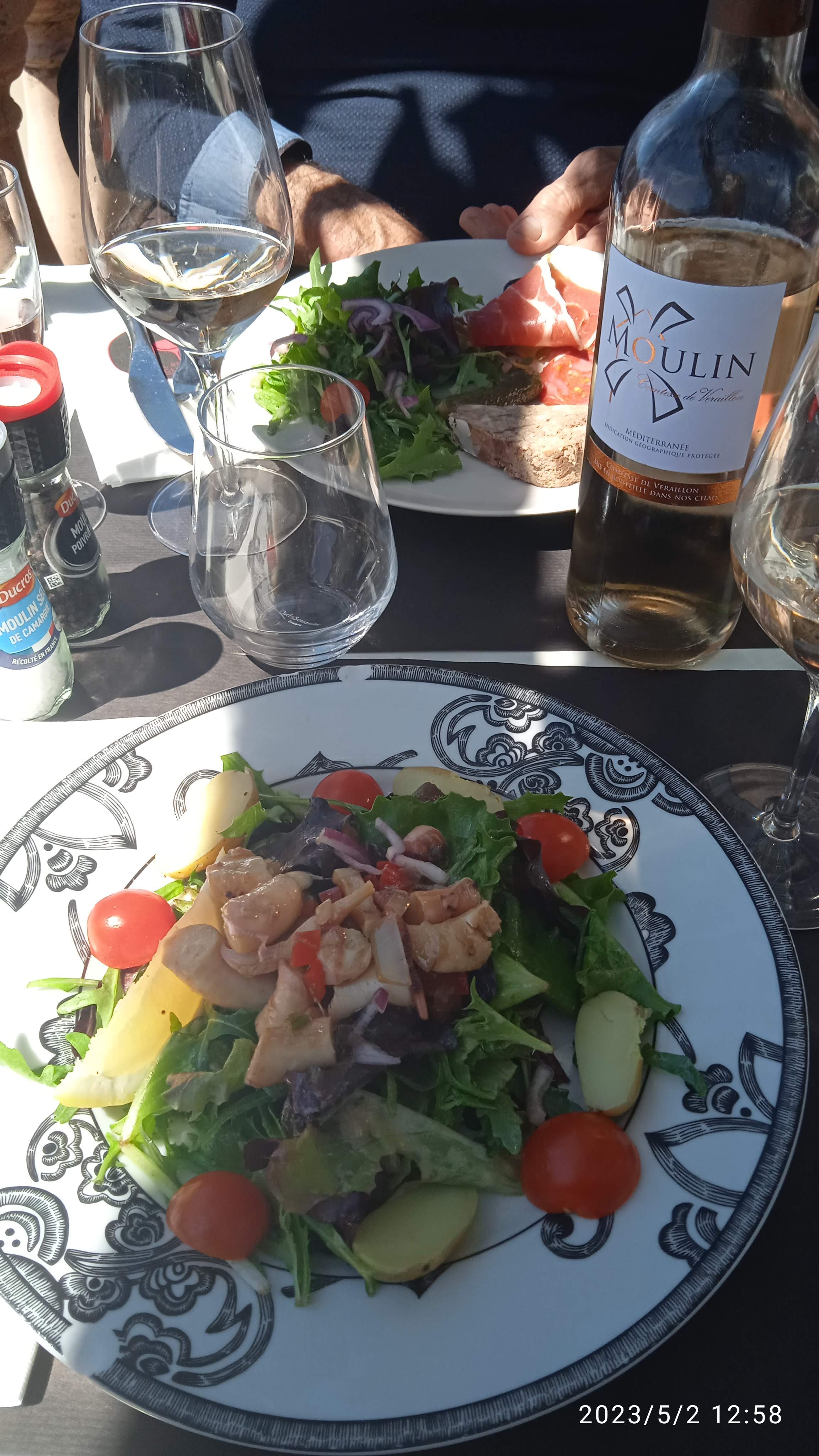Ecoresponsable sans s'en donner l'air ! Les coktails sont visiblement recyclés avec l'eau de la plonge apparement et les assiettes de salades gourmandes sont très fournies... En salade. On voit bien la conscience profondément ecolovegan étant donné qu'on a eu du mal à trouver le magret et le fois gras dans toute cette verdure... Dommage qu'on ne puisse pas tout à fait y croire en voyant le cafard agonisant au pied de notre table... Et vous voulez bien un petit dessert avec tout ca ? Oui, mais sans salade s'il vous plaît ☺️ Merci pour la vue en tout cas !