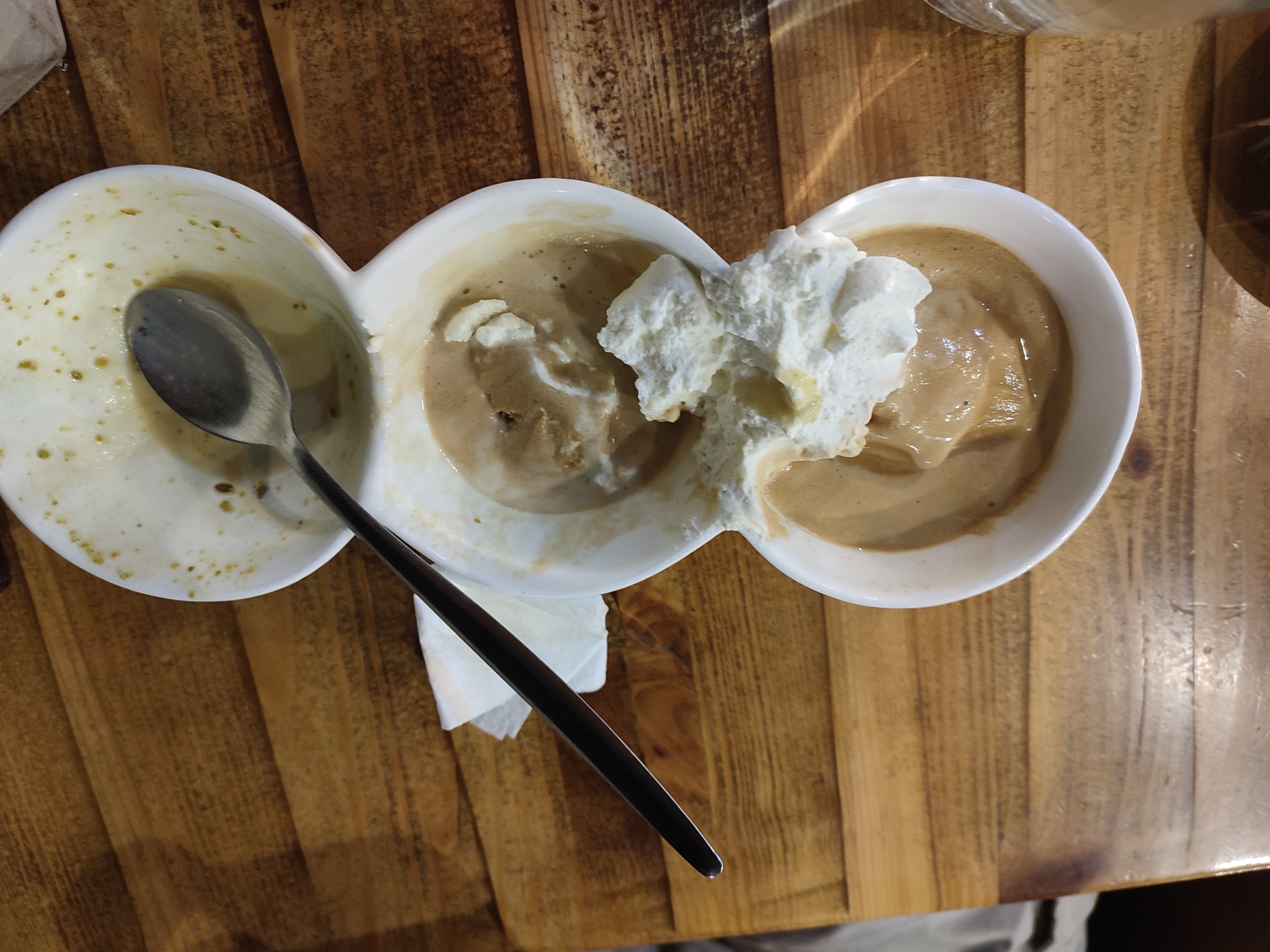 Qualité médiocre des glaces ! Le serveur nous a bien fait remarqué qu'il n'avait pas le choix de nous servir mais que ça ne l'arrangeait pas...mon conjoint a demandé s'il pouvait avoir un café le serveur a répondu en riant jaune : ben oui ! D'une effronterie !!! Ensuite nous avons pris tous les deux 3 boules de glaces....il n'a rien noté du tout et résultat...une erreur dans notre commande . Mes 3 boules étaient infâmes ! Ces crèmes glacées en principe ...j'avais la sensation en bouche de sucer des glaçons insipide de l'eau aucune onctuosité des goûts pas du tout raffinés...du sucre et de l'eau avec un peu de crème pour faire semblant.....alors oui la vue est pas mal mais ci joint notre note et ce que nous avons laissé dans notre coupe.....fuyez !!!
