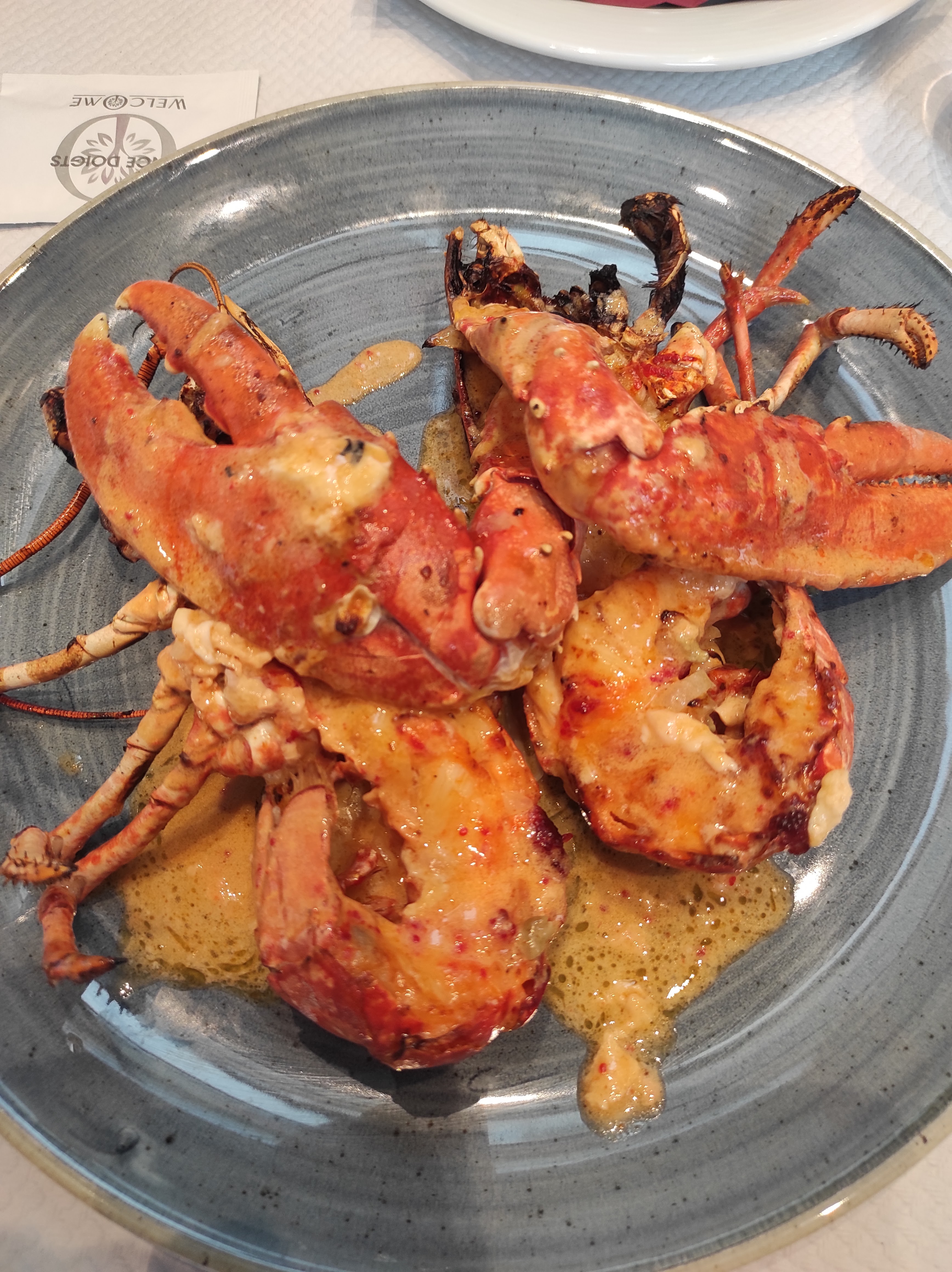 Le homard flambé au cognac, une merveille ! Le meilleur homard que j'aie jamais mangé, arrosé d'un petit pouilly fumé... Le paradis !