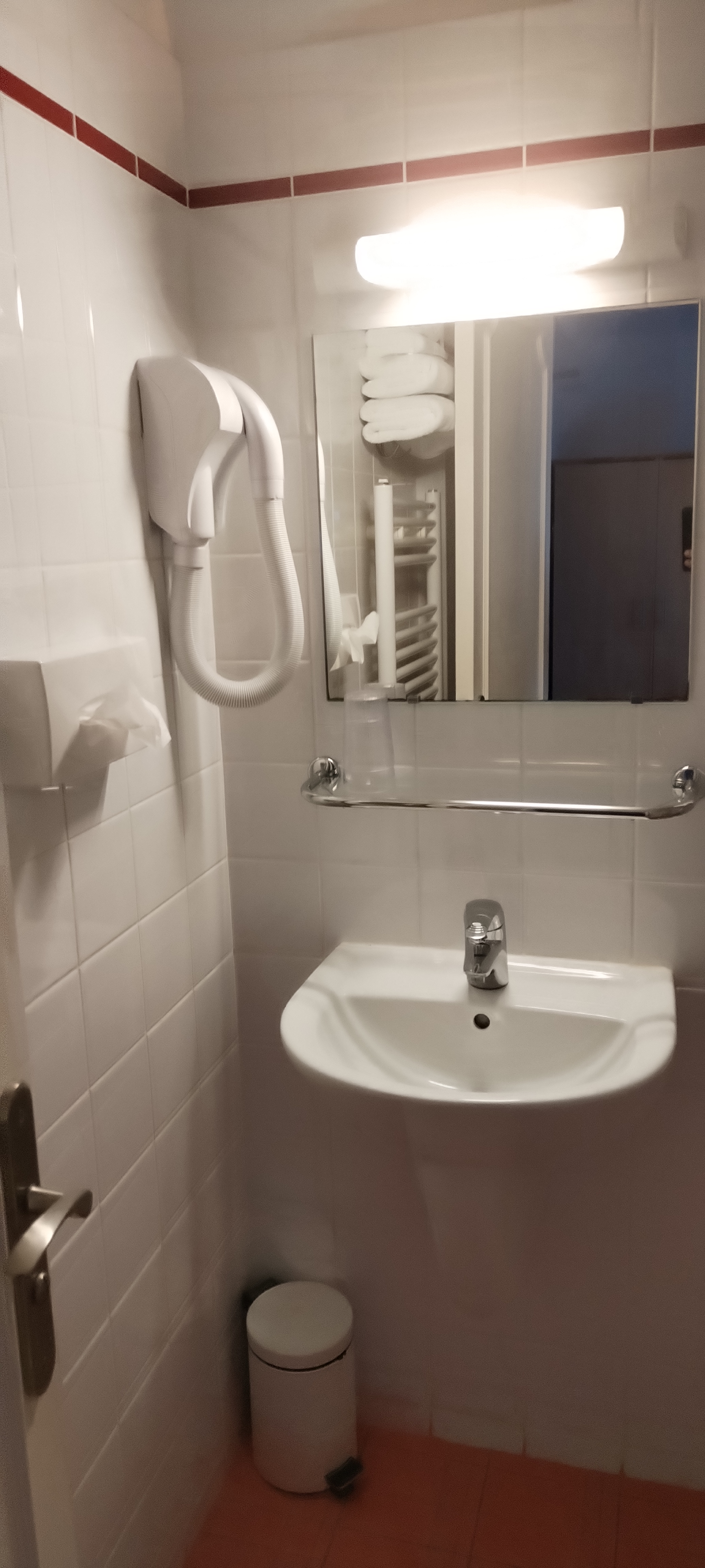 Salle d'eau trop étriquée et possibilité de glisser il faut bien se tenir pour entrer et sortir de la douche. Personnel très agréable et accueillant. Très propre. Petit déjeuner bien fourni avec crêpes, pain et viennoiseries tout frais.