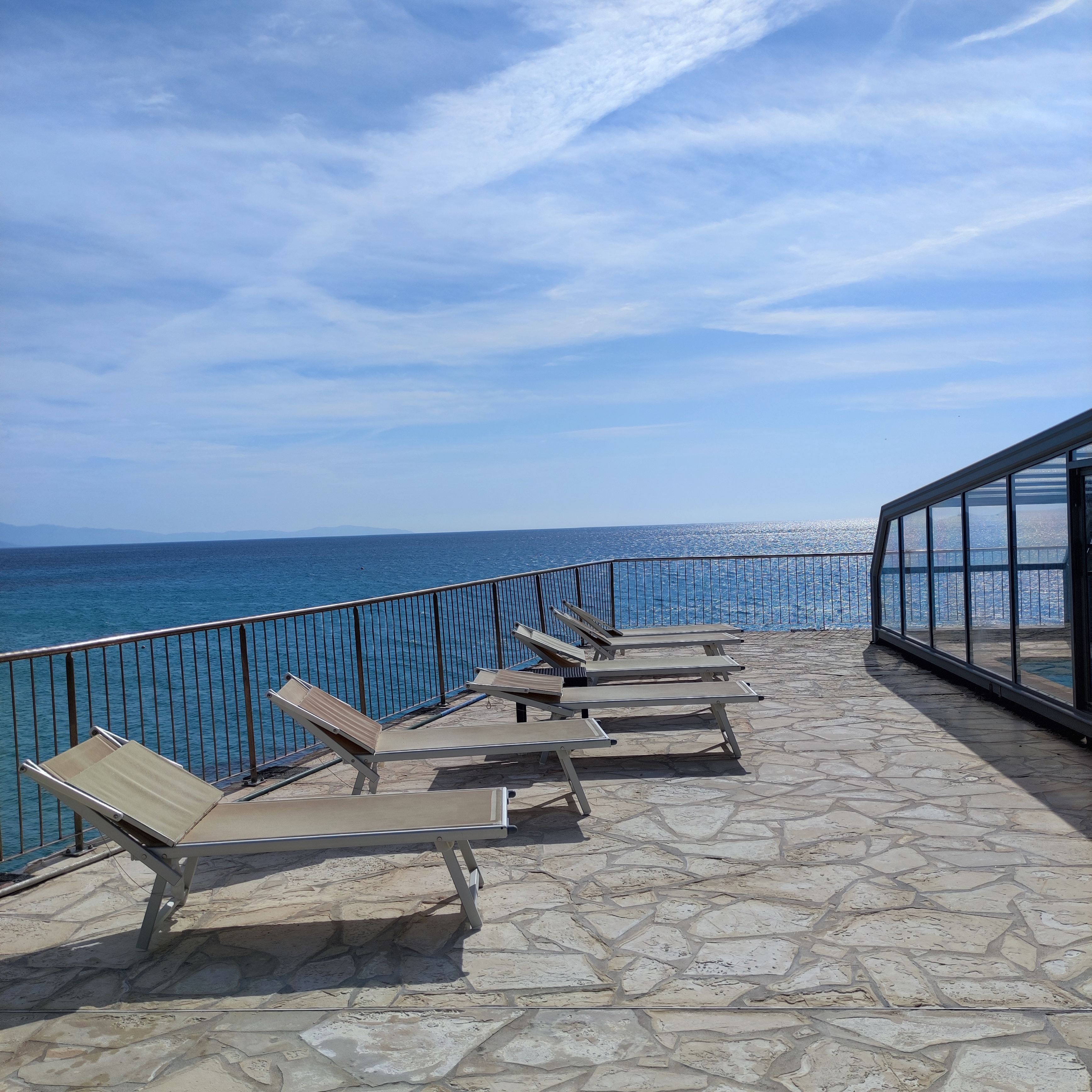 Un très beau cadre sur la mer avec une poscine exterieure. L'hôtel est propre ainsi que les chambres et les terrasses exterieurs. La vue sur la mer et l'accès de celle-ci depuis la chambre est très agréable. Le restaurant de l'hotel au bord de la plage est un peu chère mais excellent ! Mis à part ça, l'hôtel est très confortable et est parfait pour passer de très bonnes vacances.