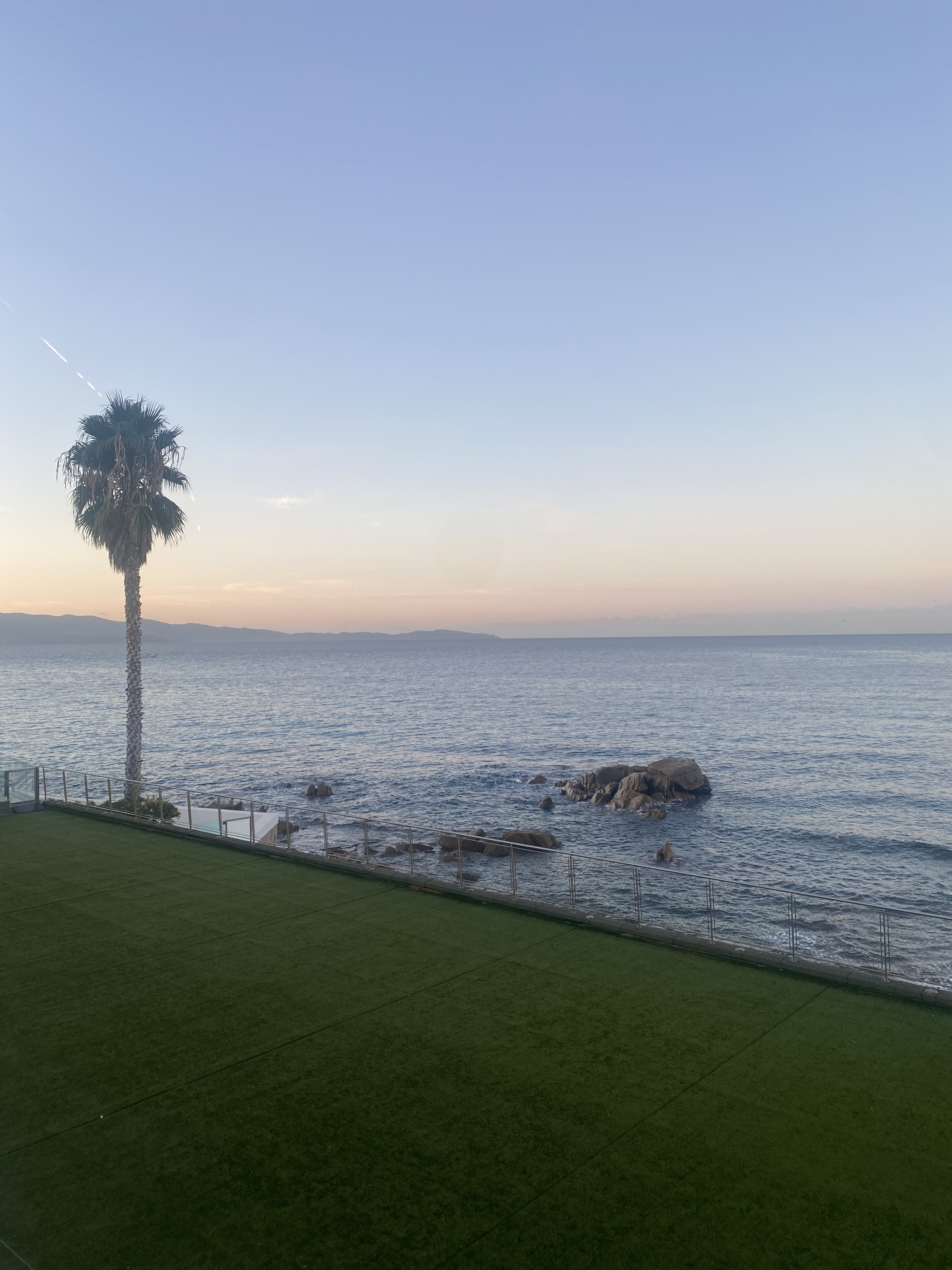 Joli hôtel, impossible de faire plus au bord de l’eau Accueil impeccable Chambre propre avec vue imprenable sur l’horizon Piscine en bord de mer Salle de sport Literie très confortable N’avons pas profité du petit déjeuner mais possibilité de se restaurer Le restaurant n’est ouvert qu’en haute saison Coucher de soleil magnifique depuis la chambre ou la terrasse Borne de recharge électrique pour la voiture