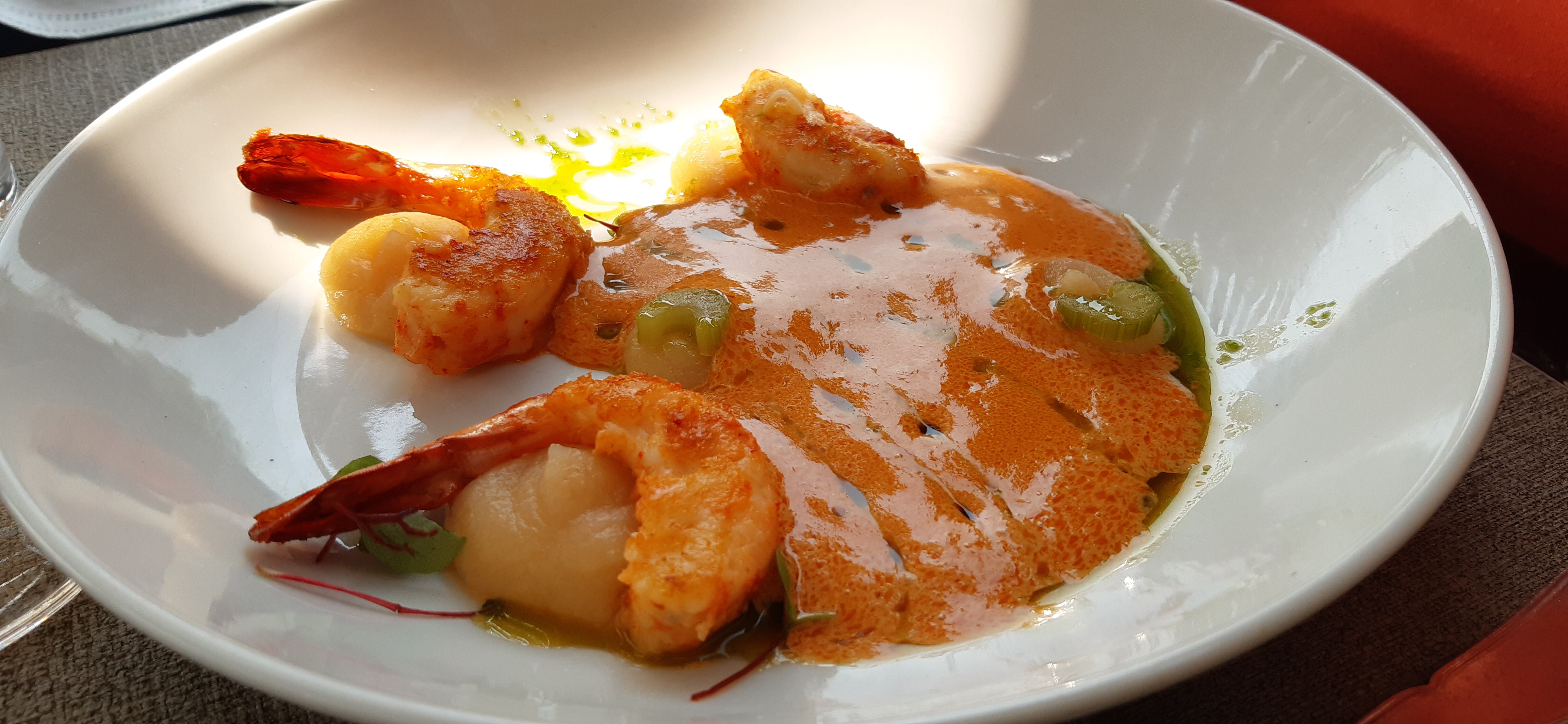 Saint jacques un peu trop cuites, Lhote au chorizo original mais avec un chorizo beaucoup trop fort, vins au verre correct mais sans plus, saint pierre excellent avec 2 sauces differentes dans l,assiette suivant les gouts de chacun, très bon roquefort goutteux très fin moelleux ce qui est rare, dessert a l'abricot bon et bien présenté. Un peu cher mais une bonne expérience et un bon moment.