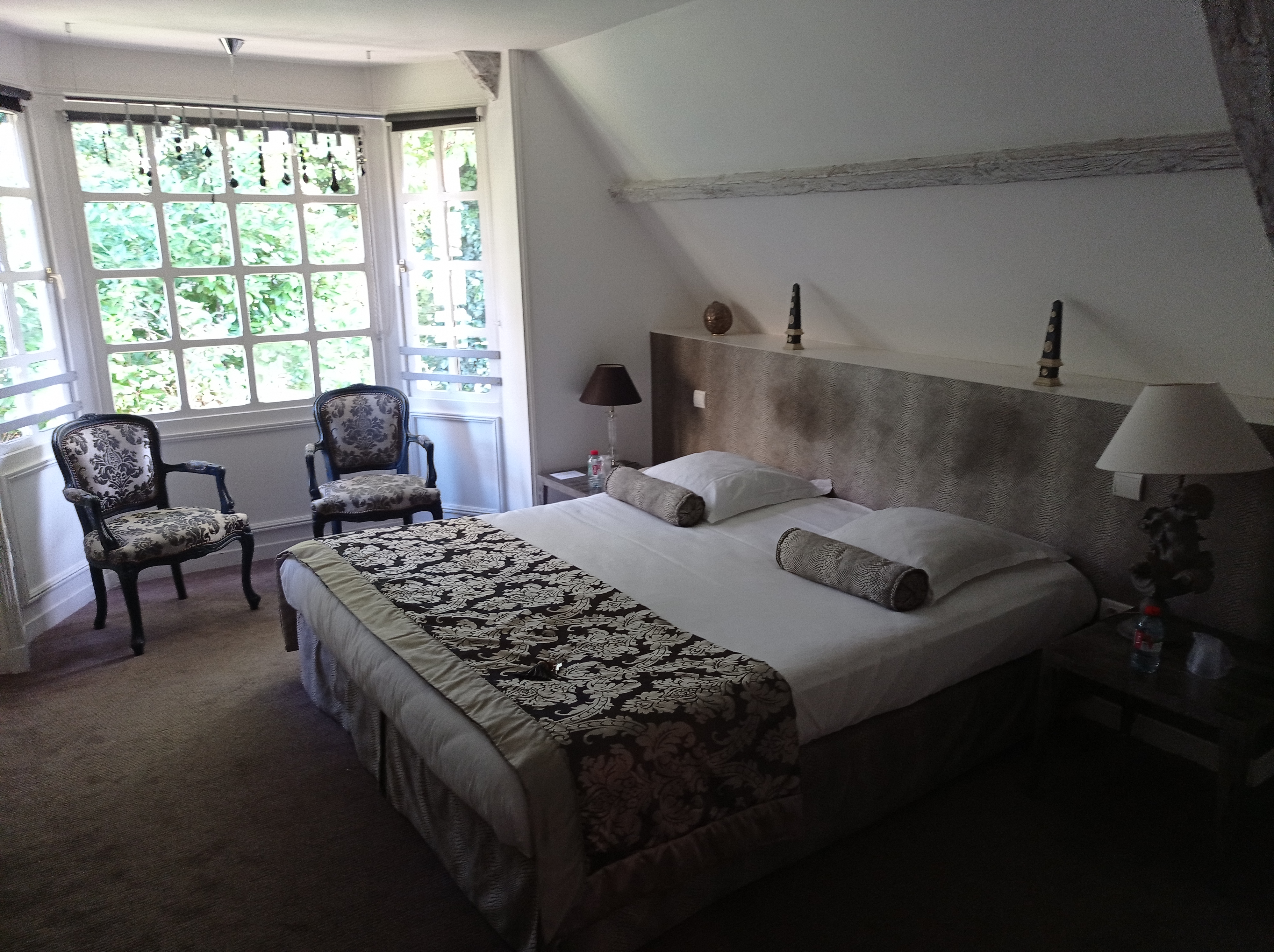 Très déçue de la chambre dite de luxe à l intérieur du château complètement défraîchie les têtes de lit jaunies, des traces d humidité, baignoire sans pare-douche c est honteux en plus c était pour fêter un anniversaire passez votre chemin il faudra attendre une rénovation qui s impose pour y retourner sinon très bel endroit et façade du château en revanche refaite. Les prix en restauration prohibitifs par rapport à l assiette.