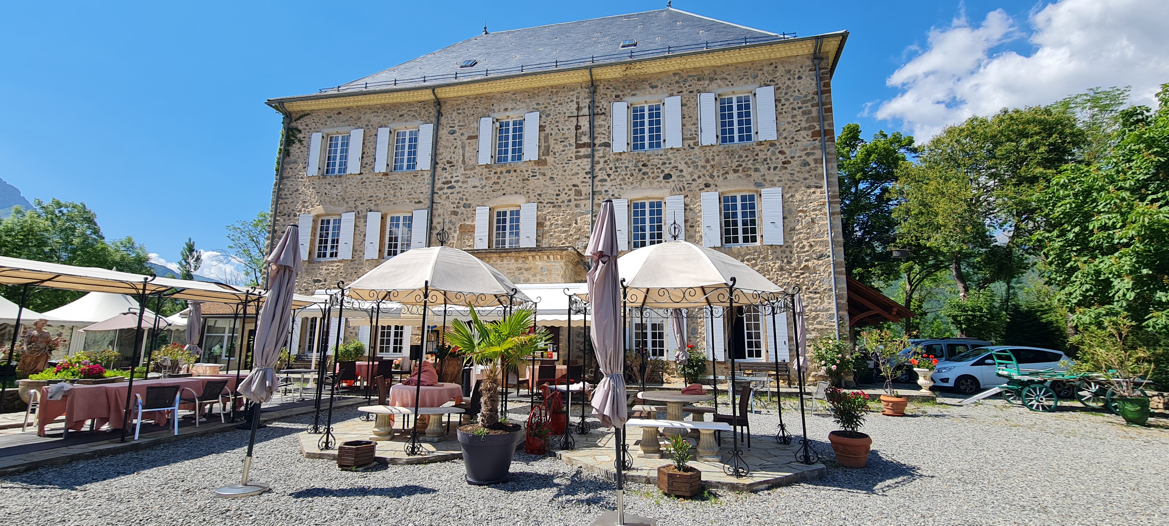 Hôtel dans une bâtisse du 13eme siècle situé dans un écrin de verdure avec une vue magnifique sur la montagne. Un beau parc avec une grande piscine. Les chambres sont très spacieuses. Tout l'hôtel est décoré et meublé dans le style château ancien avec un mélange d'époque qui correspond aux siècles que le domaine a traversé. Le service est soigné. Une pépite à découvrir.