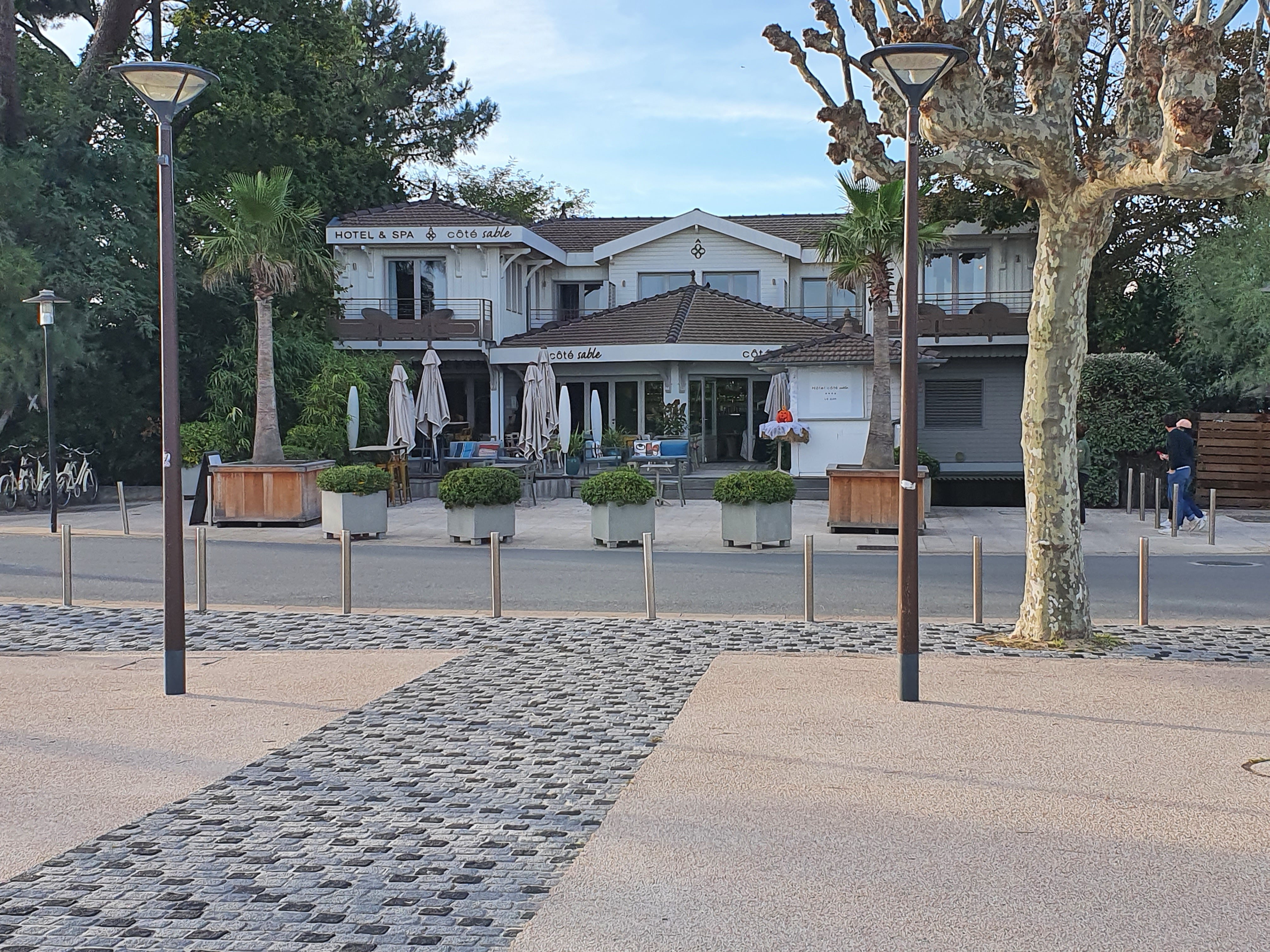 Magnifique terrasse pour un café. Mieux placé que Fredelian. Super hôtel avec vue sur le bassin. SPA Clarins. Vente de produits beauté et maison. Bref on peut tout y faire et même croiser Fogiel en terrasse (très gentil, discret et agréable).