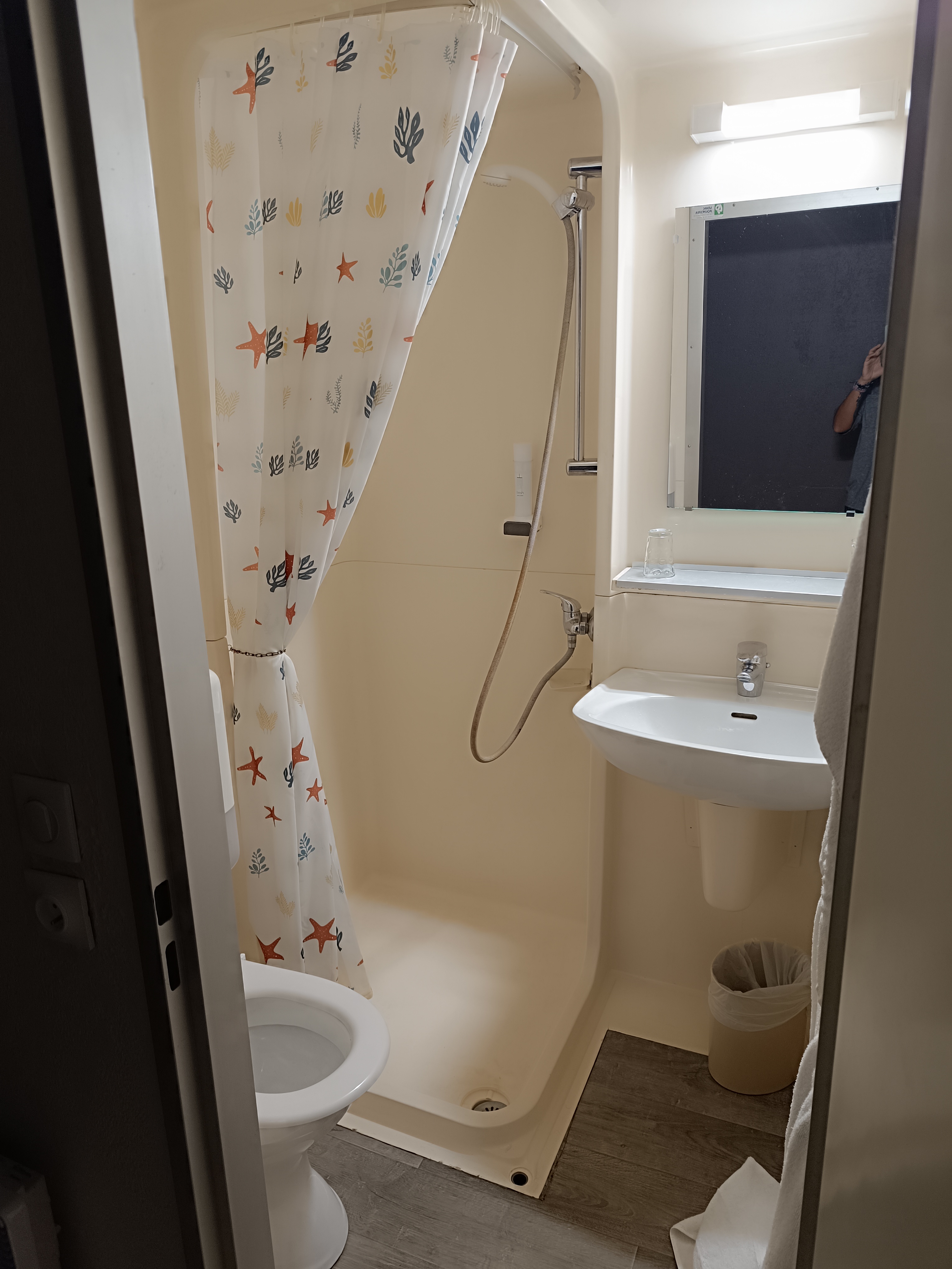 Bon accueil mais On est mecontent de la chambre Moquette très sale Couette légère Chauffage cassee dans la salle de bain Pommeau de douche remplit de calcaire Il faut pas être enceinte ou légèrement obese pour allez prendre sa douche Notre regres aussi pas de cafetiere et une bouilloire couvercle cassée et remplit de calcaire