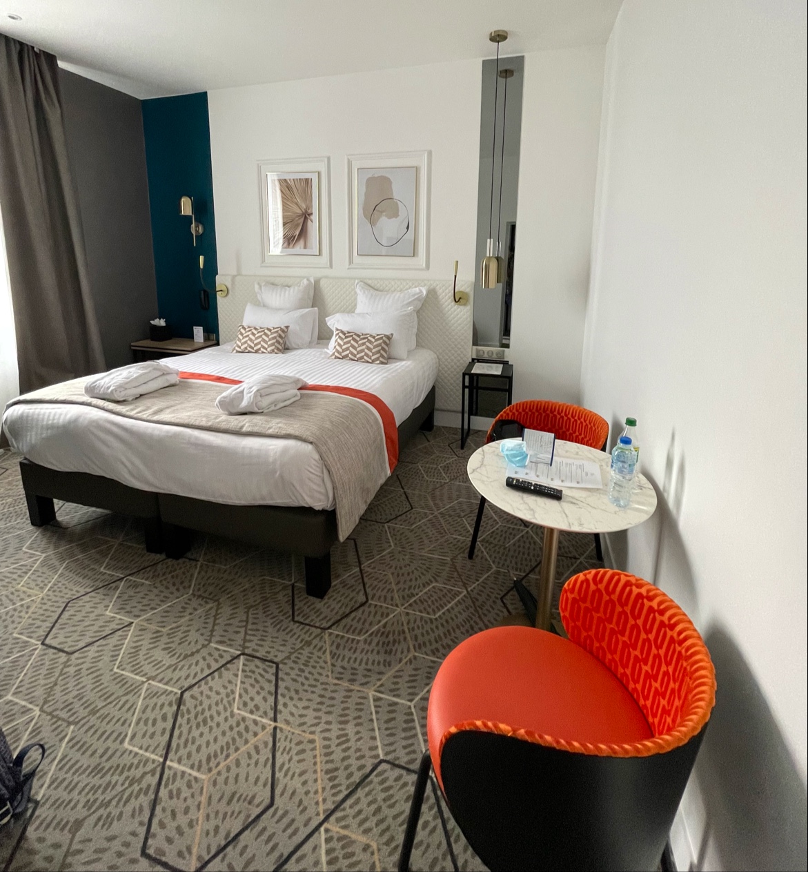Hôtel emblématique d’Angers, rénové dans un style art déco. Les chambres sont spacieuses et extrêmement bien isolées des bruits extérieurs. Il manque juste une machine à expresso. Le petit déjeuner est correct, mais le plus c’est incontestablement l’espace détente qui est extraordinaire, avec bain nordique, sauna, hammam