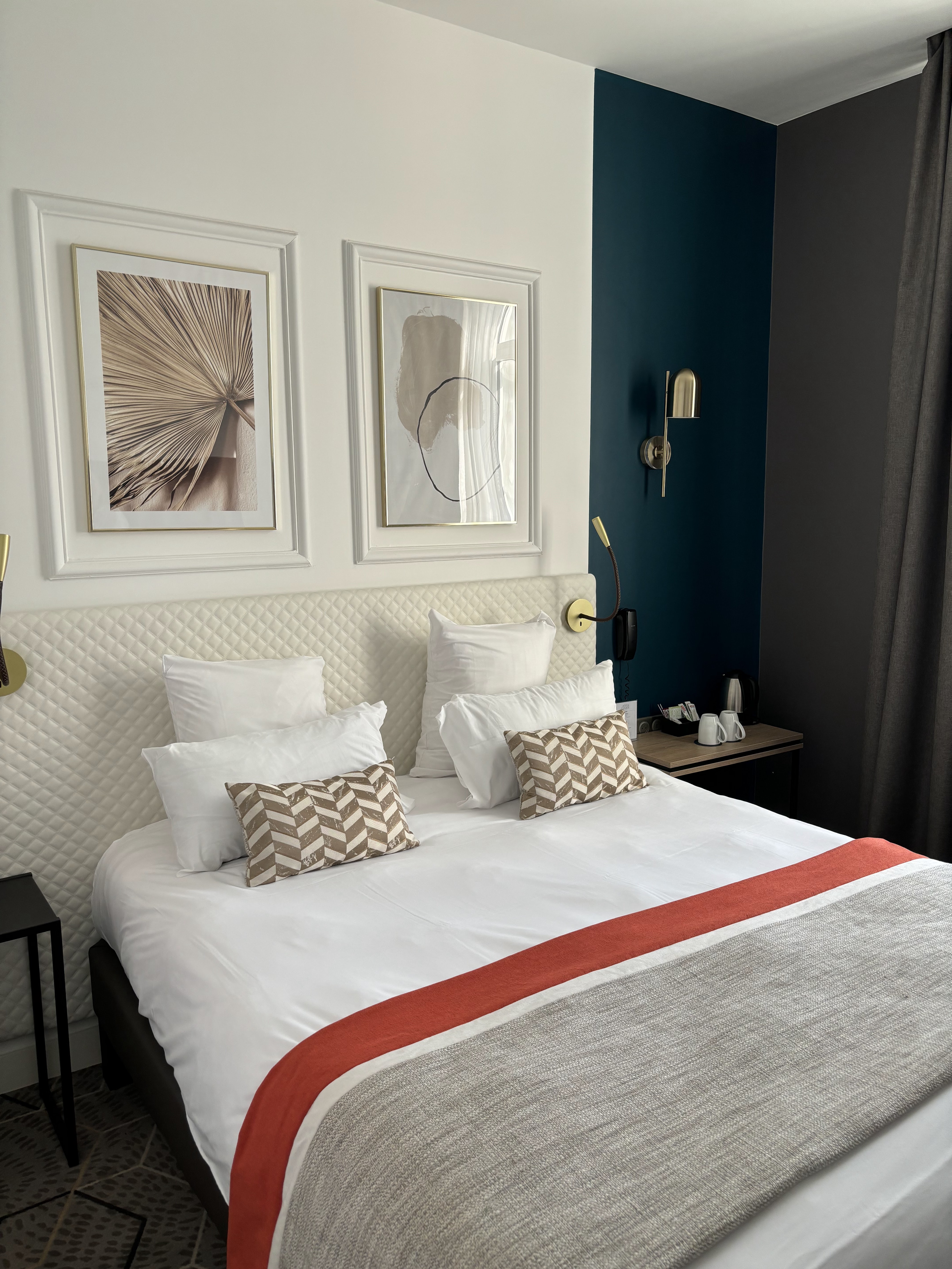 Hôtel idéalement situé au centre ville, 10’ à pied de toutes les attractions touristiques d’Angers. Merci pour le surclassement - on a eu très belle chambre deluxe, joliment décorée à l’ancienne, spacieuse et comfortable, très propre, bien climatisée, avec la literie ultra commode. Belle vue depuis la fenêtre! Très bonne insonorisation. L’hôtel possède son propre parking- c’est très pratique! Merci à Baptiste pour son accueil et les conseils pour visiter la ville. Bravo à toute l’équipe! On reviendra!