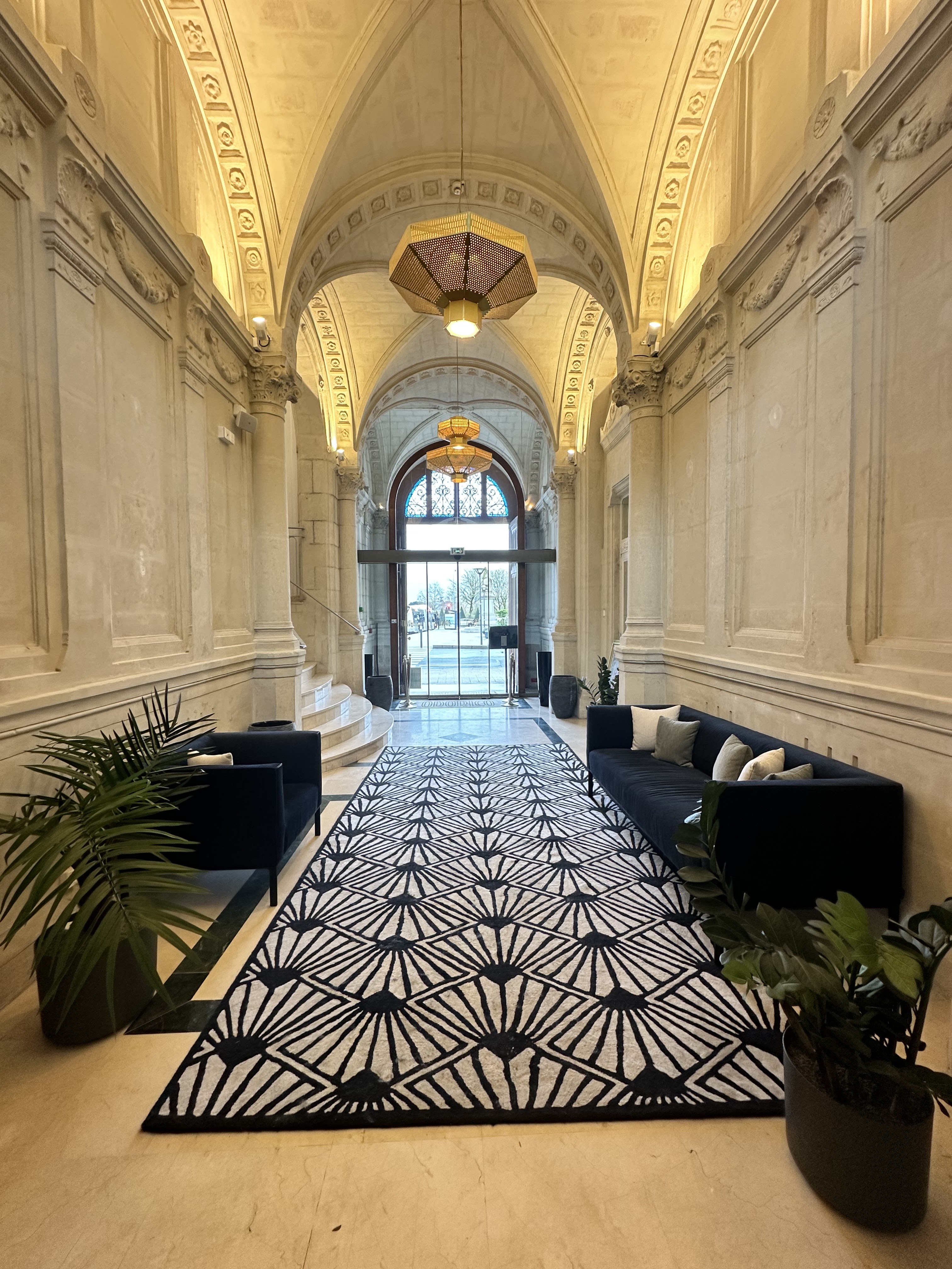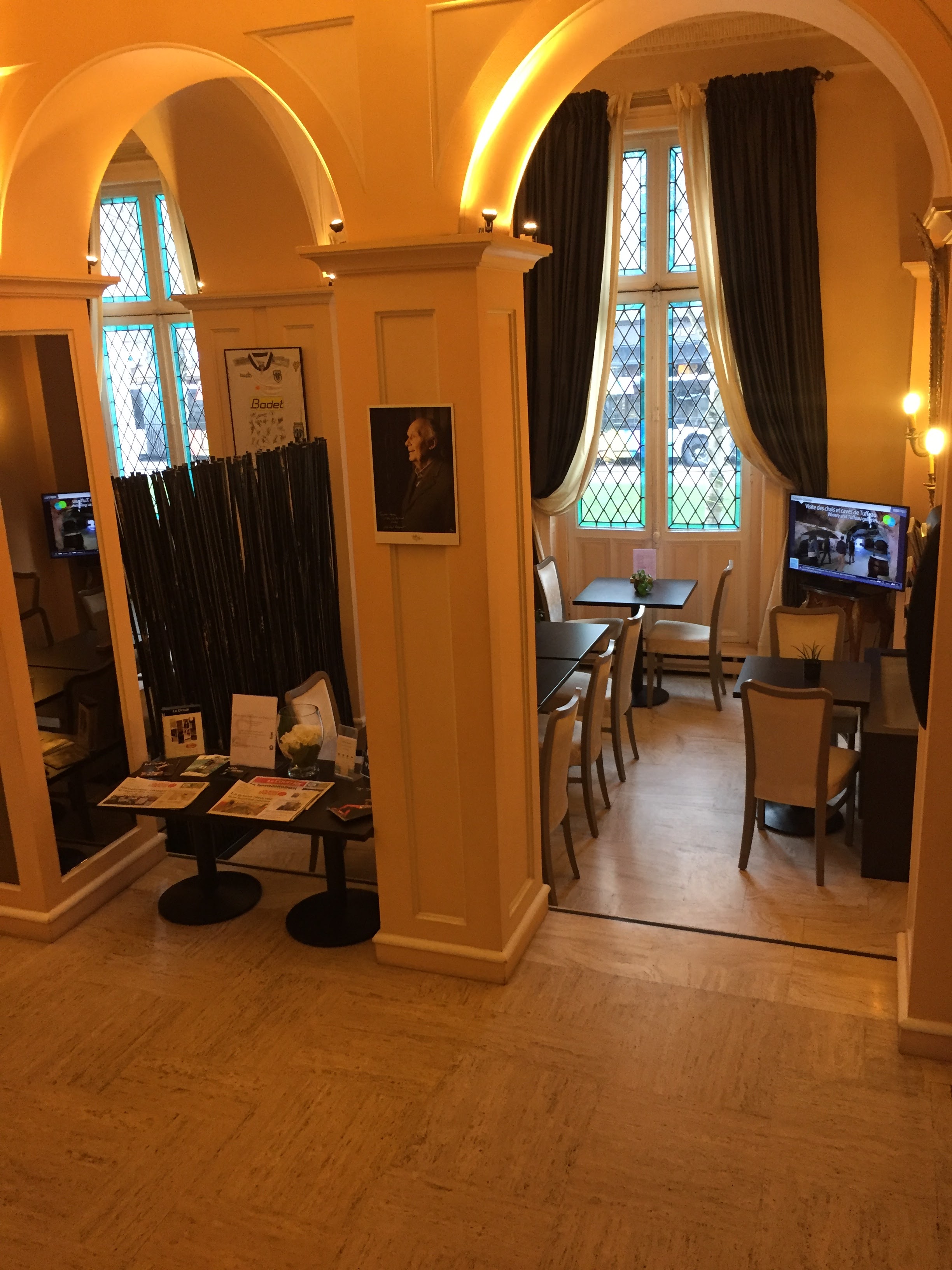 Très bel hôtel Très bonnes prestations (les restaurant n était pas ouvert car encore en travaux mais ce n est pas vraiment handicapant il faisait beau et Angers offre de très bonnes tables) Juste à mon goût la décoration Arts Déco des couloirs est un peu sombre. Enfin ce n estcque mon goût personnel car c est beau et chic.