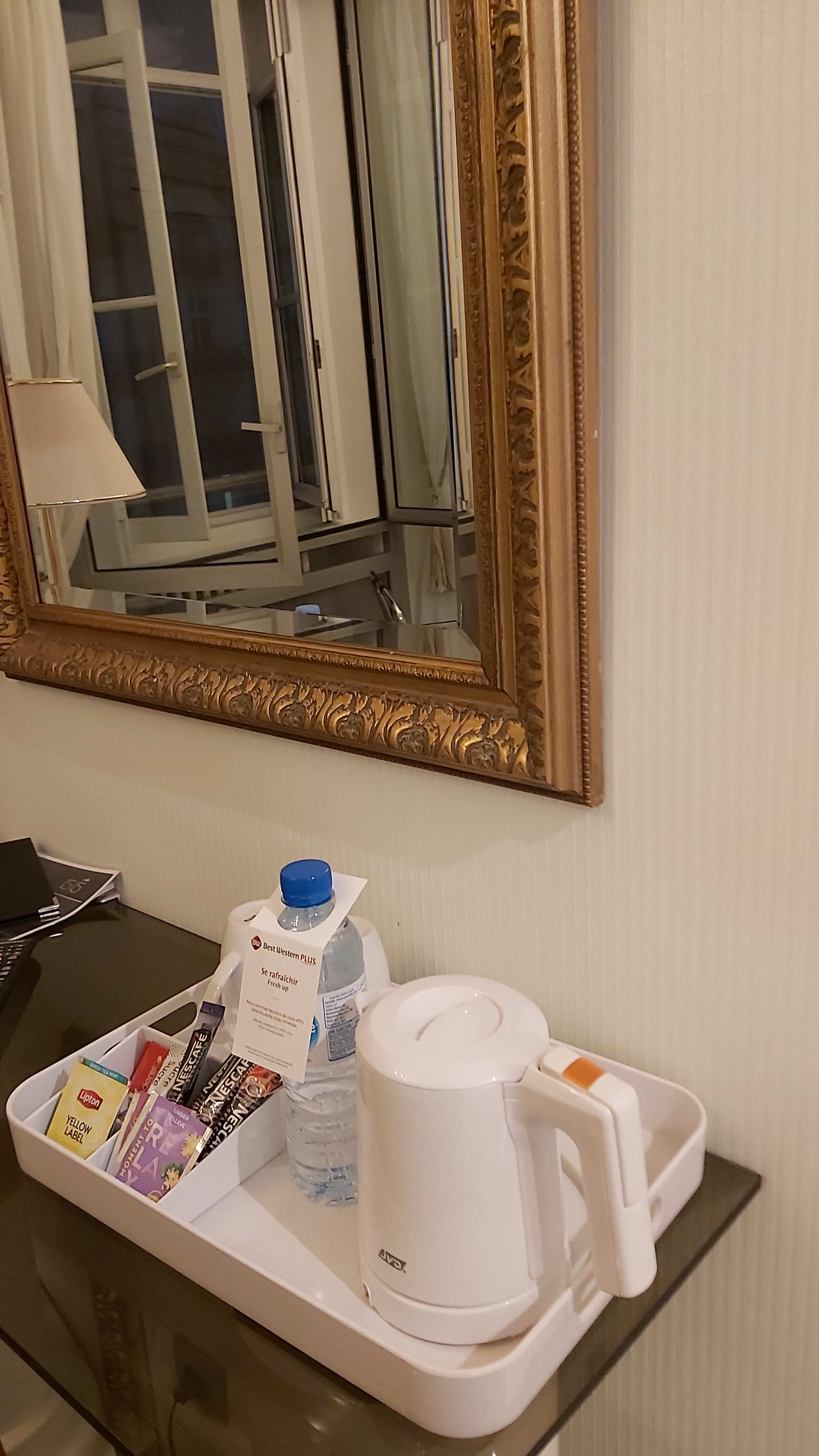Chambre pas digne d'un 4 étoiles limite petit 3 étoiles, chambre de la 1ere catégorie de prix plutôt petite clim ne fonctionne pas de frigo mais le pire est la salle de bain , propreté des WC laisse à désirer seulement 2 gobelets au lavabo même pas de savon et kit d'hygiène porte serviette brinquebalant pas de pression au robinet. Par contre l'hôtel qui date de 1850 environ et qui a été rénové en 2022 est vraiment magnifique dommage qu'il ai oublié de rénover cette chambre. Personnel à la réception sympathique, petit bémol pour les femmes de chambre qui frappe à la porte dès 9h du matin même si j'avais oublié de mette la pancarte ne pas déranger on se renseigne d'abord à la réception si les clients on fait leur chek out c'est la base du housekeeping.