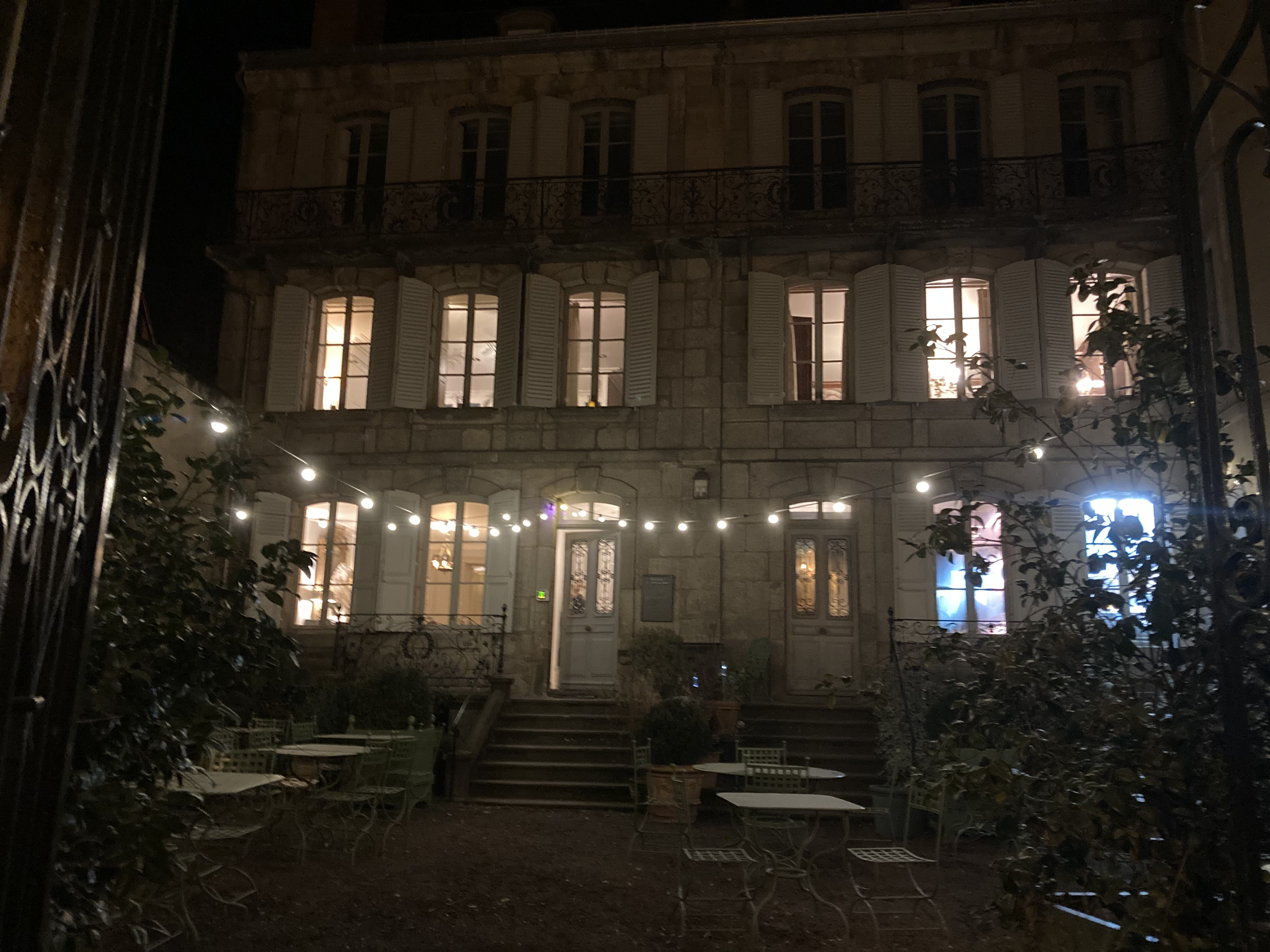 Visité samedi soir. L'extérieur est absolument magnifique. Manoir français classique situé dans une cour fermée couverte de guirlandes lumineuses. Cependant, la nourriture a été décevante. Les steaks étaient extrêmement durs au point qu’on ne pouvait pas les passer avec un couteau à steak. Les pommes de terre sont des chips épaisses en forme de coin, elles étaient insuffisamment cuites et plutôt sans saveur, elles semblaient réchauffées au micro-ondes. La fondue creusoise à plat régional composée de frites dans une sauce au fromage traditionnellement à base de camembert était insipide et servie avec un morceau de charcuterie. Les desserts étaient ok, rien de spécial. Comme nous étions là à 19 heures et qu'il n'y avait qu'une seule autre table, ils ont quand même réussi à se tromper de plat principal et à oublier un dessert. Le cadre est magnifique mais mérite bien mieux. Je ne reviendrai pas et je ne le recommanderais pas.