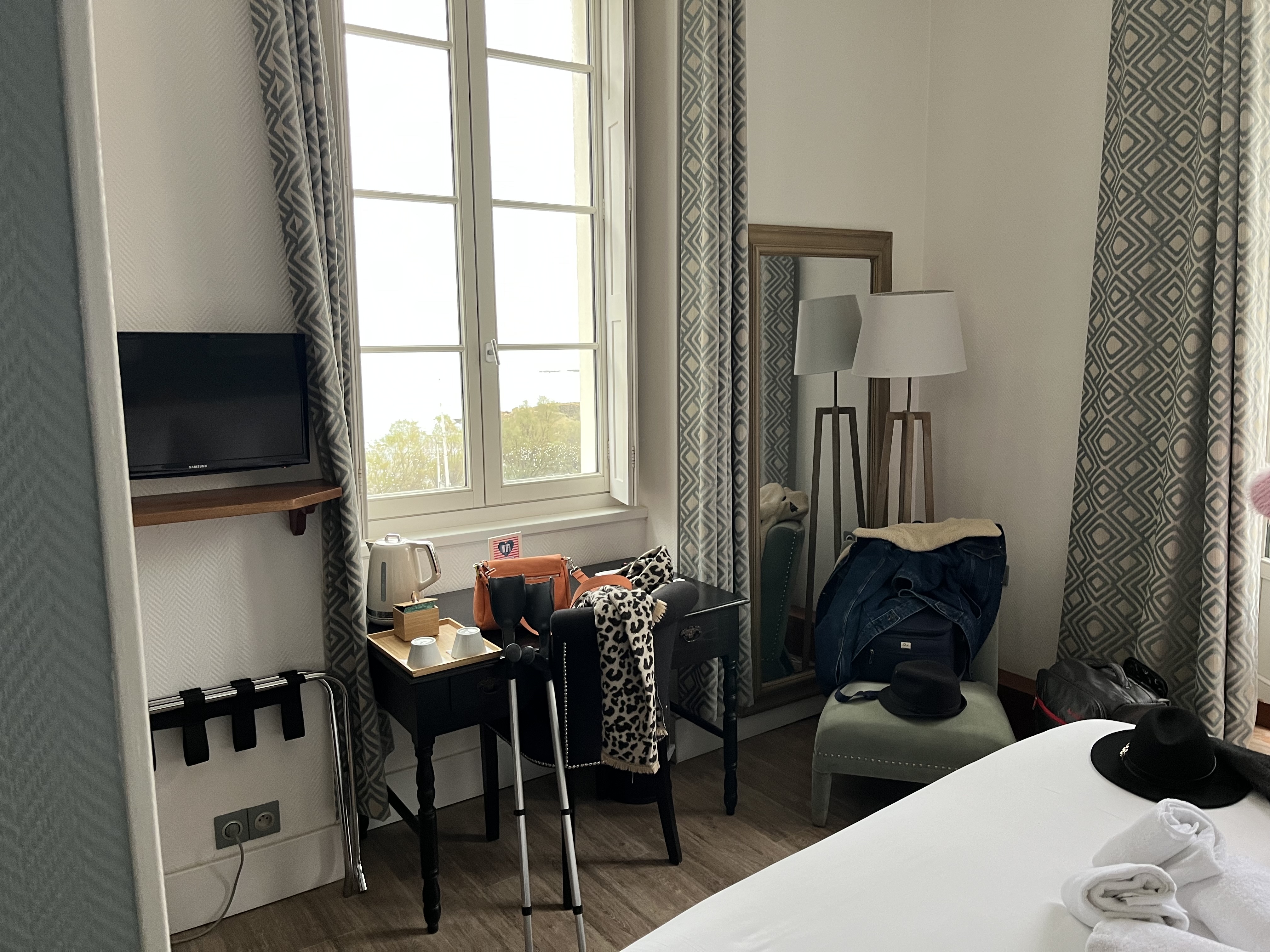 La chambre était belle avec une belle vue sur l'océan et la place en contrebas. C'était propre et disposait des commodités standard (réfrigérateur, coffre-fort et théière). De nombreuses prises pratiques pour recharger. Petite télévision mais correcte selon les standards français, et en plus, vous n'avez pas envie de trop regarder la télévision dans une si belle ville. Le service était excellent. Le personnel de la réception était extrêmement serviable et nous a donné des conseils sur ce qu'il y avait à faire et à voir, ainsi qu'en organisant des réservations pour le dîner et notre taxi. Une expérience très agréable et relaxante !