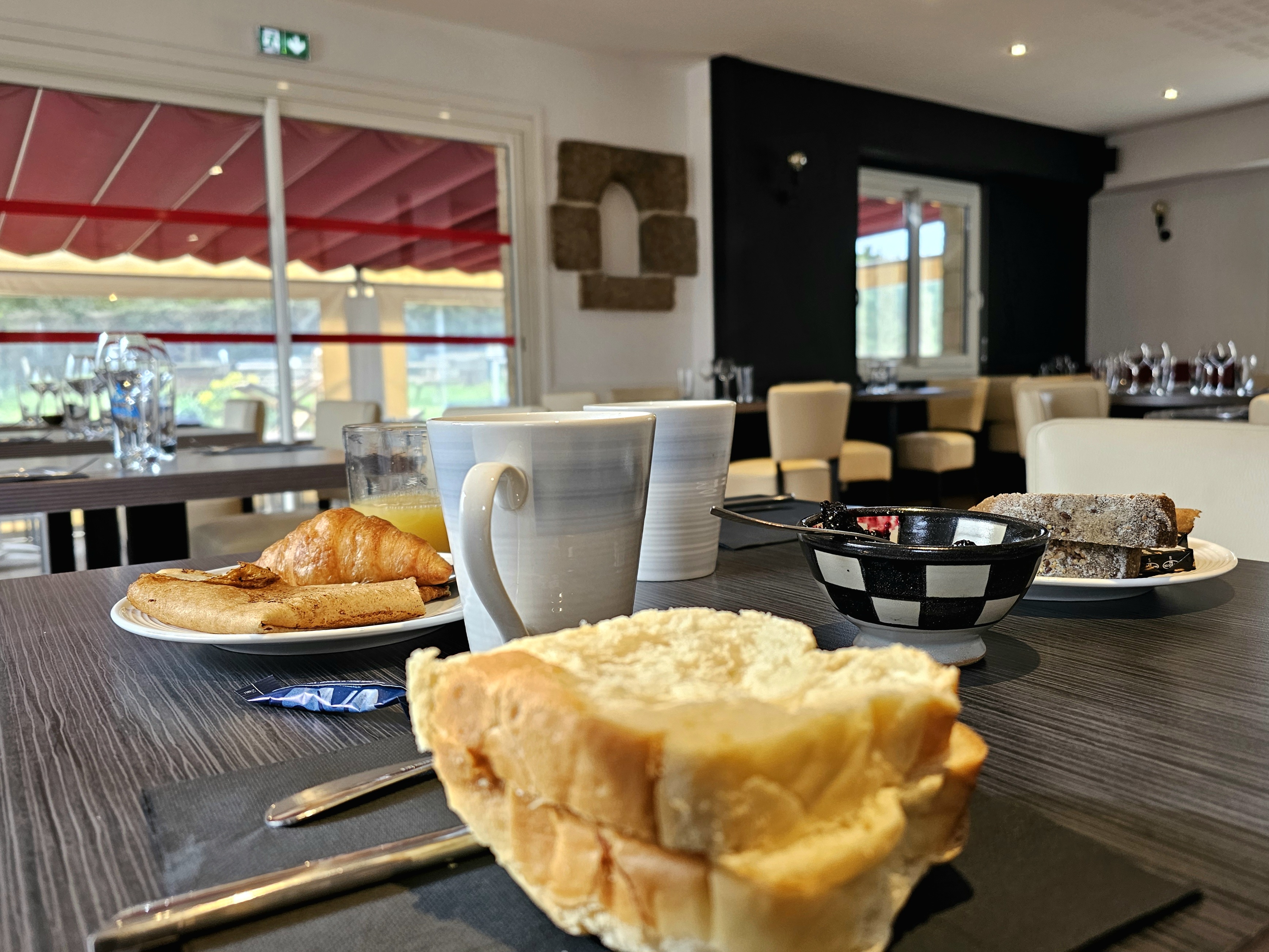 le rapport qualité prix n y est pas concernant les chambres propres certes mais minuscules du moins celles du 2e etage ! impossible d ouvrir porte de s de b en entier parce que butte sur le lit! idem penderie ou du moins ce qui est consideré comme tel à savoir petit placard sous pente dont la porte butte ds ce qui sert de table de chevet! toilette coincé ds minuscule espace les genoux st contre mur!bref en 12j d itinerance sur le GR34 cette année cela a été notre étape la + chère et de loin la moins bien! petit dej tb 14euros tt de mm ns avions eu mieux encore +complet et moins cher la veille à Bénodet; accueil par contre sympa à l arrivée par 1 mr alors qu il nétait pas de service et que ns aurions du récuperer notre clef ds 1 bte prévue à cet effet idem personne serviable et agréable au petit dej vue sur mer oui mis de loin tt de mm ne vaut pas le prix