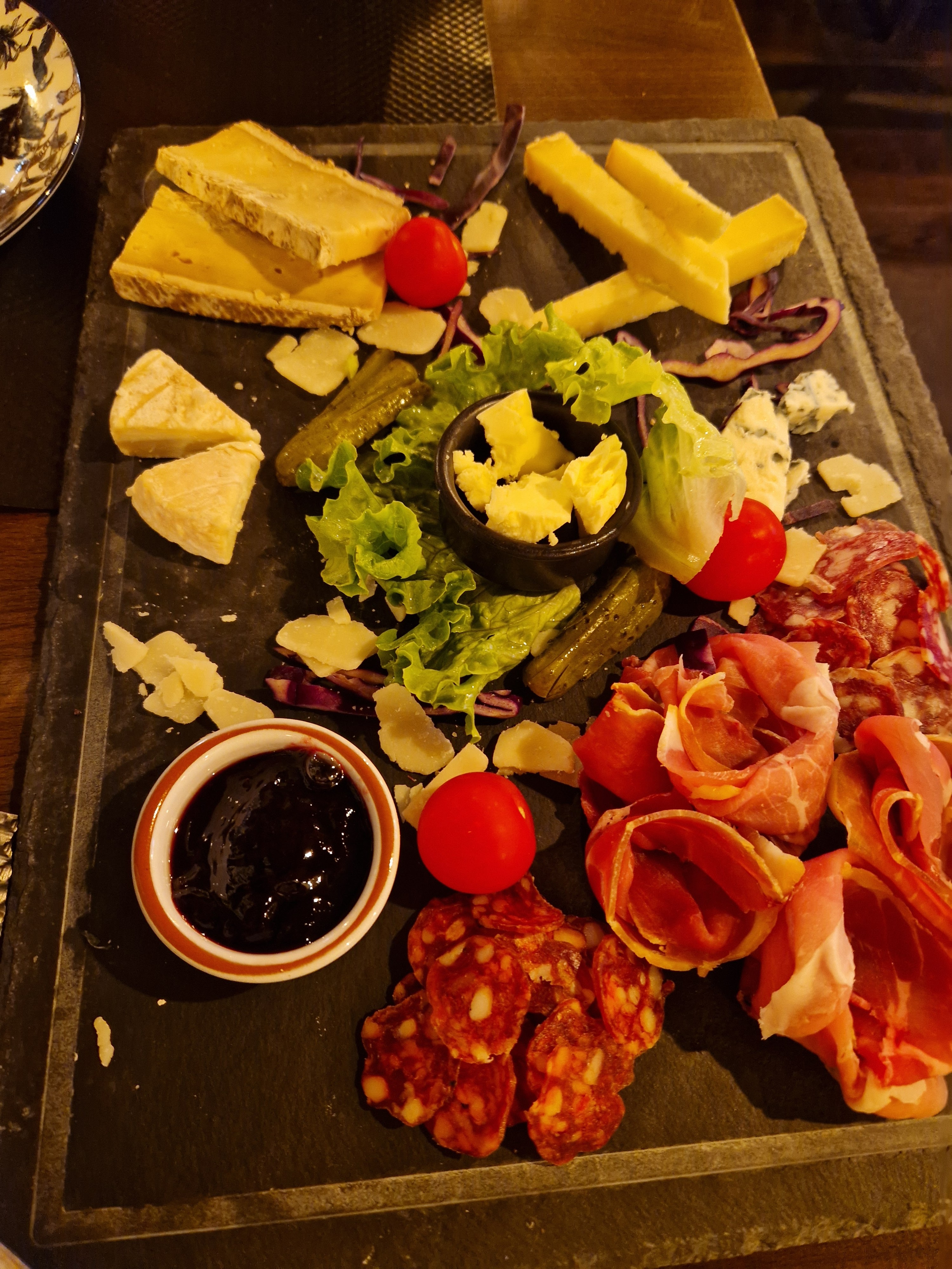 Entrée très bien, aligot plutôt simple et tarte aux quetches faite maison mais seulement 2 petits morceaux le reste c'était des framboises. Restaurant très bien dans son ensemble