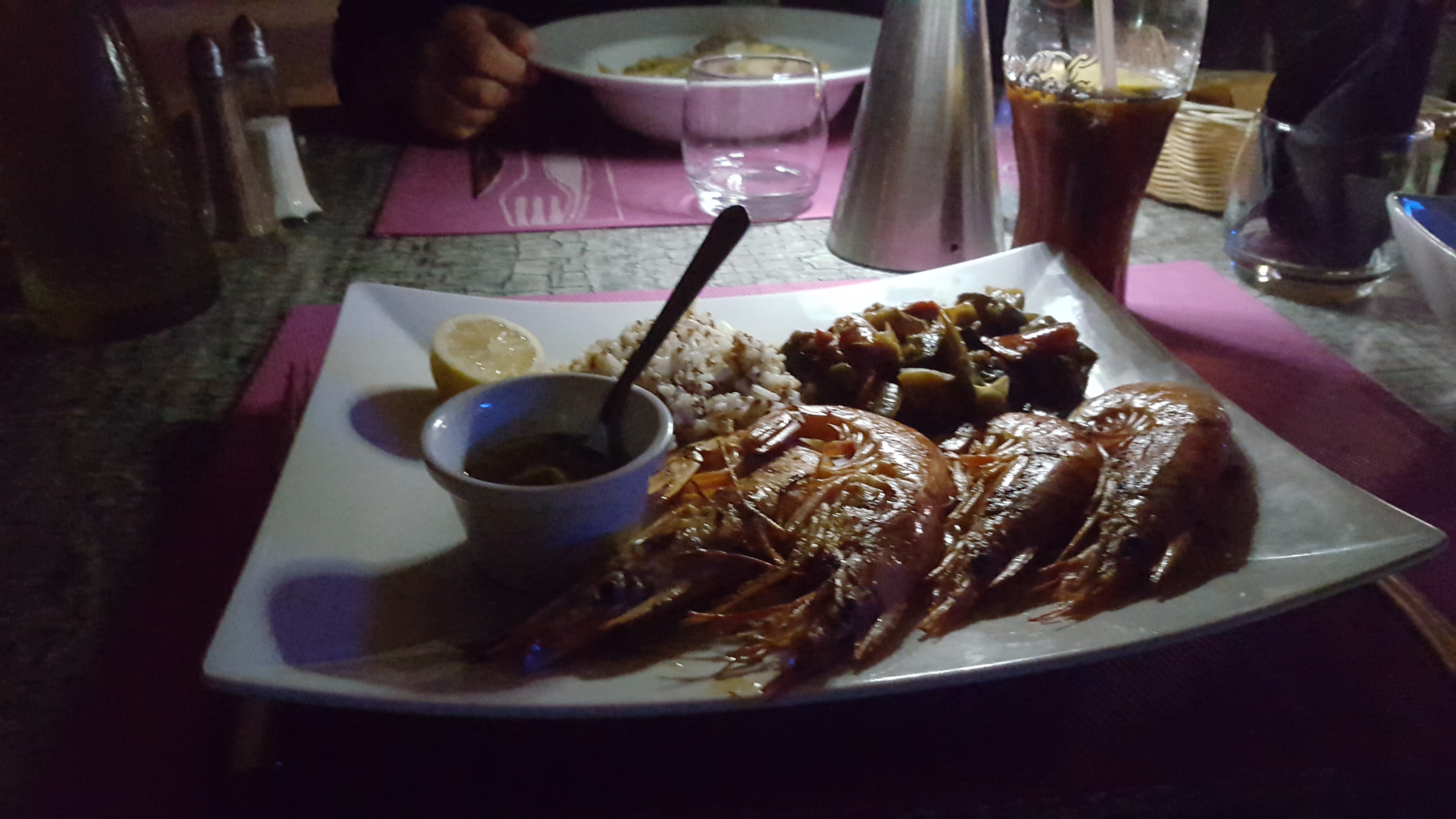 Entrecôte tiède et sans épices frites tièdes... Trop chère pour 18.50 euro le plat... Pas de sauce salades juste de l huile et beaucoup de plat de poissons accompagnés de riz sans sauce bref passé votre chemin vous ferez mieux chez vous...