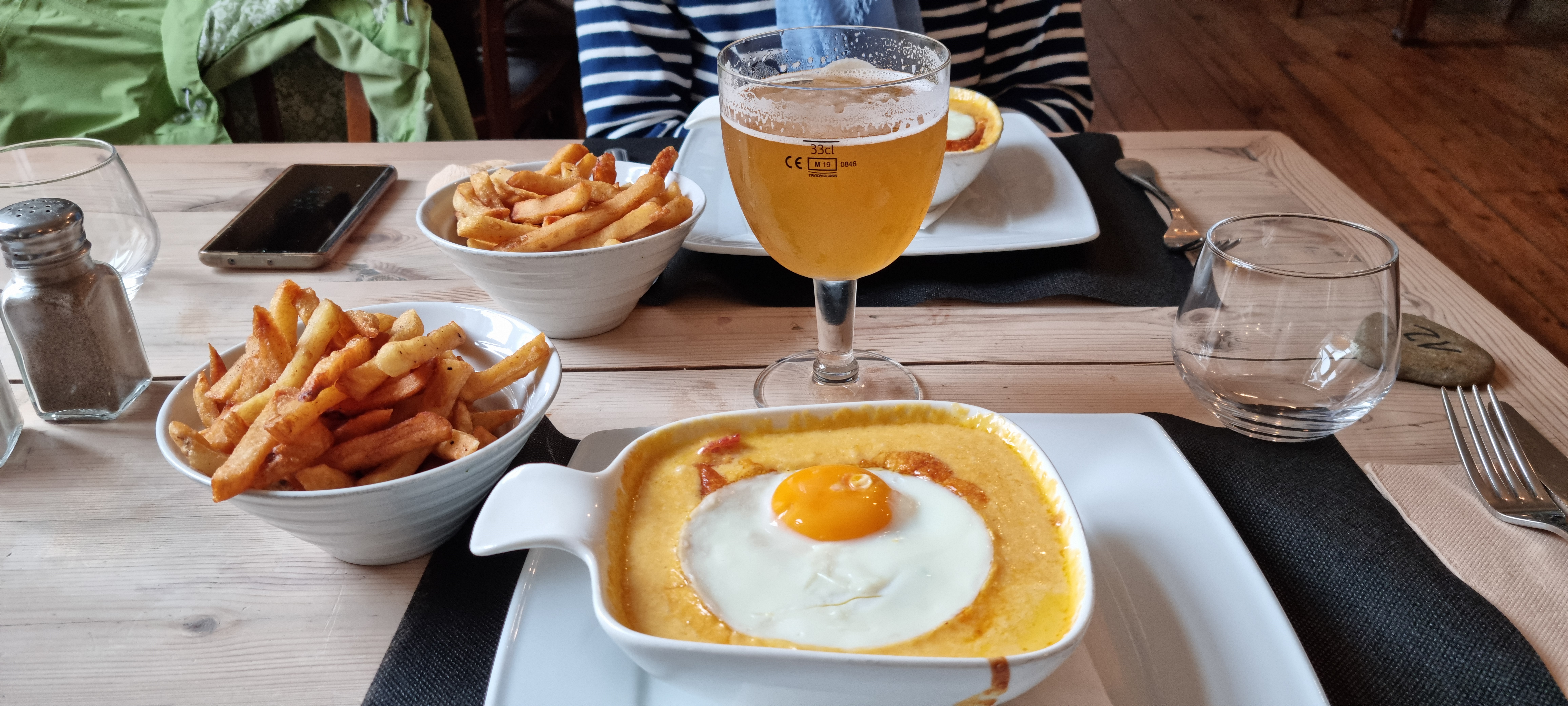 Après une longue journée de marche j’ai réservé il y a 2 mois une nuitée et le restaurant. La nuit s’est bien passée malgré le parquet bruyant. La restauration quant à elle: Plat de penne aux légumes transformé en tagliatelles trop cuite en paquet réchauffé où vous cherchez les 3 légumes … pour 25€! La serveuse nous propose de voir ce qu’ils vont pouvoir faire! Au moment de payer l’addition en divisant par 3: ils arrondissent au dessus sans aucun geste commercial ! Ne parlons pas du service: demander 3 fois pour être servis … En résumé prix hors de prix pour le service de restauration rendu…il faut changer de cuisinier et fournisseur de produits…