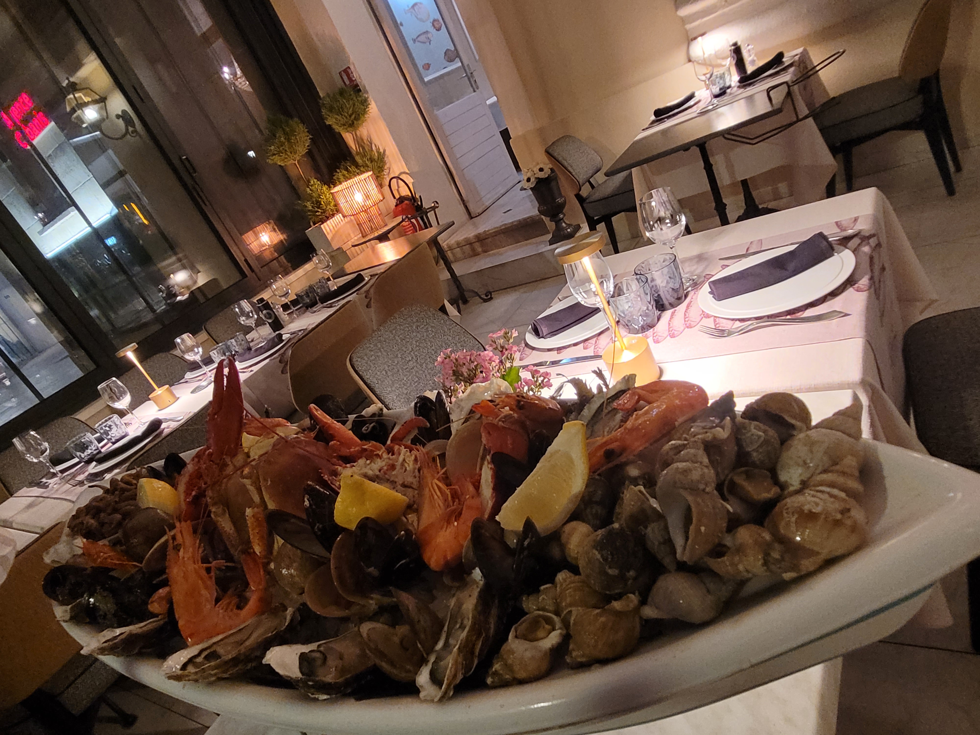 De passage au restaurant de l'hôtel, situé au bord du vieux port. Le cadre y est très agréable, le service chaleureux et à l'écoute du client. Excellente cuisine avec produits frais de la mer. Plateau de fruits de mer gargantuesque et d'une qualité incroyable, mais malheureusement trop garni même pour 2 grands mangeurs. Résultat : beaucoup de nourriture reste sur le plateau, dommage pour ce gaspillage.