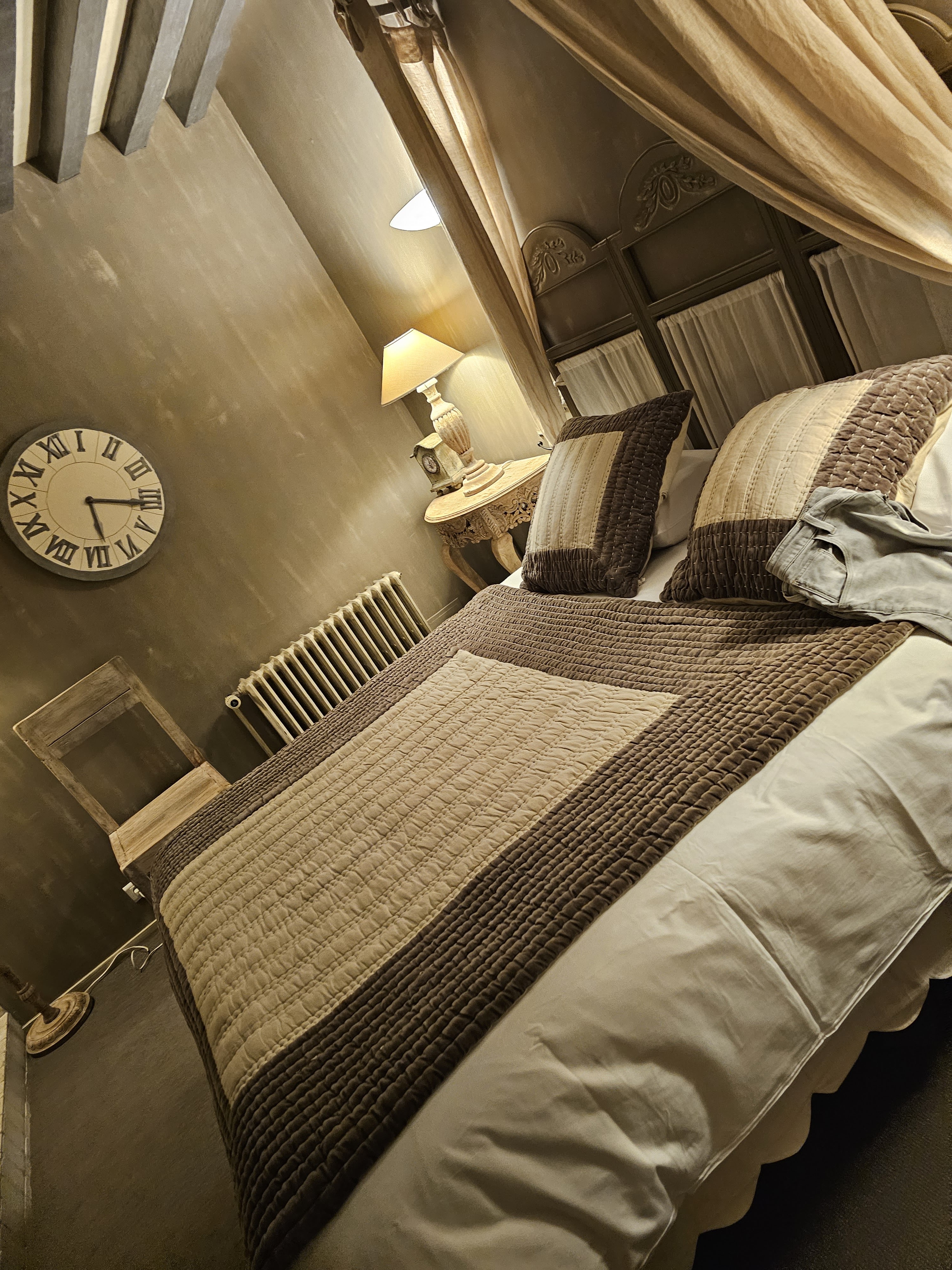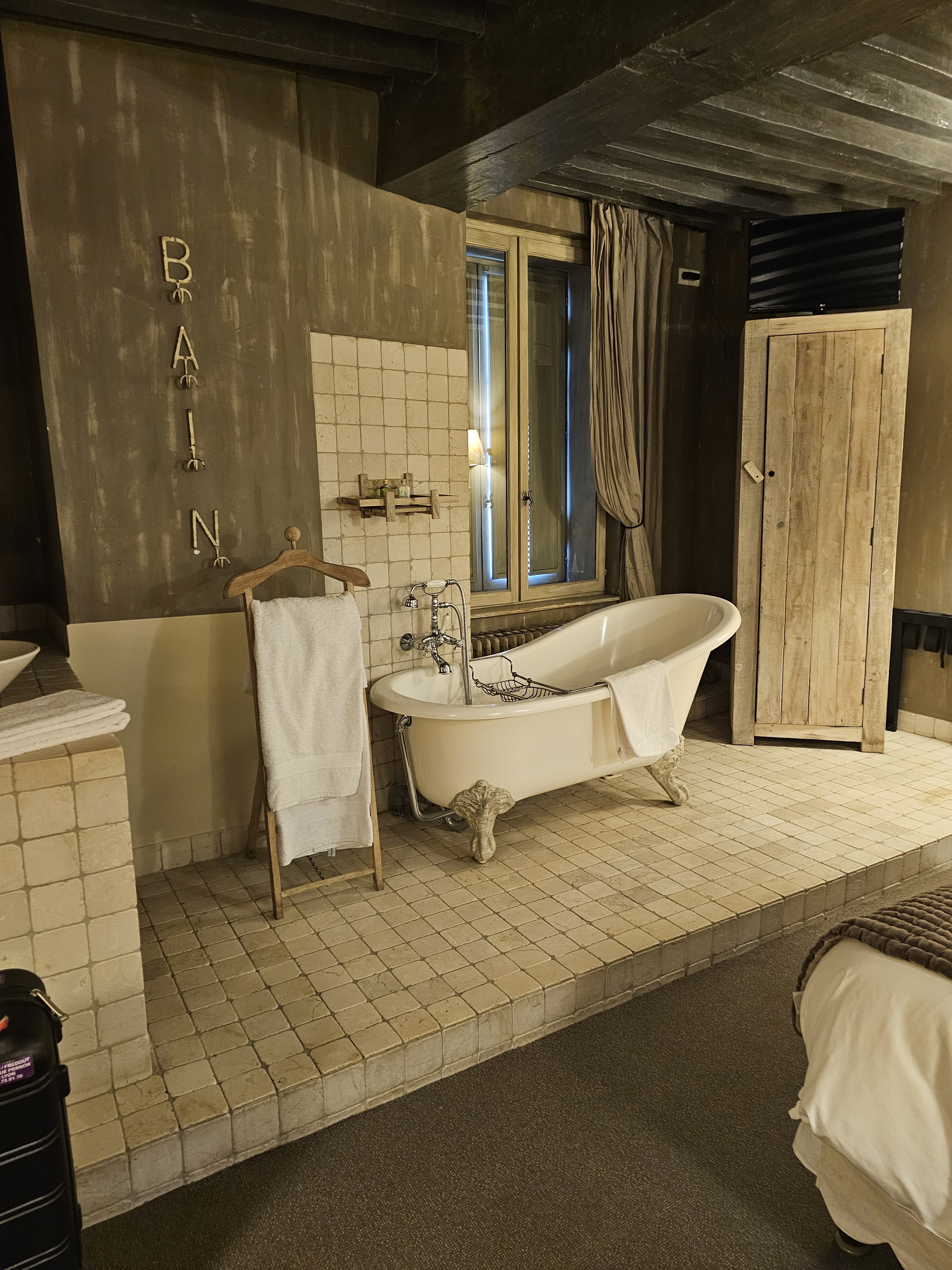Cadre exceptionnel. Chaleureux. Alliant modernité et tradition dans une bâtisse du 17 ème siècle. Literie d'excellence qualité. Il y fait bon chaud malgré un mois d'avril un peu frais. Le petit déjeuner est traditionnel à la française avec du pain ultra frais croustillant et des viennoiseries très bonnes, savoureuses, de la confiture à l'ancienne, du thé de la maison Mariage Frères. Café selon votre goût. Vous pouvez prendre un repas sur place. C'est une adresse gastronomique très appréciée. Jamais de déception. Toutefois certaines chambres donnent sur la rue principale du village avec beaucoup de passage. Le double vitrage n'est pas équipé contre le bruit mais uniquement contre le froid ou la chaleur du soleil. Ainsi, il est conseillé de vous renseigner sur la situation de la chambre avant de réserver si vous êtes sensible au bruit. A noter s'il s'agit de la chambre 15, bémol sur la douche qui n'est pas fermée, vous risquez d'en mettre partout. Enfin, si vous appréciez la décoration, il vous sera possible d'acheter des petits éléments de déco dans la boutique. Lampes, vases, photophores, petites statues, etc... Bon séjour !