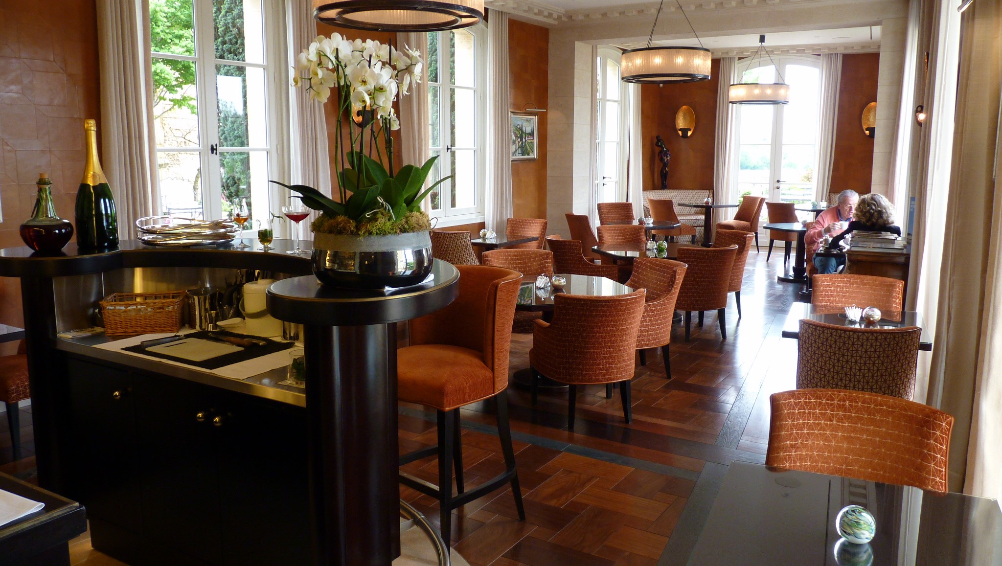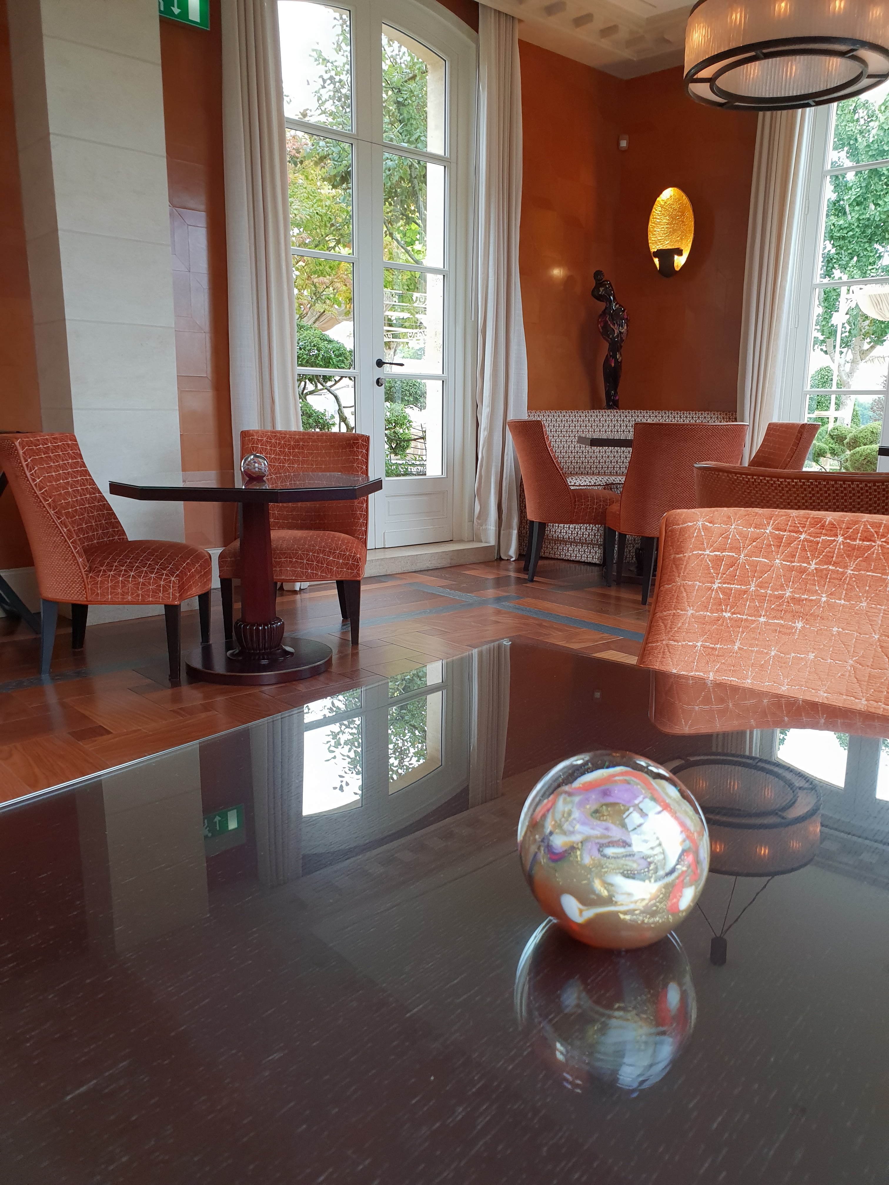 Ma première expérience de repas en solo, ça vaut réellement le coup de se concentrer exclusivement sur le plaisir des papilles dans un tel cadre ! On nous fait patienter dans un petit boudoir avant de nous introduire dans l'éblouissante salle à manger et de nous faire déguster des mets plus délicats et plus savoureux les uns que les autres. Je me souviendrai longtemps de l'accord mets et vin pour l'entrée (tartare de bonite surmonté d'un mélange de tomates et de fruits rouges et accompagné d'un Bordeaux blanc du vignoble Seret), le reste ayant été un peu moins à la hauteur de cette explosion de saveurs. Un grand merci à toute l'équipe pour leur professionnalisme et pour ce beau moment.