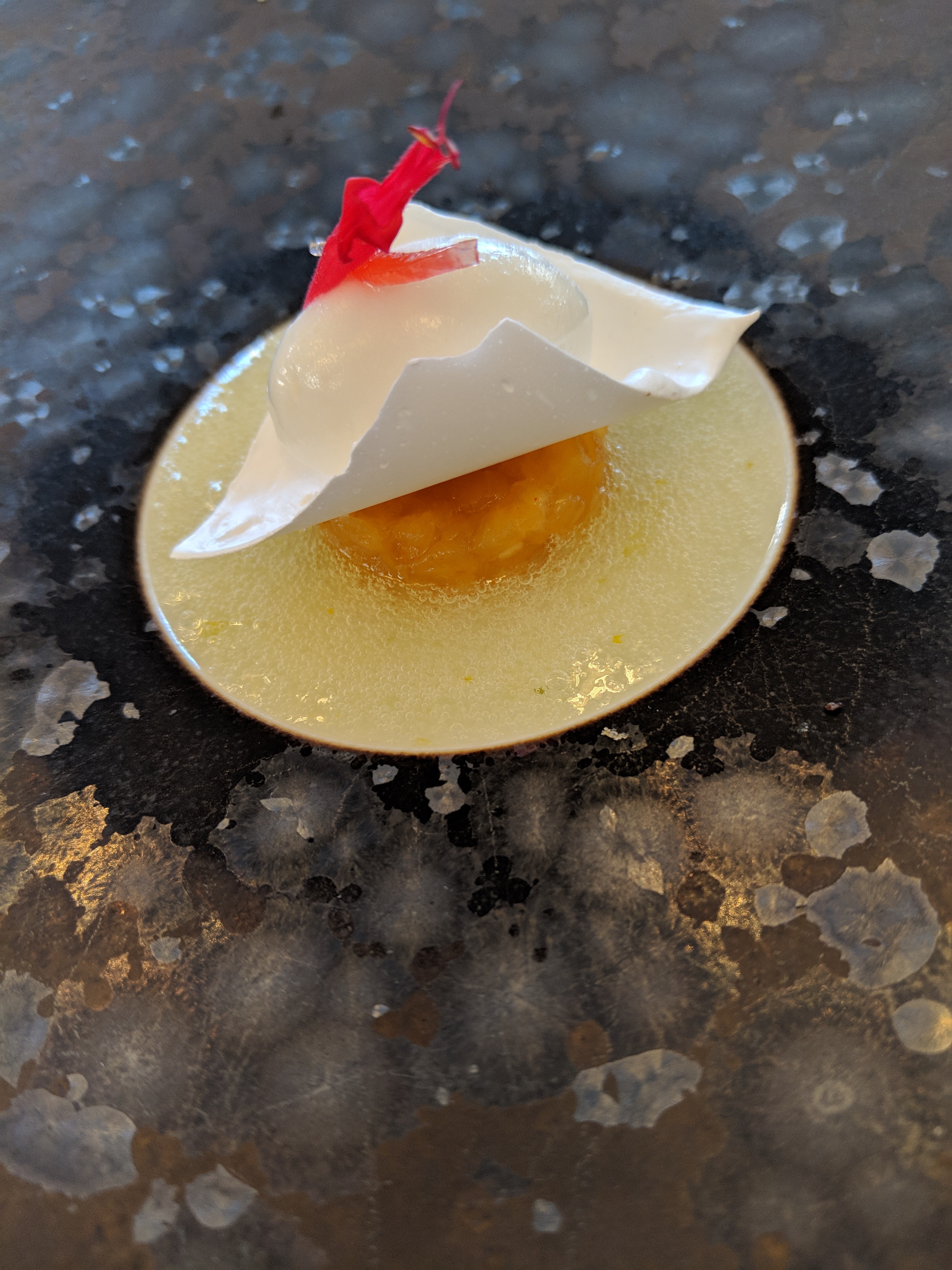 Expérience gastronomique sensationnelle, venant de Newcastle avec l'étoile Michelin Kenny Atkinson comme notre chef local de haute qualité au Tom Kitchin récemment visité à Édimbourg, je dois dire que la qualité de la nourriture et du service était à un autre niveau ici, menu de dégustation très mémorable avec du vin, L'explosion de saveurs dans chaque plat et service était tout simplement phénoménale. Ce n'est pas un endroit où aller si vous comptez vos euros, mais si c'est le cas, cet endroit vaut la peine d'être économisé !
