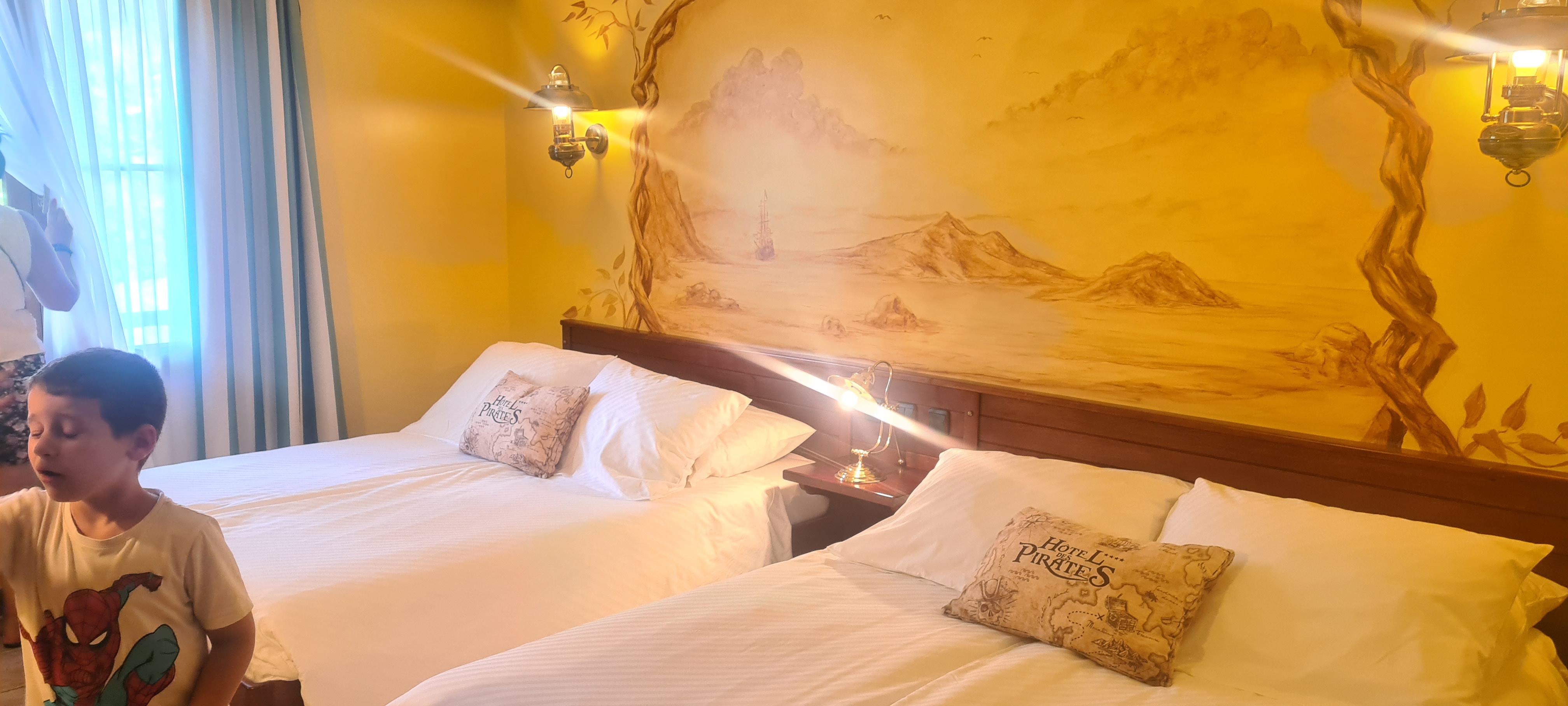 Super hôtel à côté du parc, on est embarqué dans l'univers des pirates les décors sont bluffant, une étoile en moins car les chambres sont très mal insonorisées on entendait mots pour mots la conversation des voisins. Dur de ce reposer dans ces conditions.