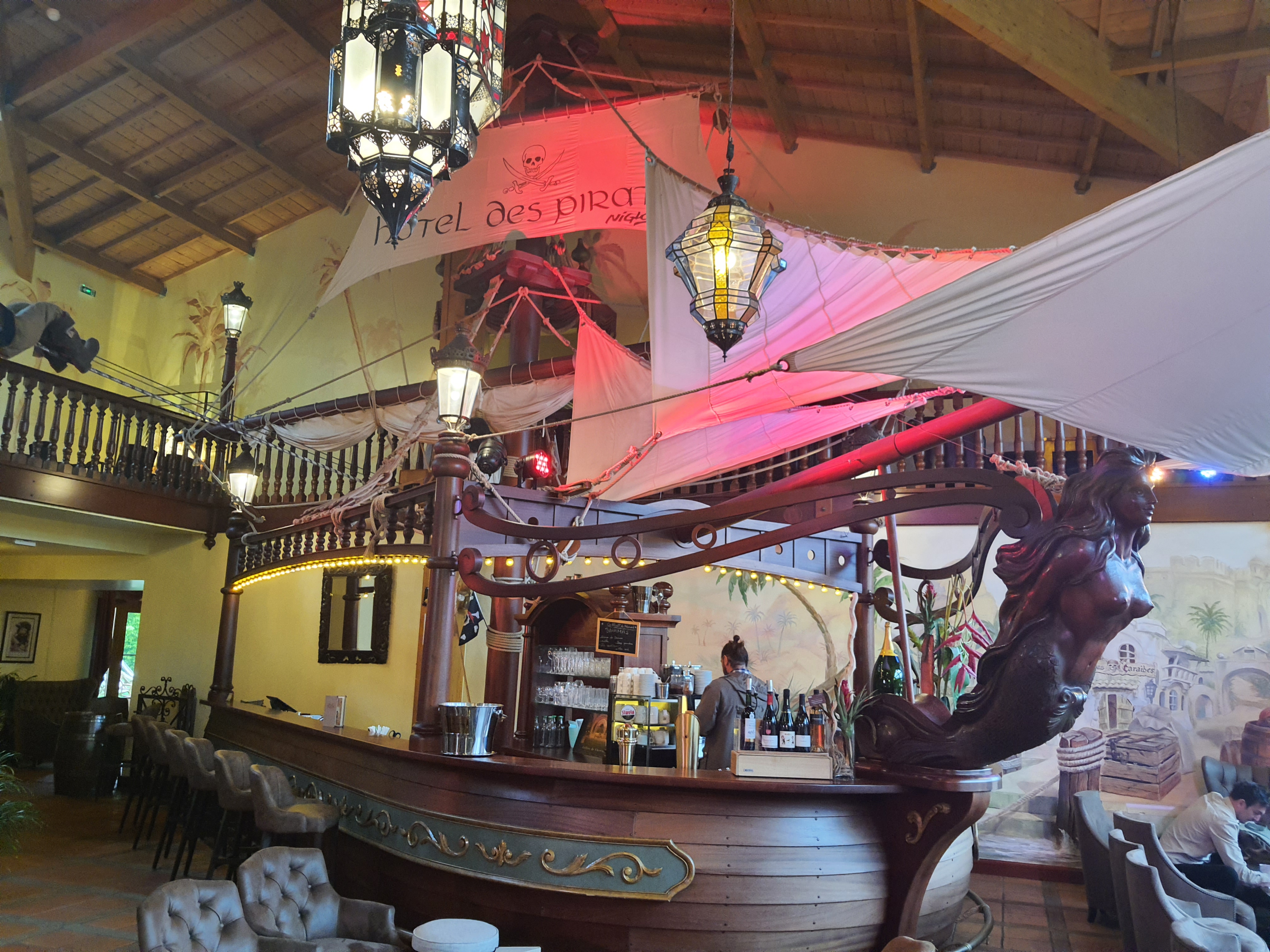 Style et decors vraiment top.... Que ce soit l entrée avec le bar en forme de bateau et l automate pirate qui fait des aller retour au plafond, ou la chambre J'ai vraiment aimé, mais le top c'est quand même le service Merci et encore bravo a l ensemble du personnel