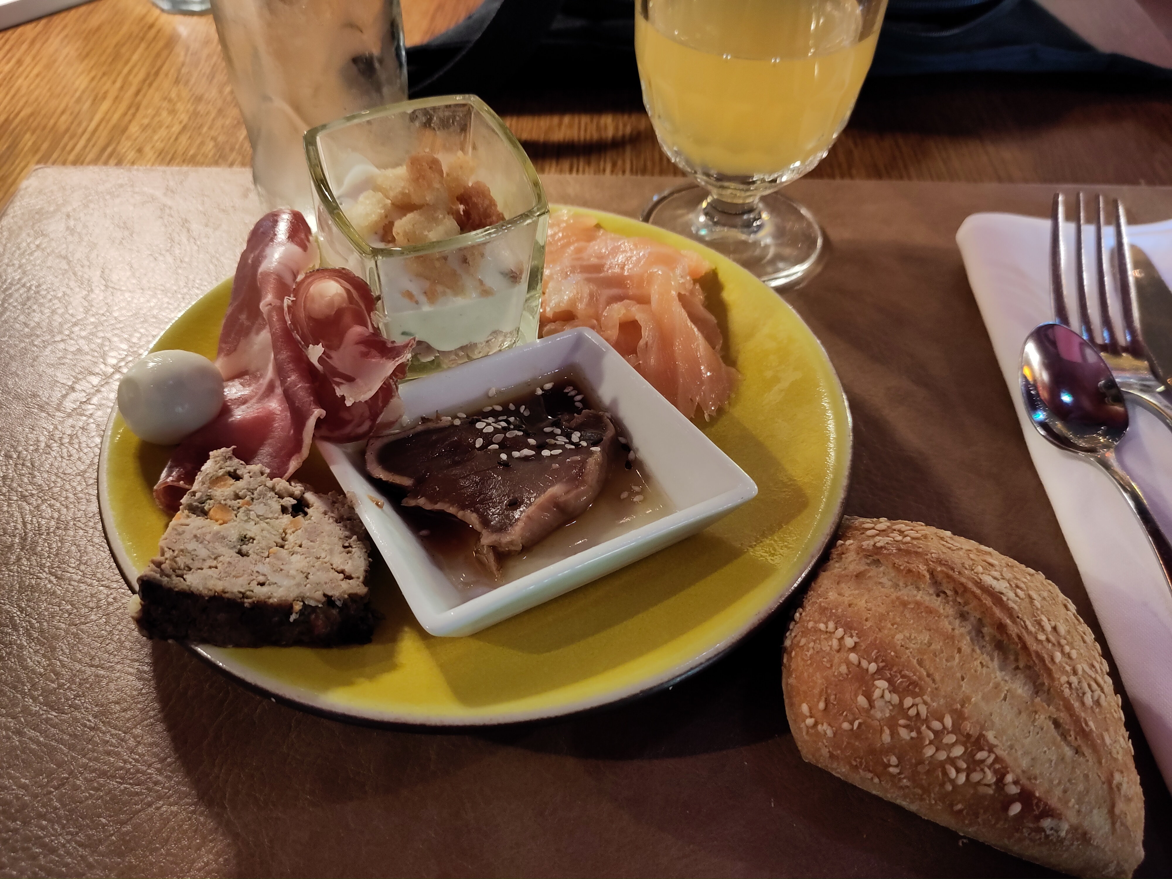 Entrée bonne mais les plat sont cuit à l avance si tu veux du bœuf saignant du doit le manger froid car déjà cuit avant....
