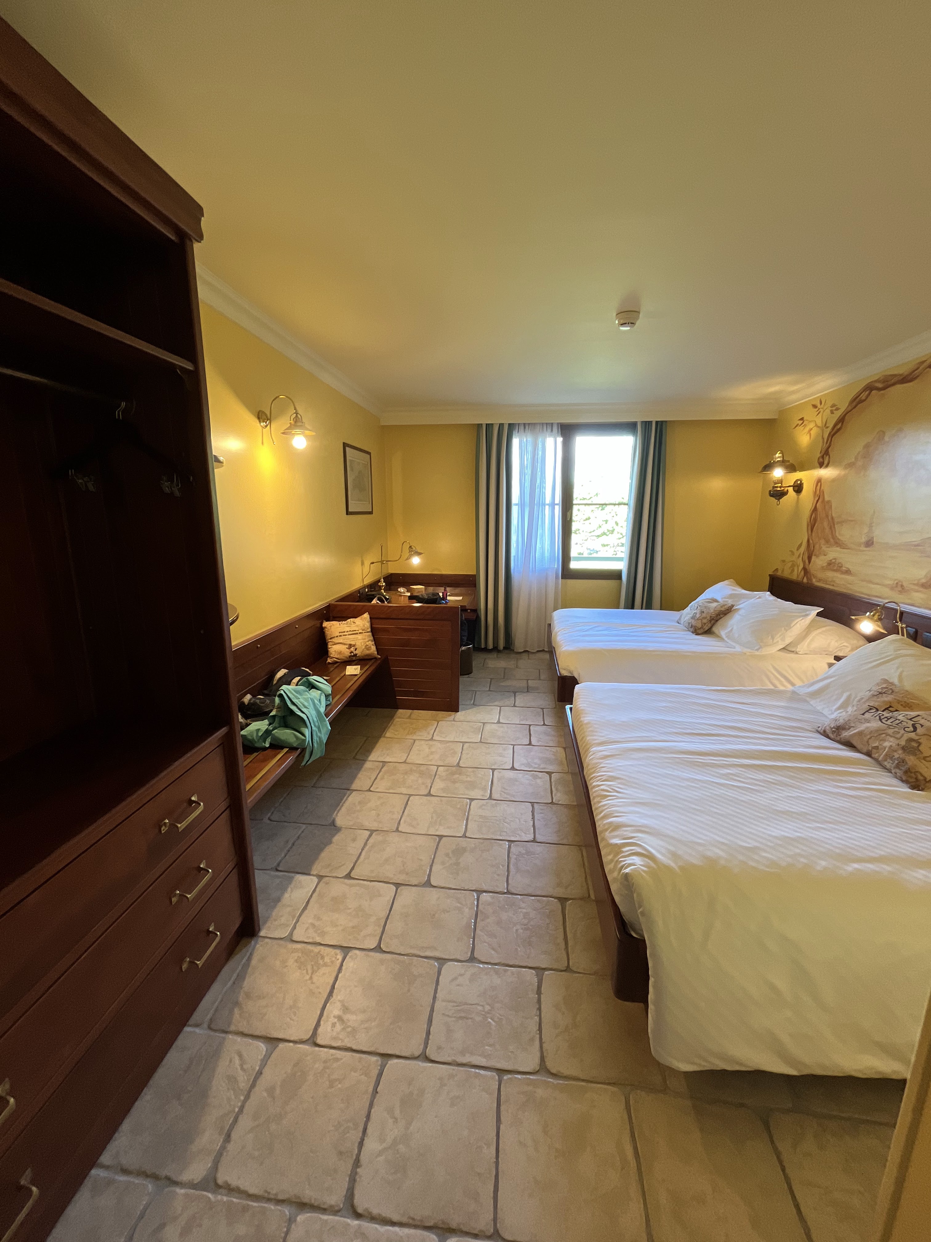 Hotel bien décoré sur le thème des pirates. Chambre et salle de bain spacieuses, oreillers de bonnes qualités mais malheureusement pour le prix je m'attendais à mieux. Chambre avec lits doubles mais il y avait deux couettes simples au lieu d'une grand couette sur le lit. Nous avons dû utiliser les 4 couettes simples pour nous en faire une grande.. Concernant les bruits, notre chambre devait être placée juste au dessus des cuisines car il y a eu un bruit monstre jusqu'à 00h. J'ai très mal dormis.