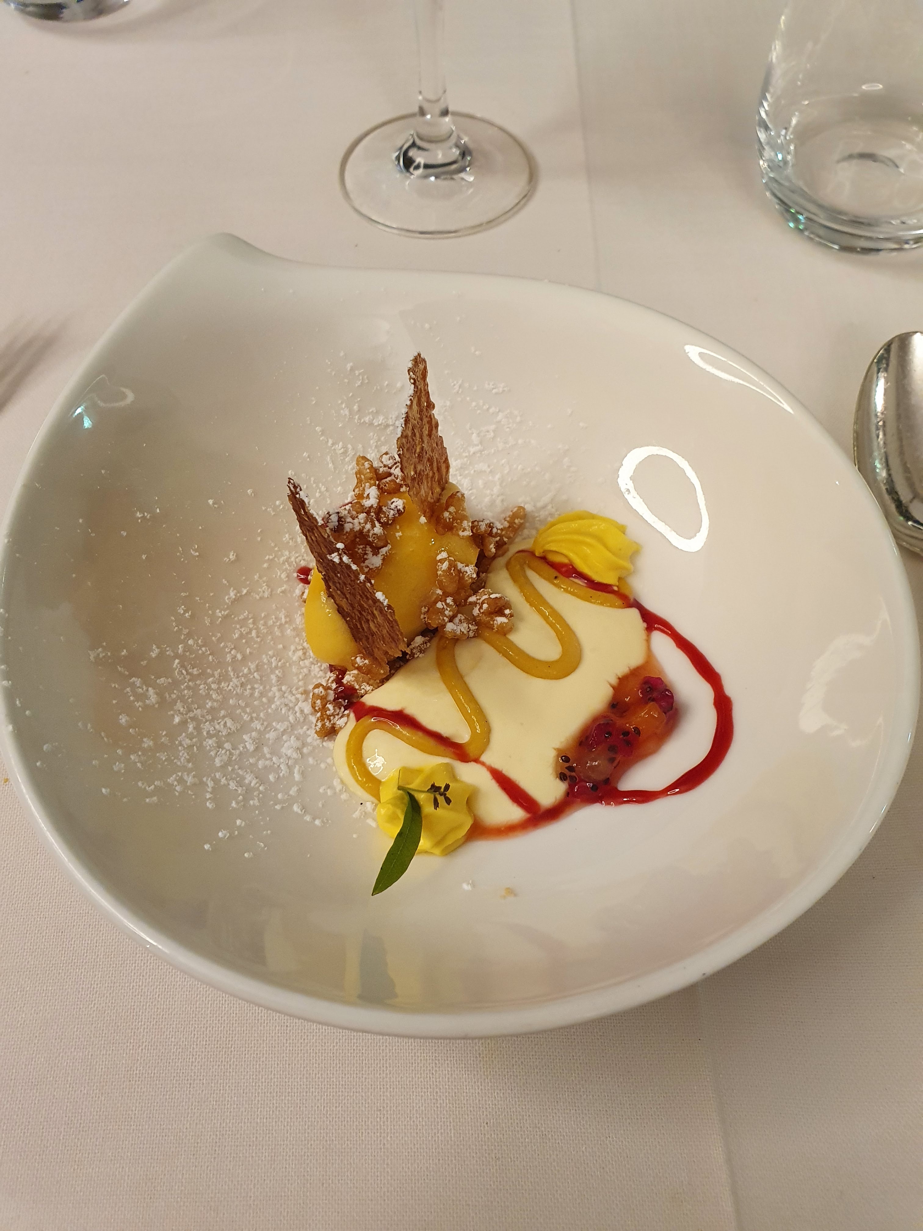 Un menu excellent des mises en bouche au dessert vraiment rien à redire cependant pour un restaurant étoilé le service n'est clairement pas approprié. Le maître d'hôtel est limite pour ce type de restaurant. Limite désagréable, pas appliqué et alors heureusement le port du masque est obligatoire pour les serveurs car pour faire court dans son masque ( transparent) il y avait à boire et à manger. Ce qui nous a quasiment coupé l'appétit. Inadmissible pour un restaurant qu'il plus est étoilé. Vraiment a revoir car a par cela vraiment superbe.