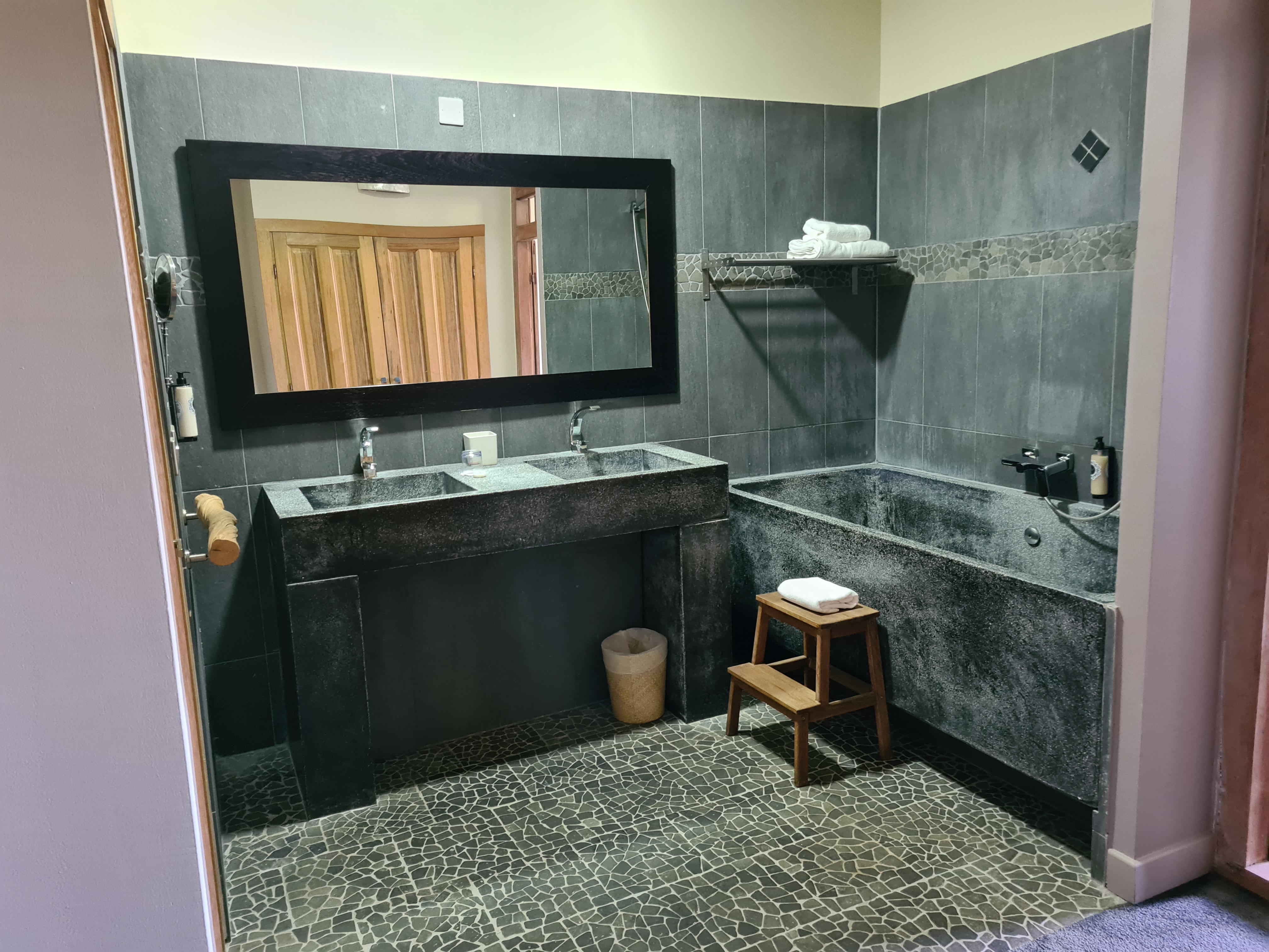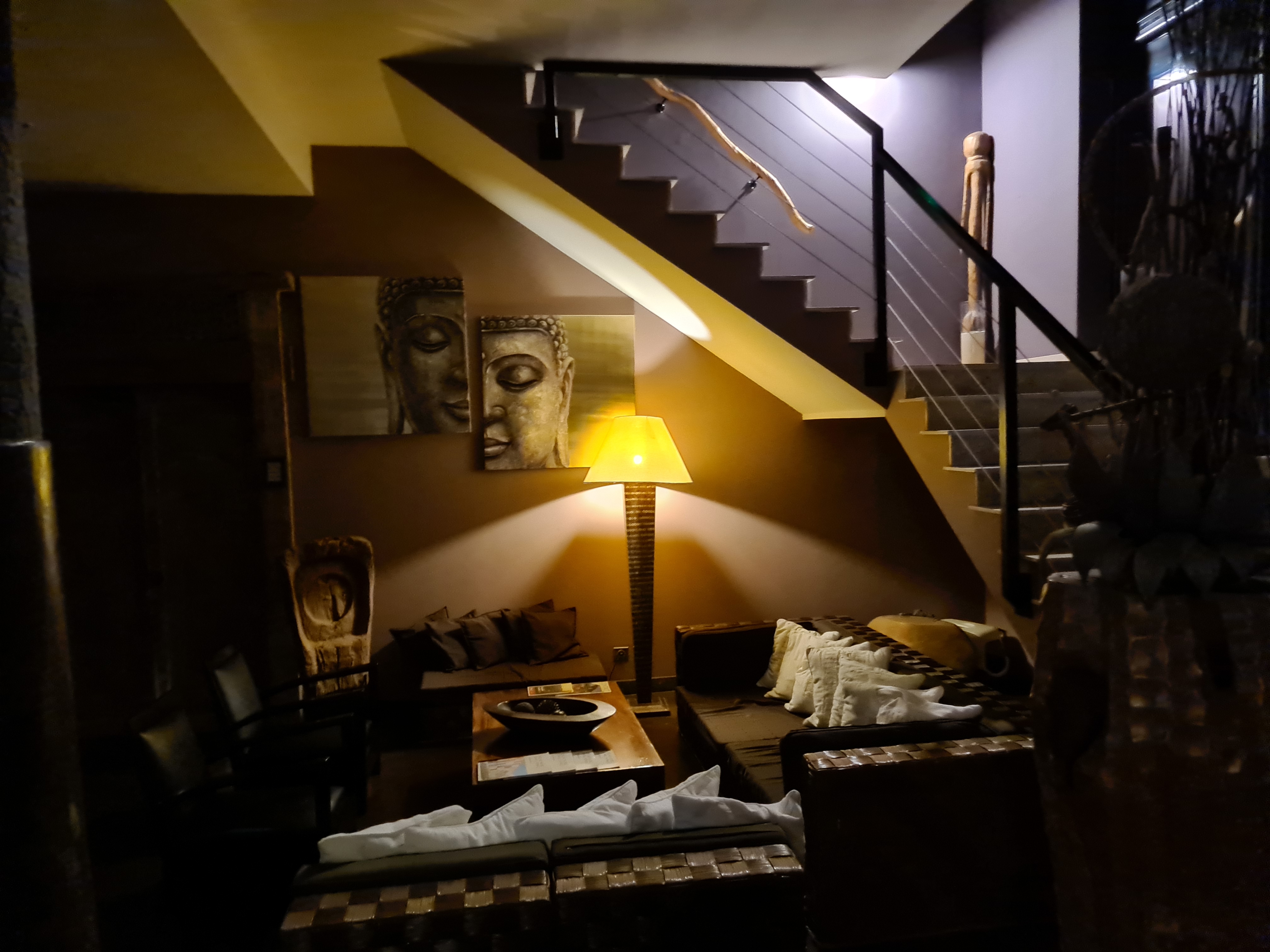 Confort : 5 (déco zen, chambre spacieuse avec une grande baignoire en pierre très appréciable, jardin magnifique avec piscine + jacuzzi, de petites balançoires et des hamacs, parfait pour se prélasser) Service : 5 (accueil chaleureux, professionnalisme, aux petits soins durant tout le séjour) Restauration : 3 (rapport qualité prix ok - en revanche il était dommage d'entendre le staff se houspiller en coulisses. Une suggestion pour les dîners en extérieur, pourquoi pas organiser un espace fumeur et un autre non fumeur. Vous n'y êtes pour rien mais un couple a fumé au moins 10 cigarettes dans tout le repas et en tant que non fumeurs, cela a altéré l'expérience) Spa : 3 (massage très agréable d'une heure en duo avec des choix différents qui n'ont cependant pas été remarqués) Nous avons finalement passé, ma femme et moi, un très agréable séjour, je recommande cet hôtel pour un moment de détente en toute sérénité.
