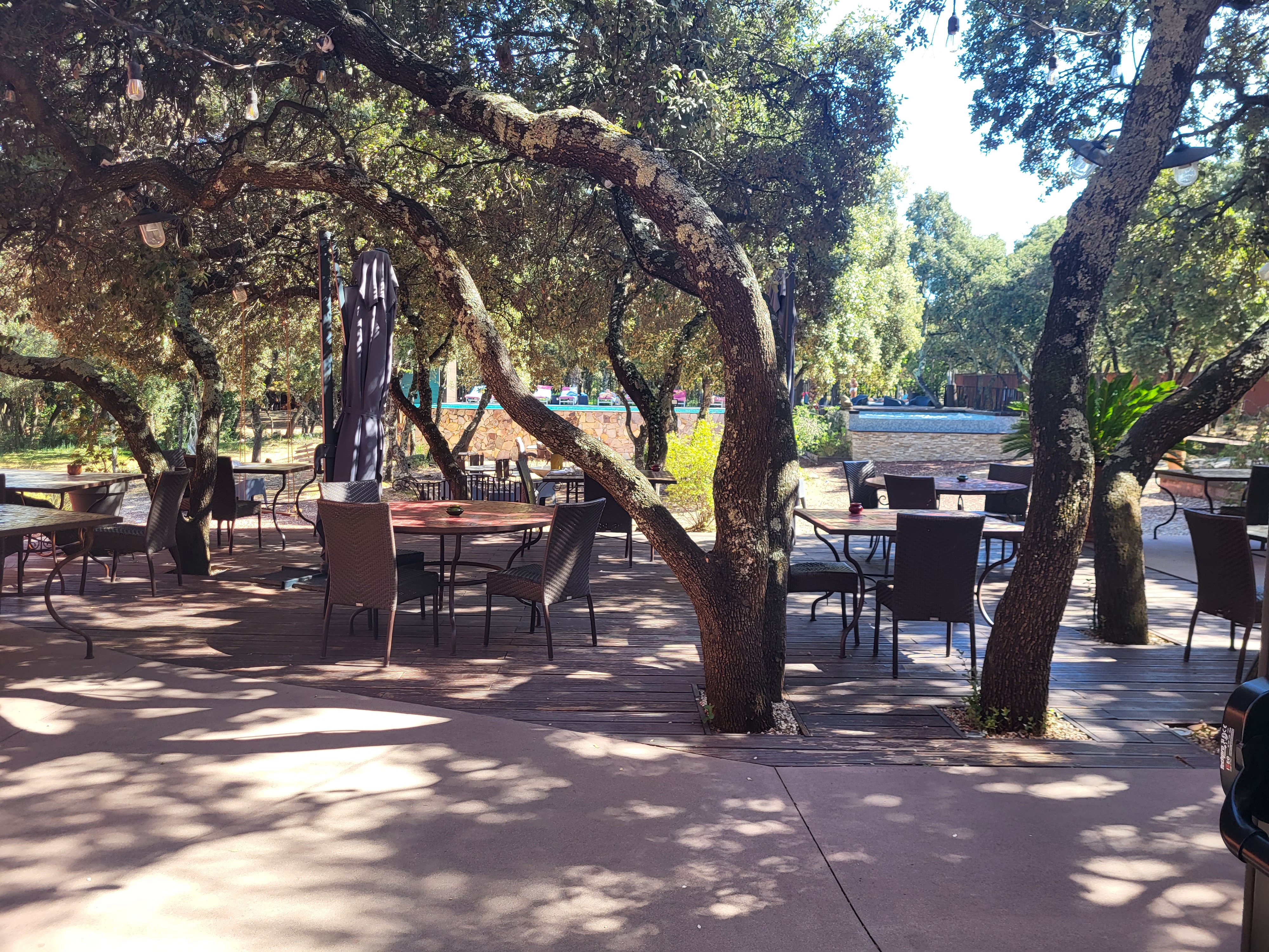 Restaurant : cadre agréable particulièrement en terrasse avec un environnement rappelant notre garrigue. La formule de midi est d'un bon rapport qualité prix avec des plats goûteux et bien cuisinés, Mais il ne faut boire que de l'eau. ...en carafe. En effet, le verre de vin est passé de 6 à 8 € (+30%), je ne parle pas du jus de tomate à 6€. Aucun des restaurants équivalents ne pratiquent ces prix sur les boissons. Nous aimions bien cet endroit, cette démarche nous a dissuadé d'y revenir.