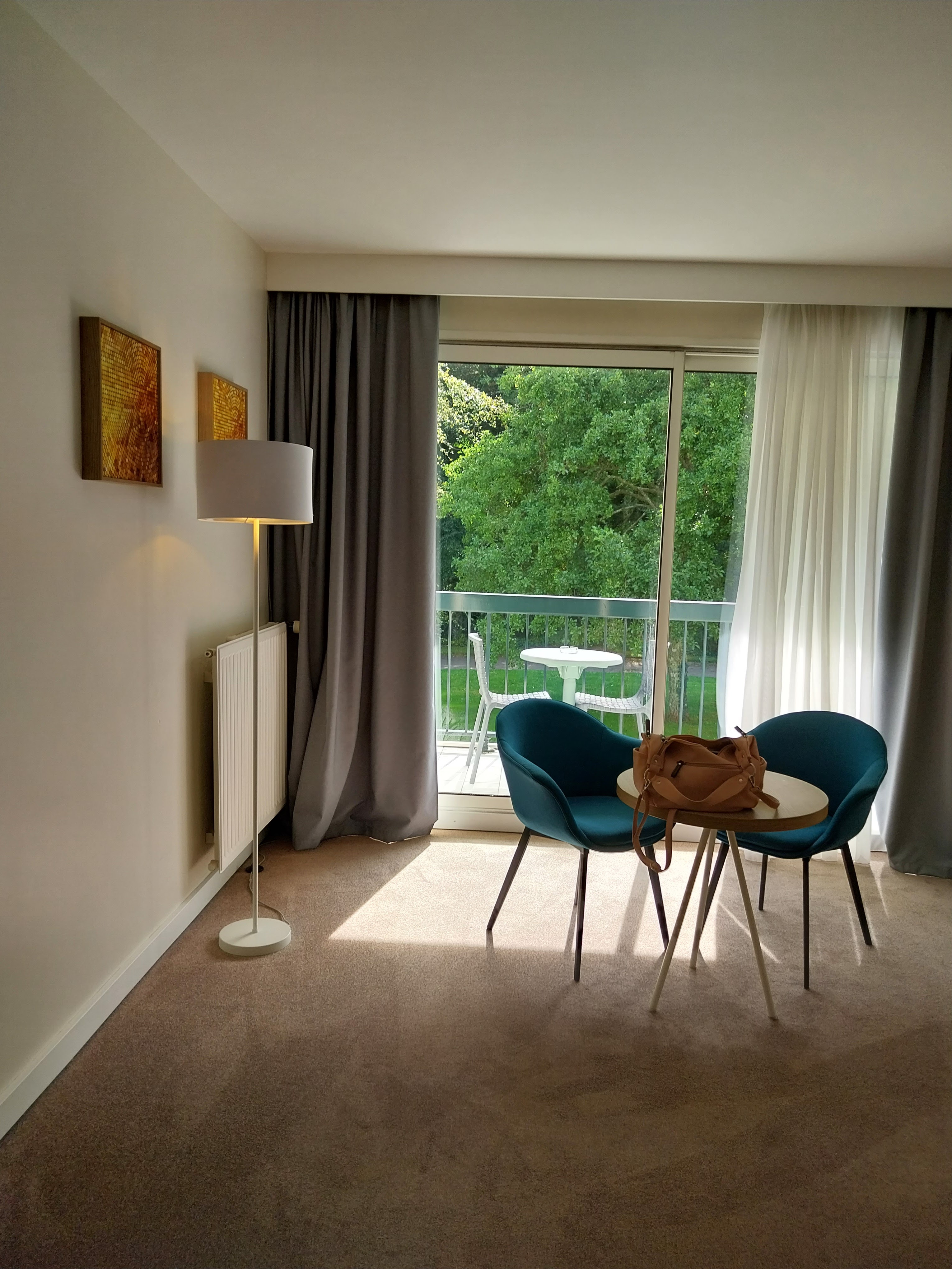 Chambre spacieuse et très calme dotée d’un balcon avec vue sur la verdure. La literie du lit extra large est confortable. Nous avons apprécié le sauna réservé sur place et la propreté des locaux. Le personnel est accueillant. Seul hic la piscine était fermée le 3 mai d’où l’étoile en moins.