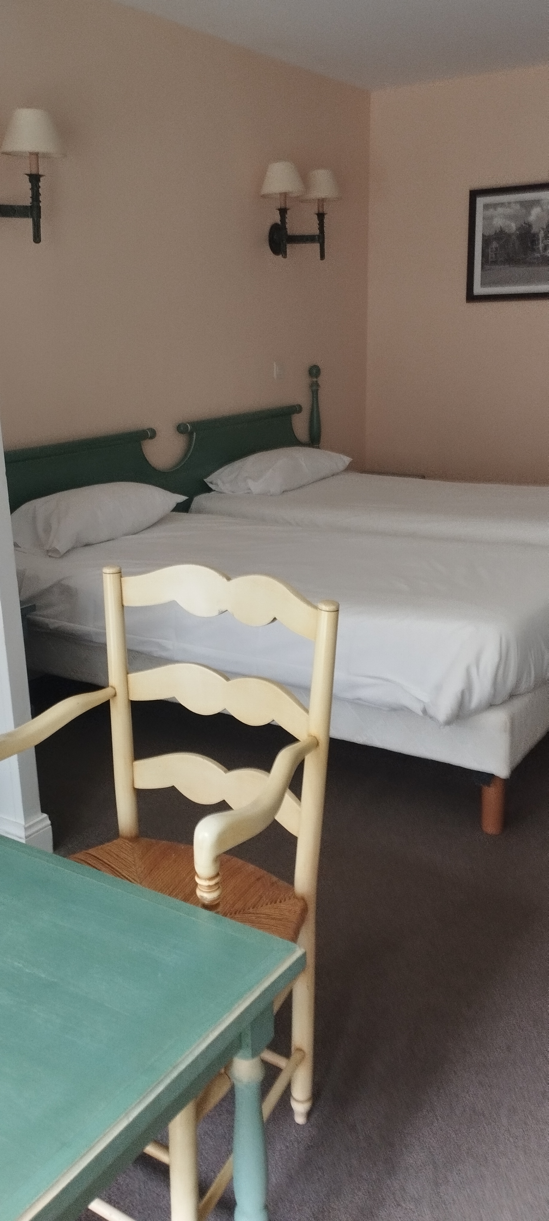 Nous avons beaucoup aimé cet hôtel : La décoration des chambres du rez de chaussée est un peu old school mais ça a son charme, environnement très calme ! 😊