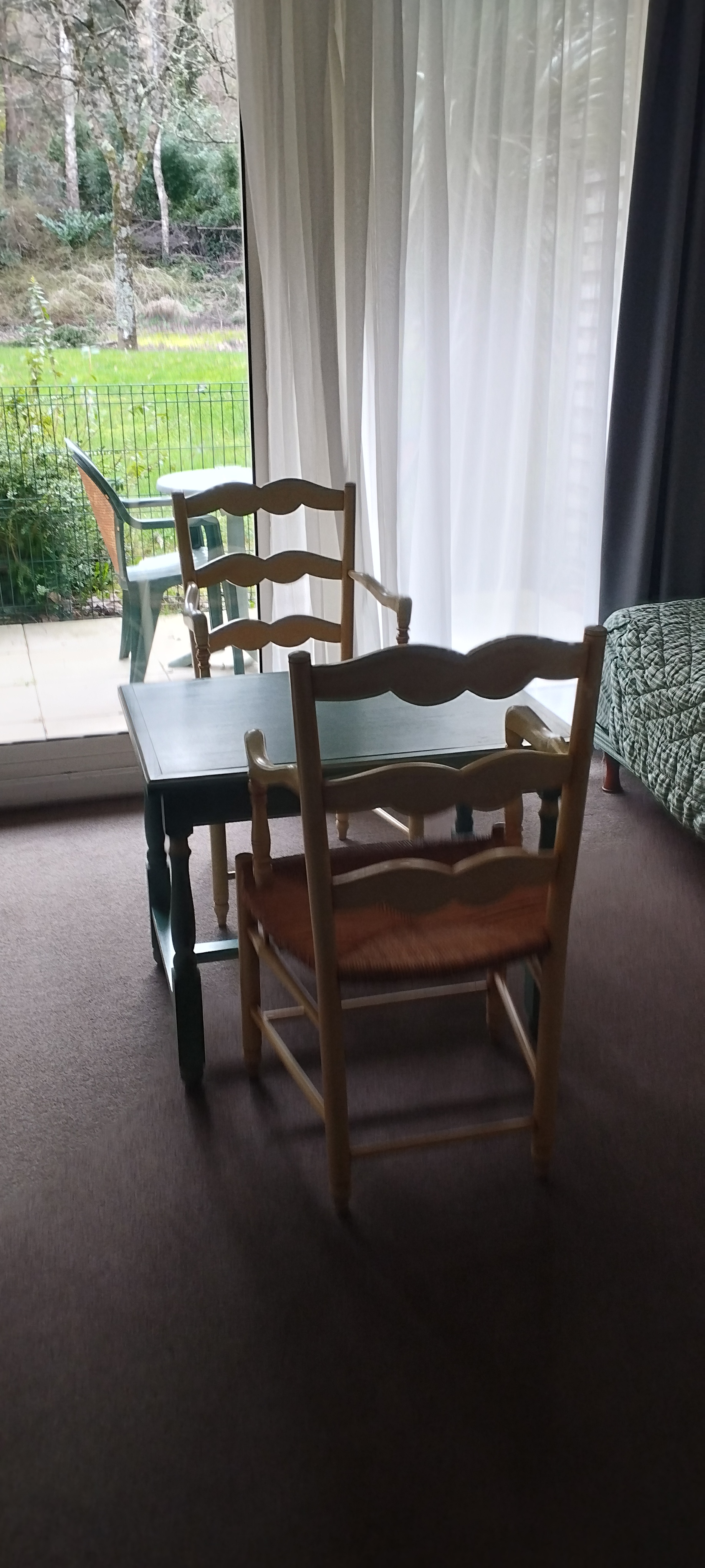 L'hôtel est très calme et situé dans un joli parc/bois. Le mobilier et les installations sont vieillots mais pas au point d'être usés. Le WiFi dans notre chambre est très médiocre et continue de se déconnecter, nous ne pouvons donc pas travailler depuis la pièce ou utiliser notre clé Fire TV. La piscine est agréable et la terrasse est pratique pour déjeuner. Le parking est assez grand pour deviner et gratuit. Il n'y a ni bouilloire ni réfrigérateur dans la chambre. Une bouilloire dans la chambre, un réfrigérateur et une meilleure connexion Wi-Fi auraient donné 5 étoiles.