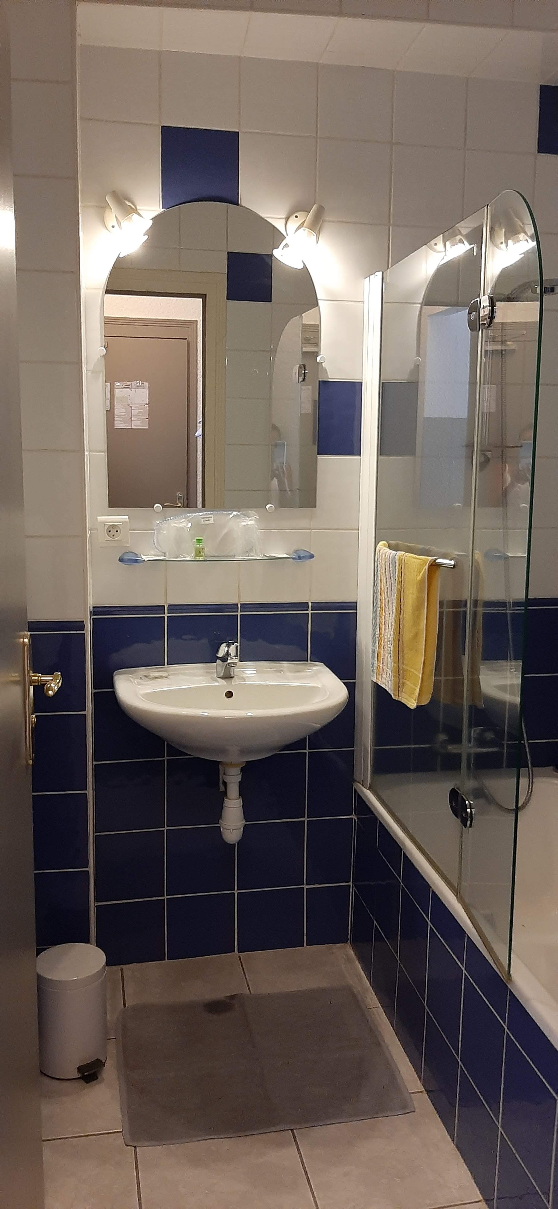 Parking assez grand, même si l'accès n'est pas des plus aisés. Un très bon accueil. Le personnel est sérieux. Les chambres sont spacieuses, le balcon fermé franchement sympathique, la salle de bain (avec WC) satisfaisante. Mais l'on peut dire que le tout est d'époque. Petit bémol, la propreté laisse à désirer. Hormis ce détail, la prestation est correcte.