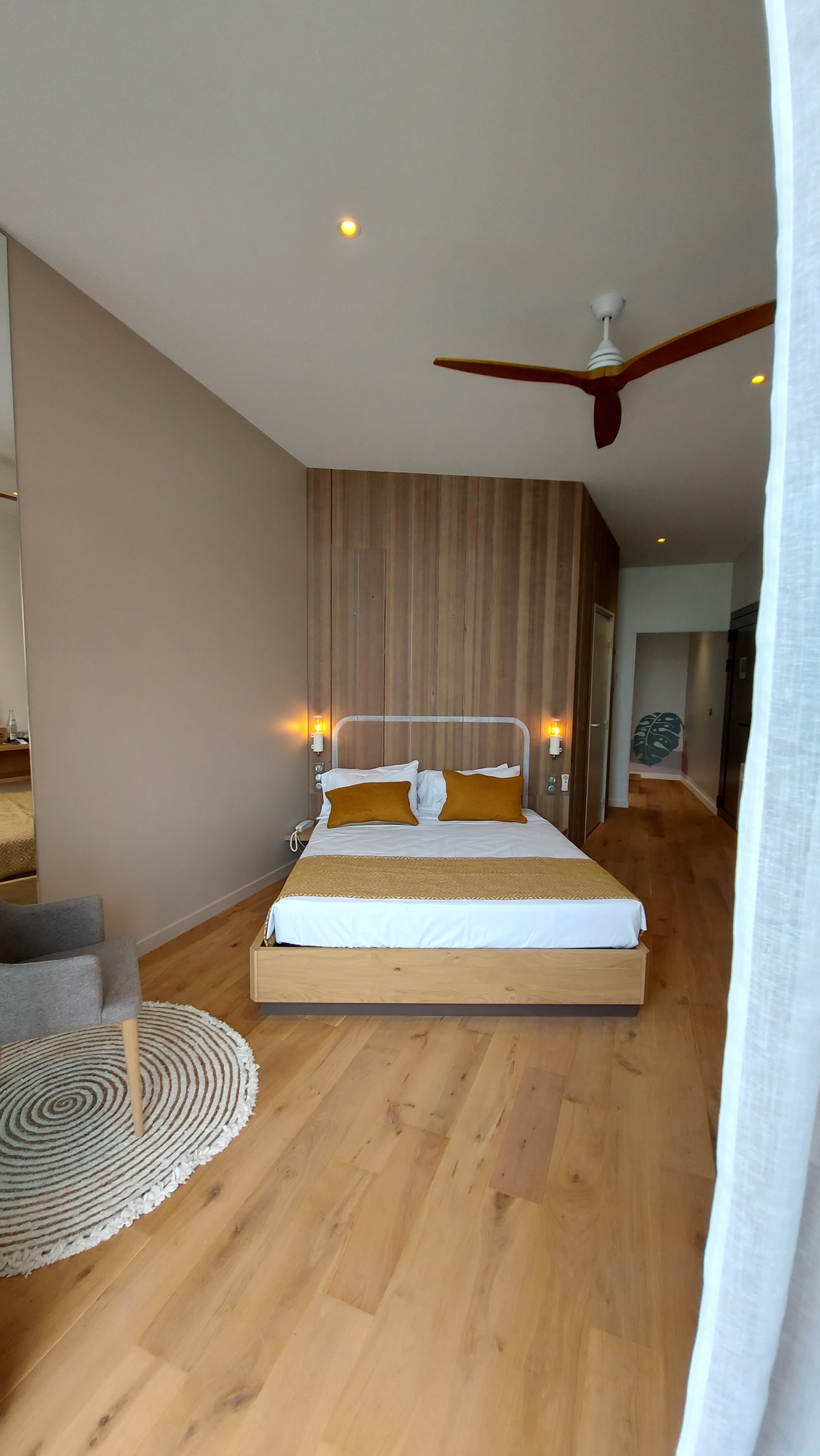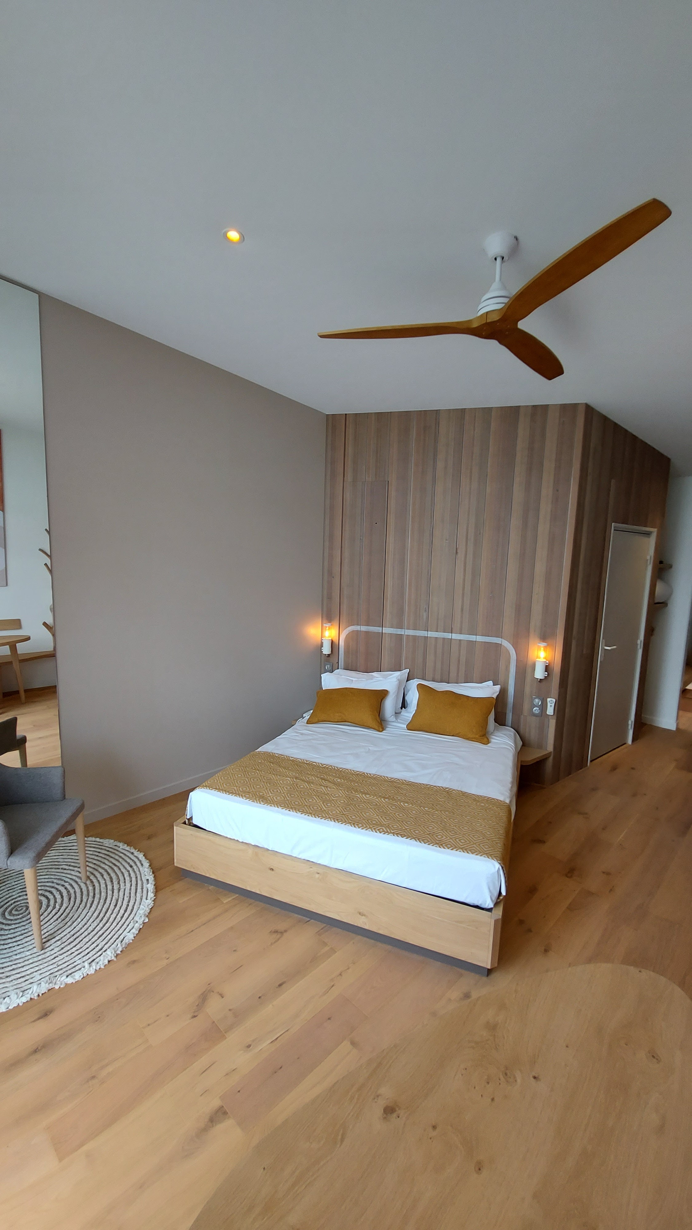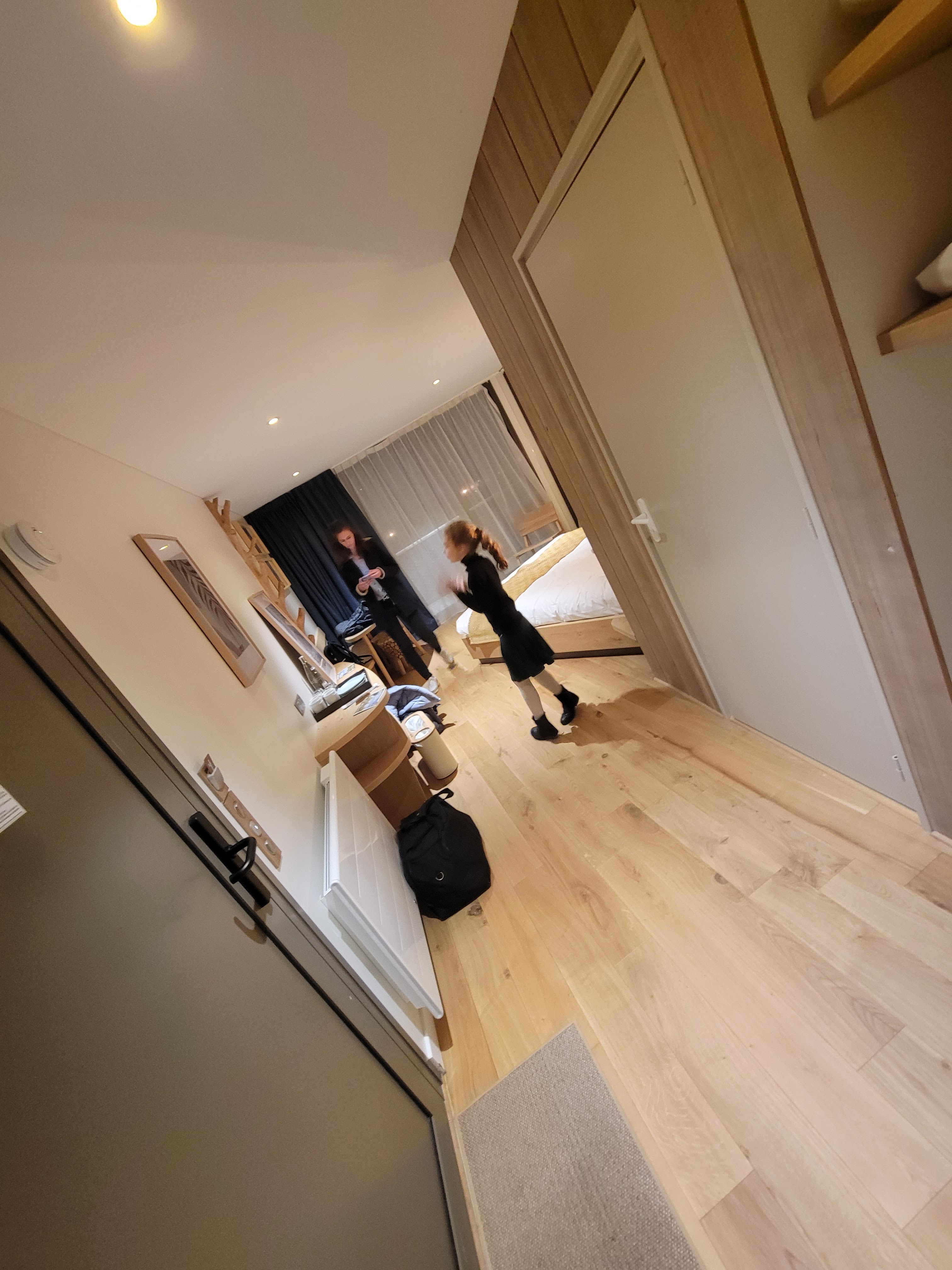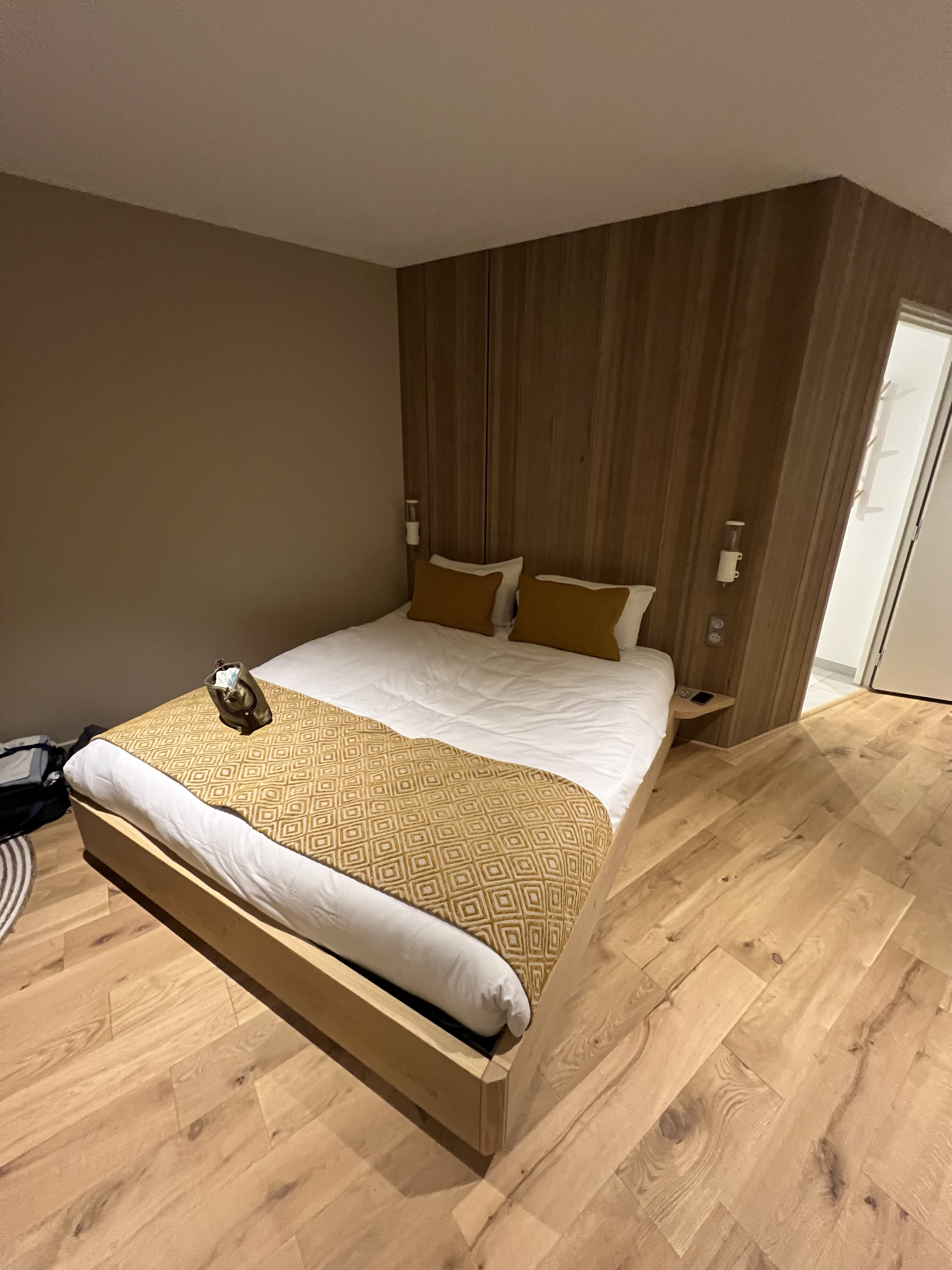 Très bel hôtel, un peu chaud si on a pas de ventilateur (option payante), pas de placard de rangement dans les chambres ni sdb, 1 penderie dans l'entrée . Pas de prises USB ni secteur dans la chambre enfant, juste 2 Prises USBC. Calme et joli.